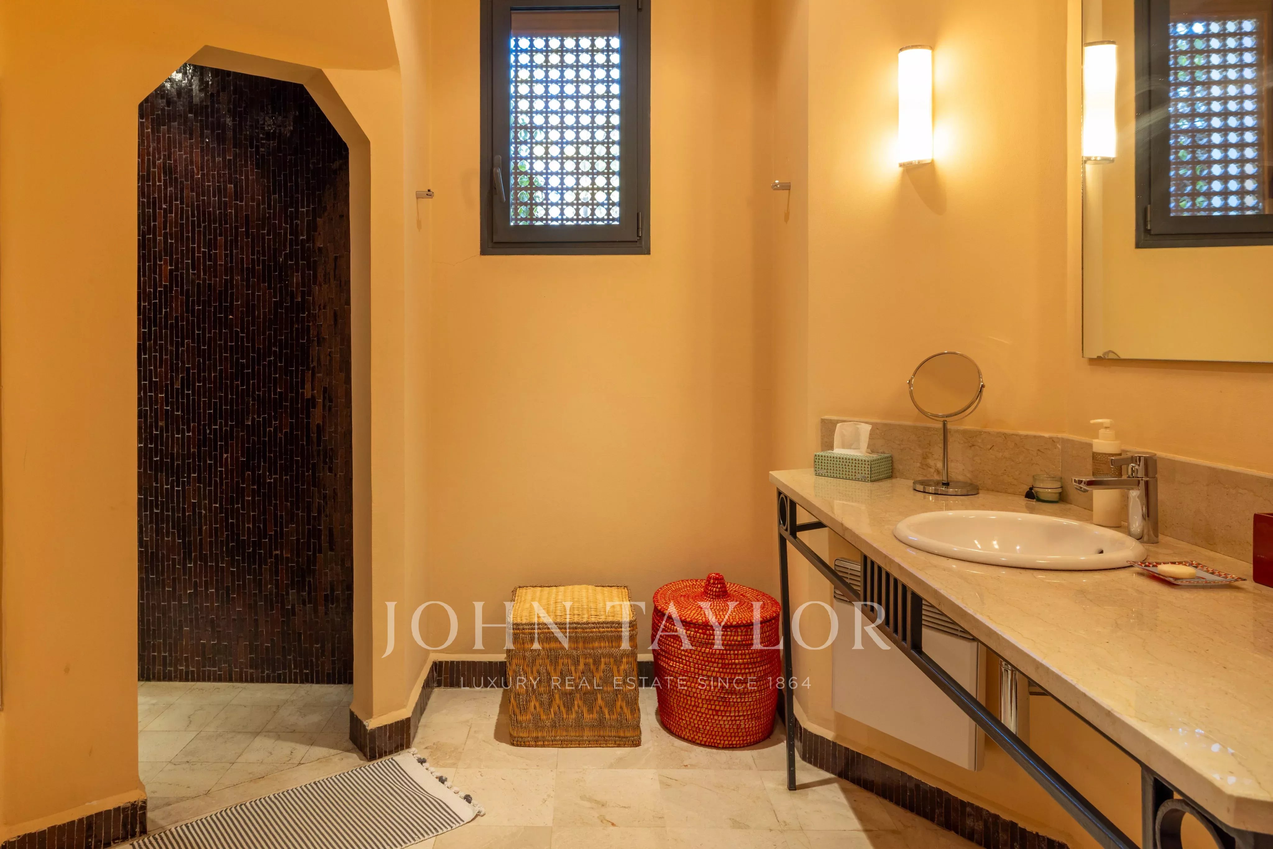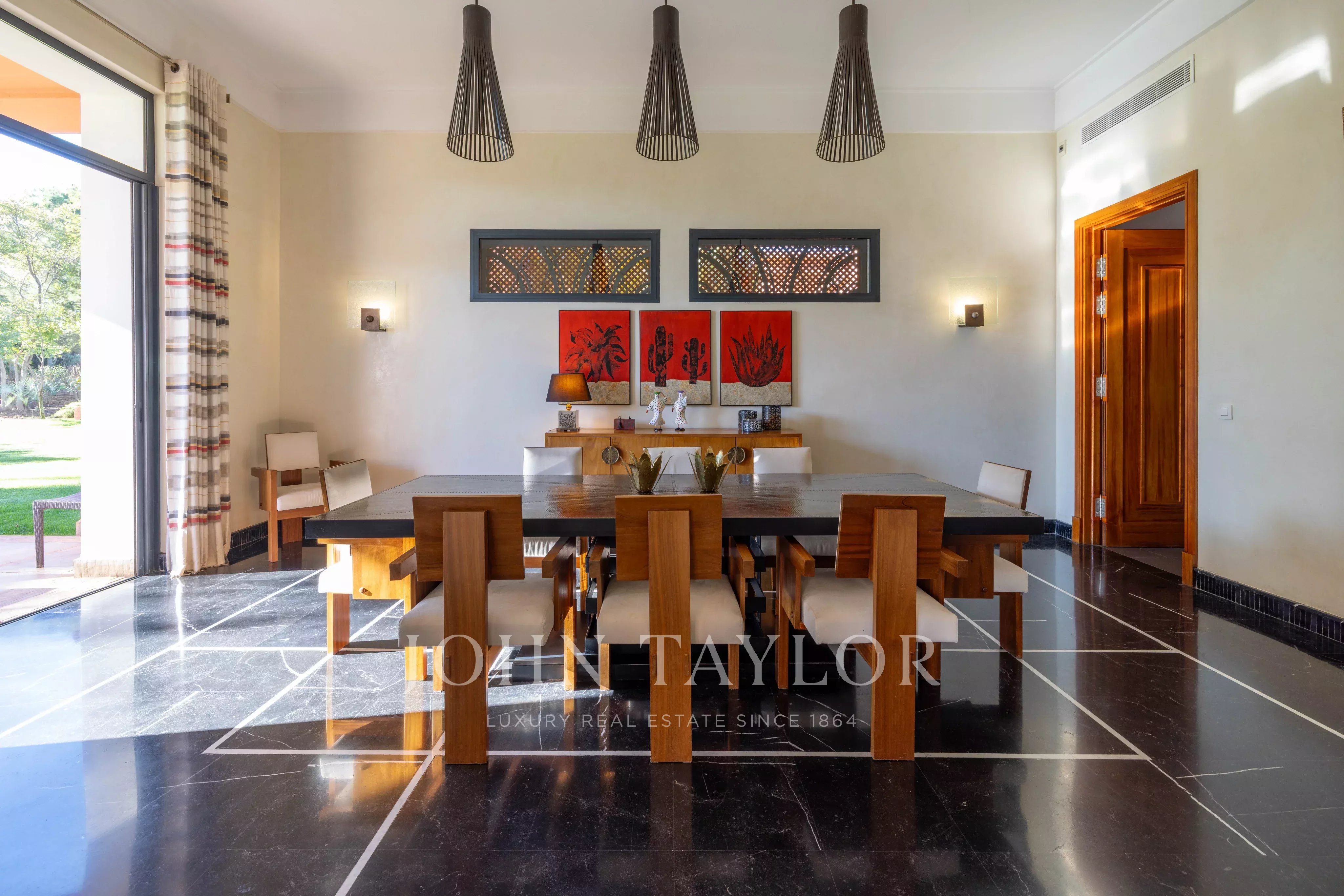 Ce bien est situé dans un domaine privé proposant un parcours de golf 18 trous réputé, à 15 minutes de l'aéroport et moins de 30 minutes du centre-ville de Marrakech.