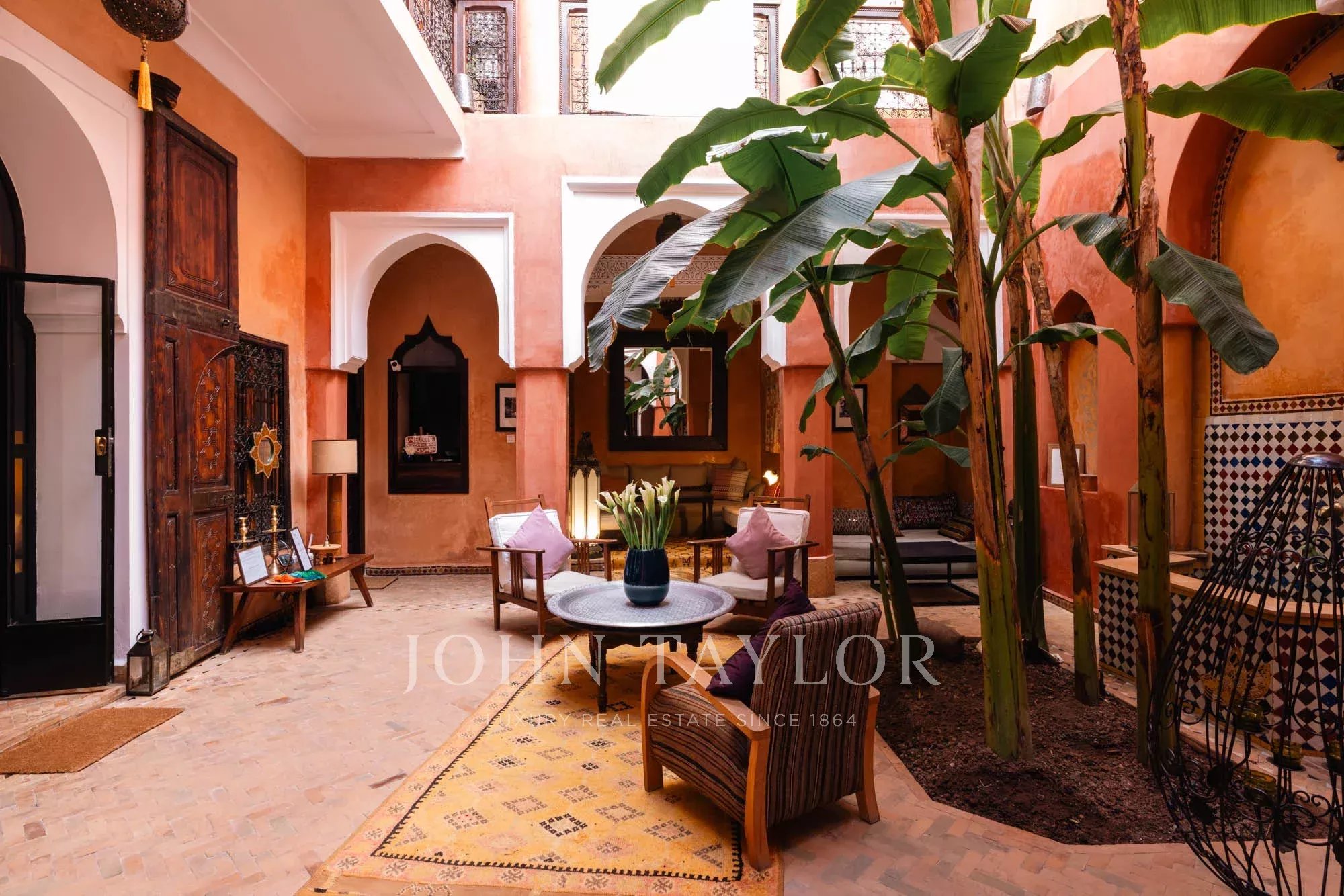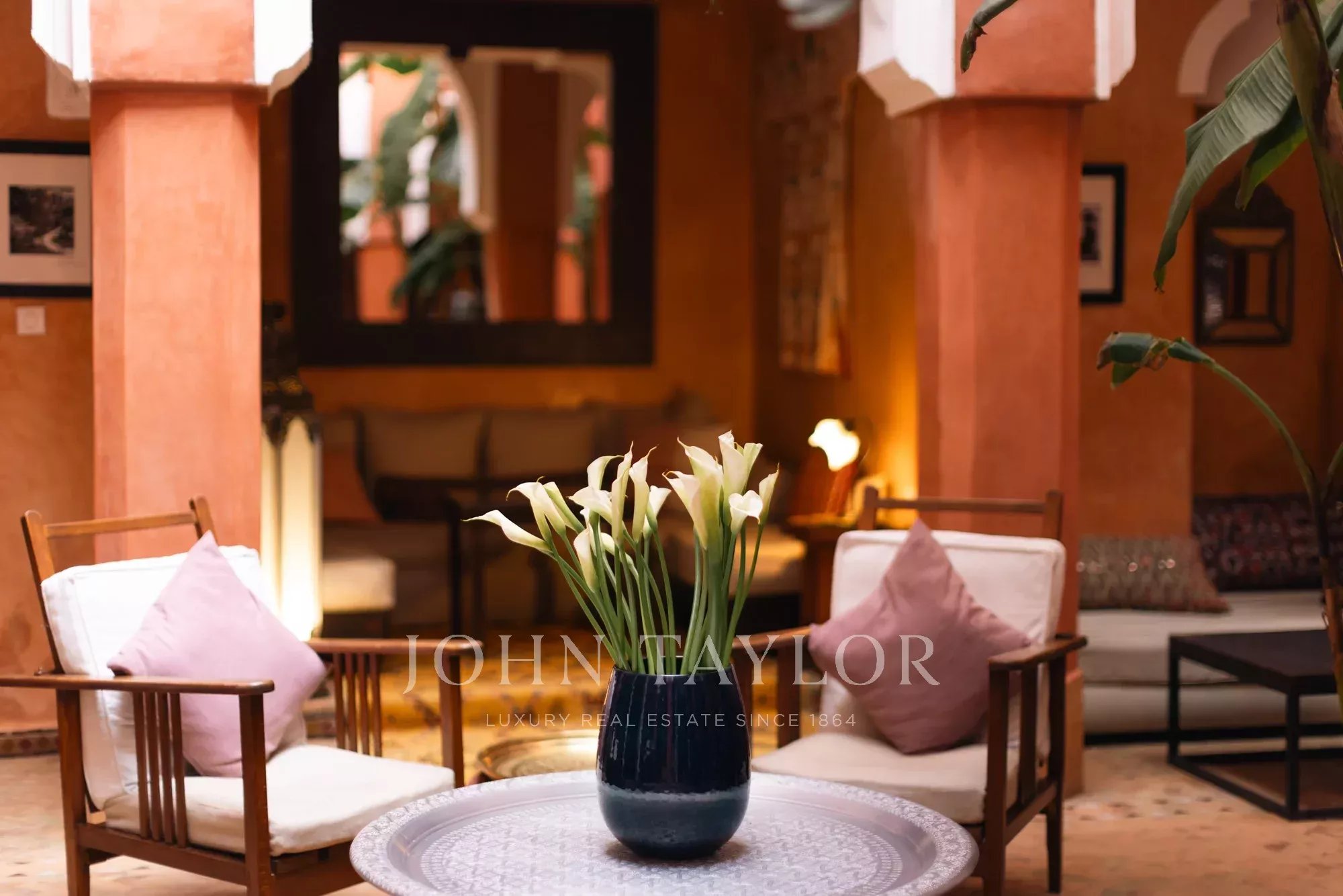 L'ensemble offre un superbe potentiel pour constituer un boutique-hôtel de 9 chambres avec multiples parties communes dans le meilleur secteur de la Medina.
