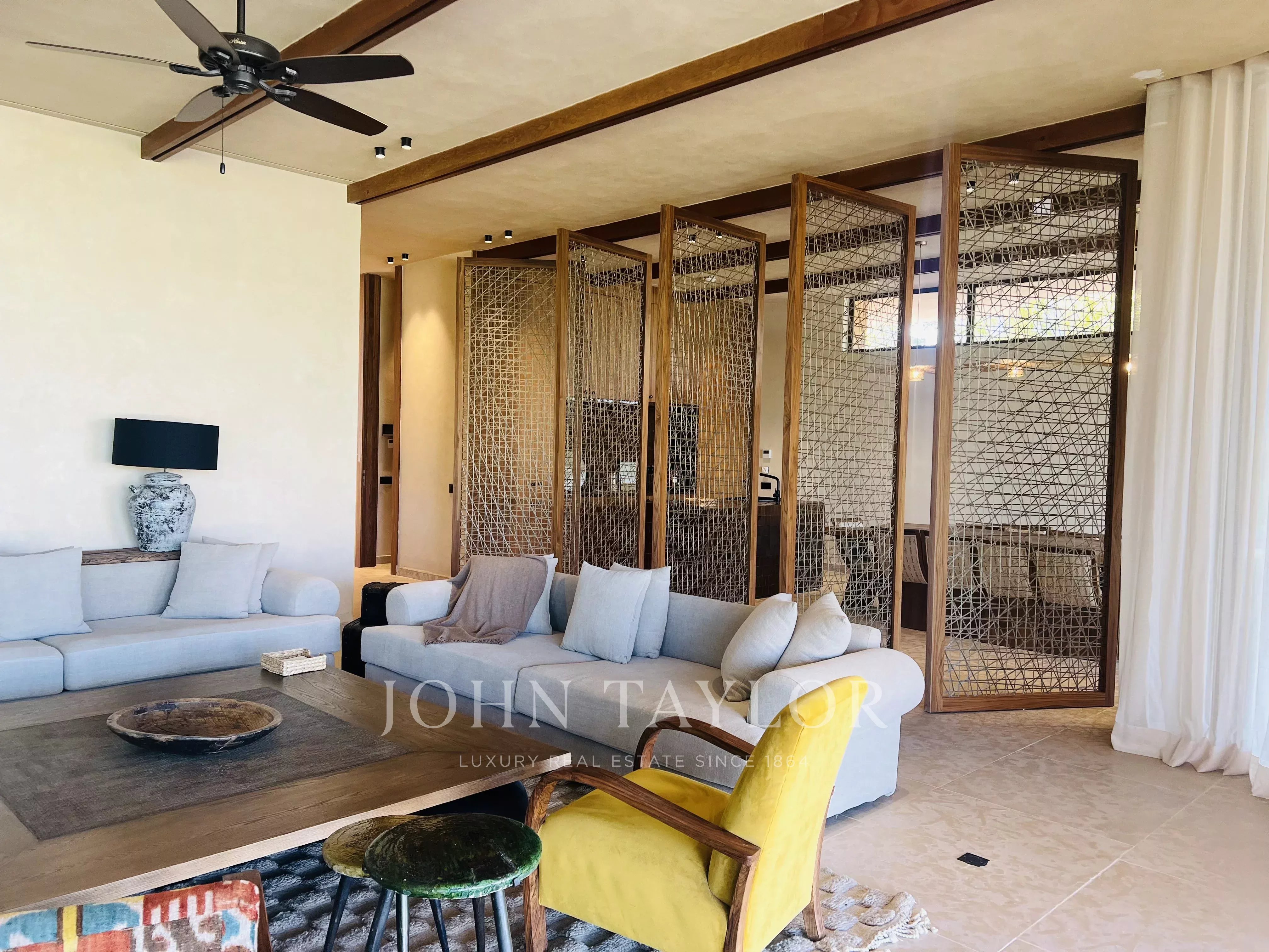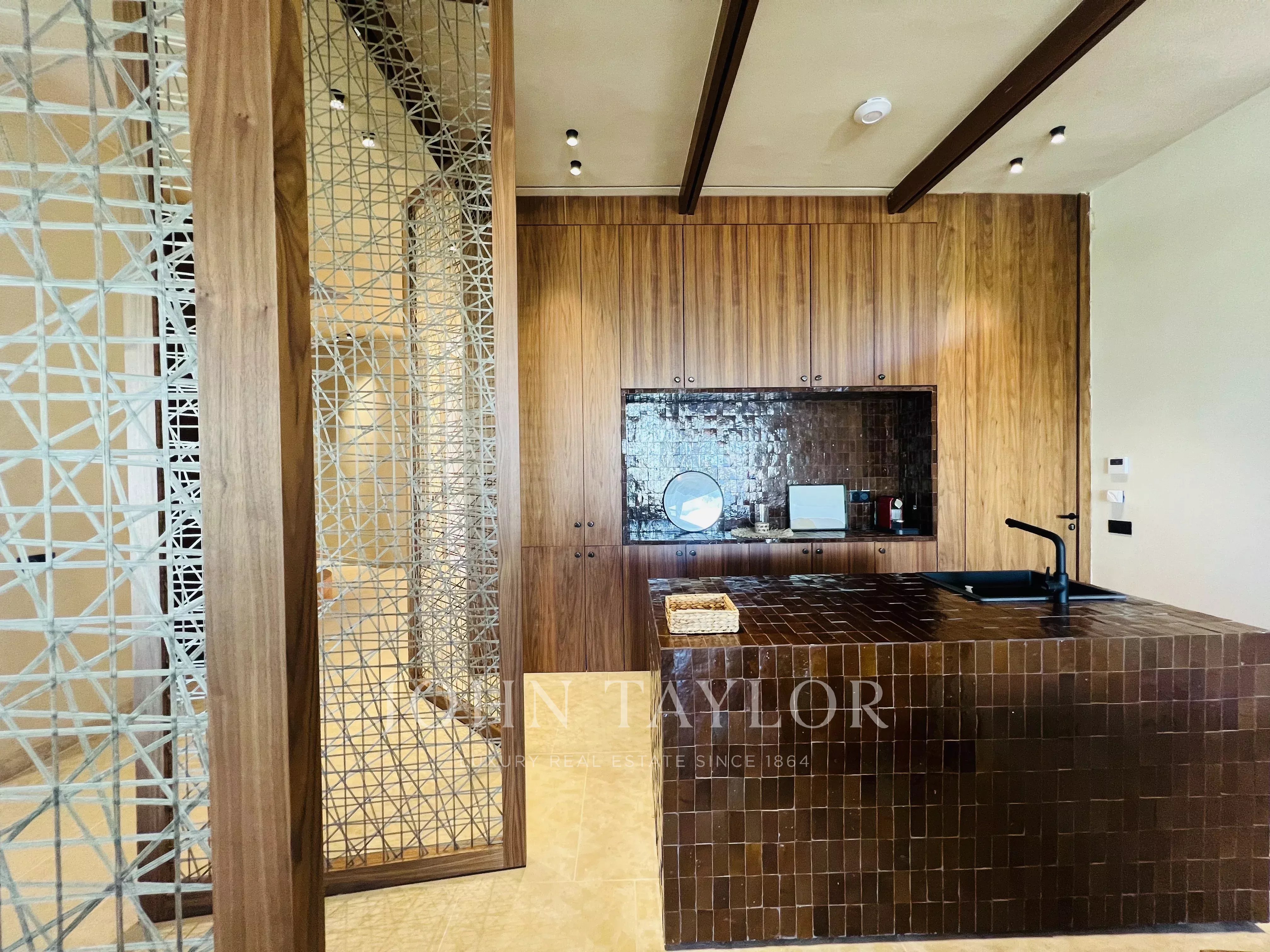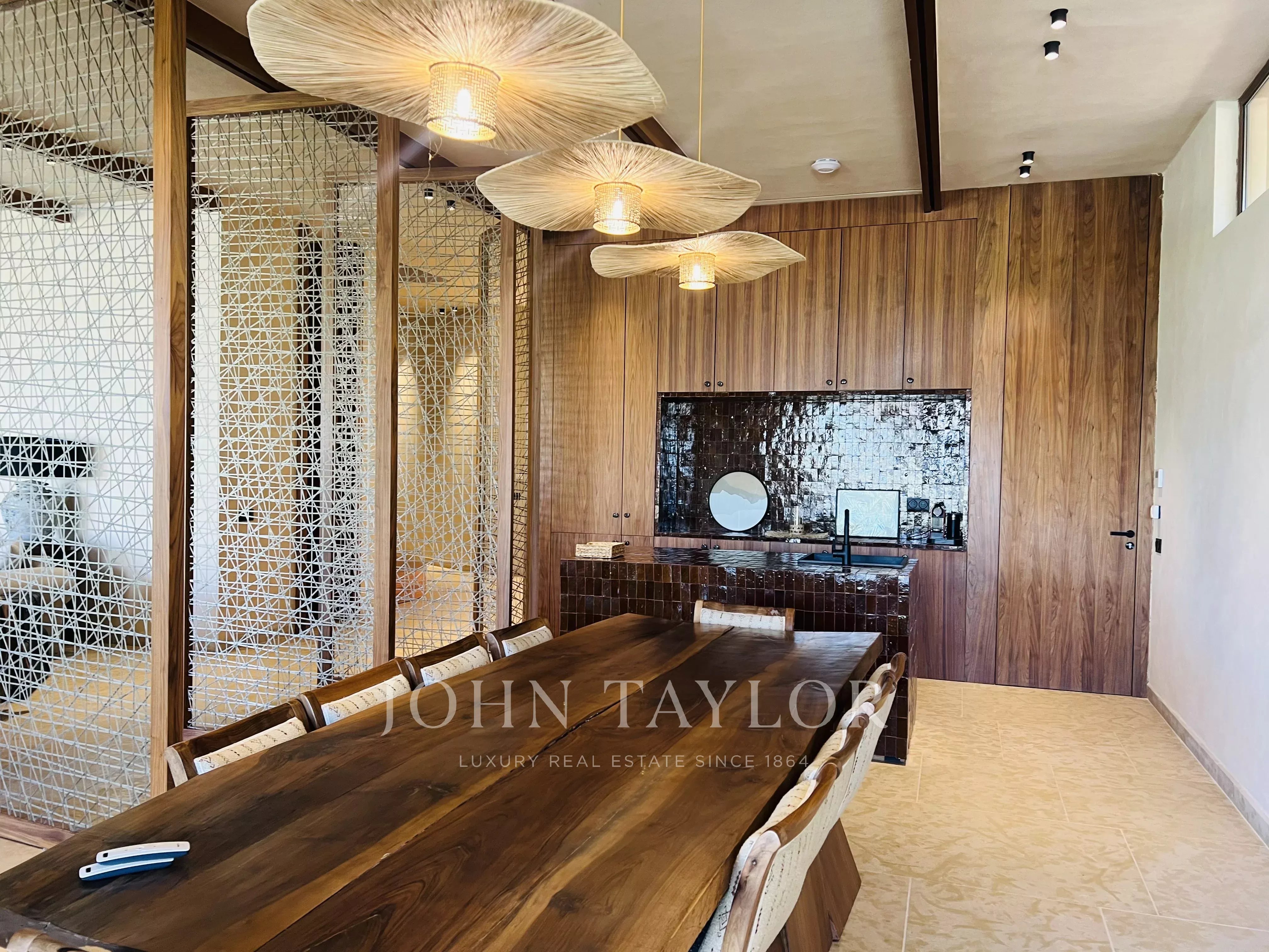 Les volumes courbes, l'aménagement intérieur très raffiné et le mélange de lignes contemporaines avec des matériaux locaux offre un cadre de vie exceptionnel.