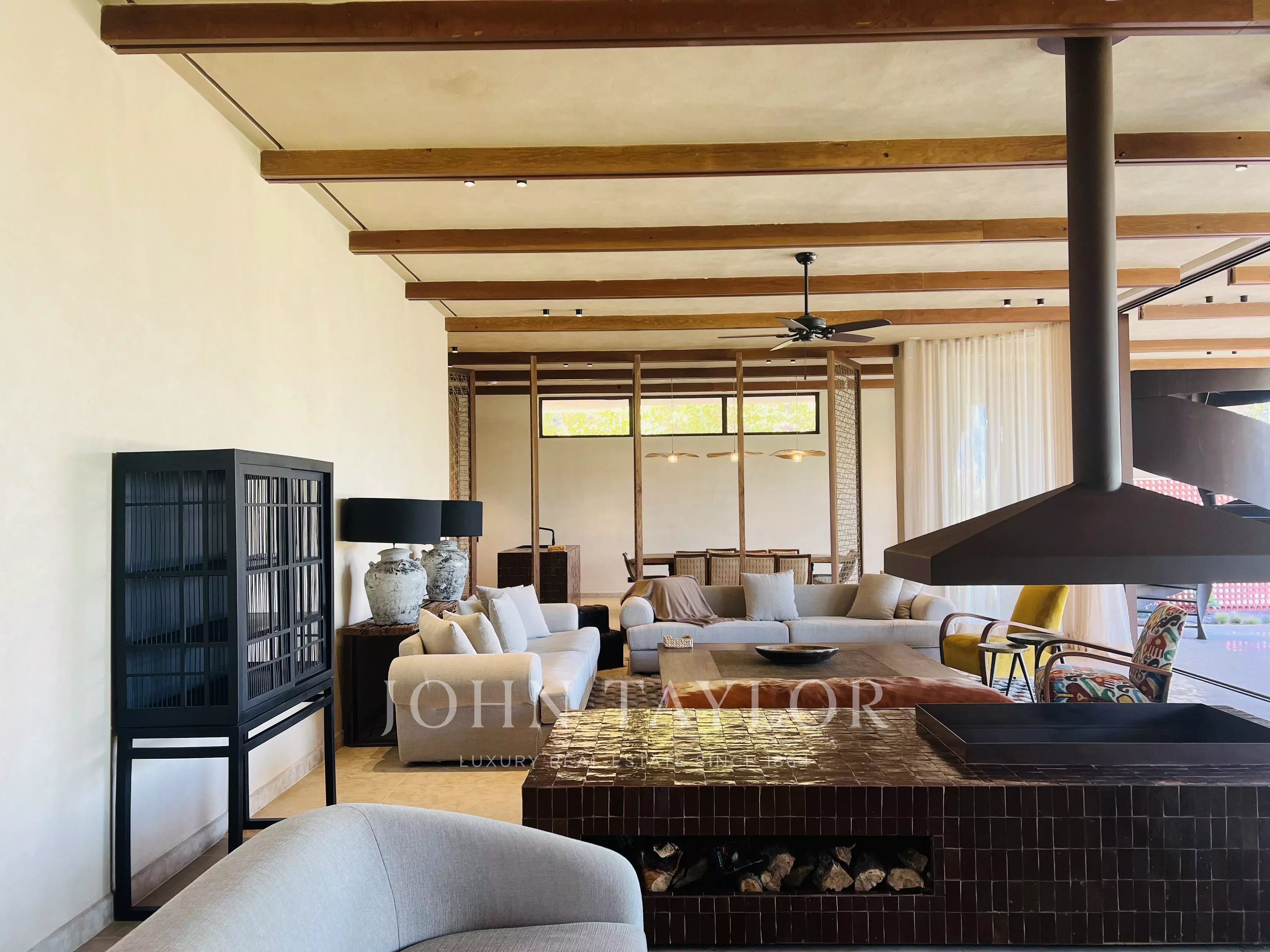 Vaste réception et salle à manger conviviale ouvertes sur terrasse couverte et jardin, 5 suites dont une très belle Master à l'étage, salon TV, Patio méditatif, dépendances.