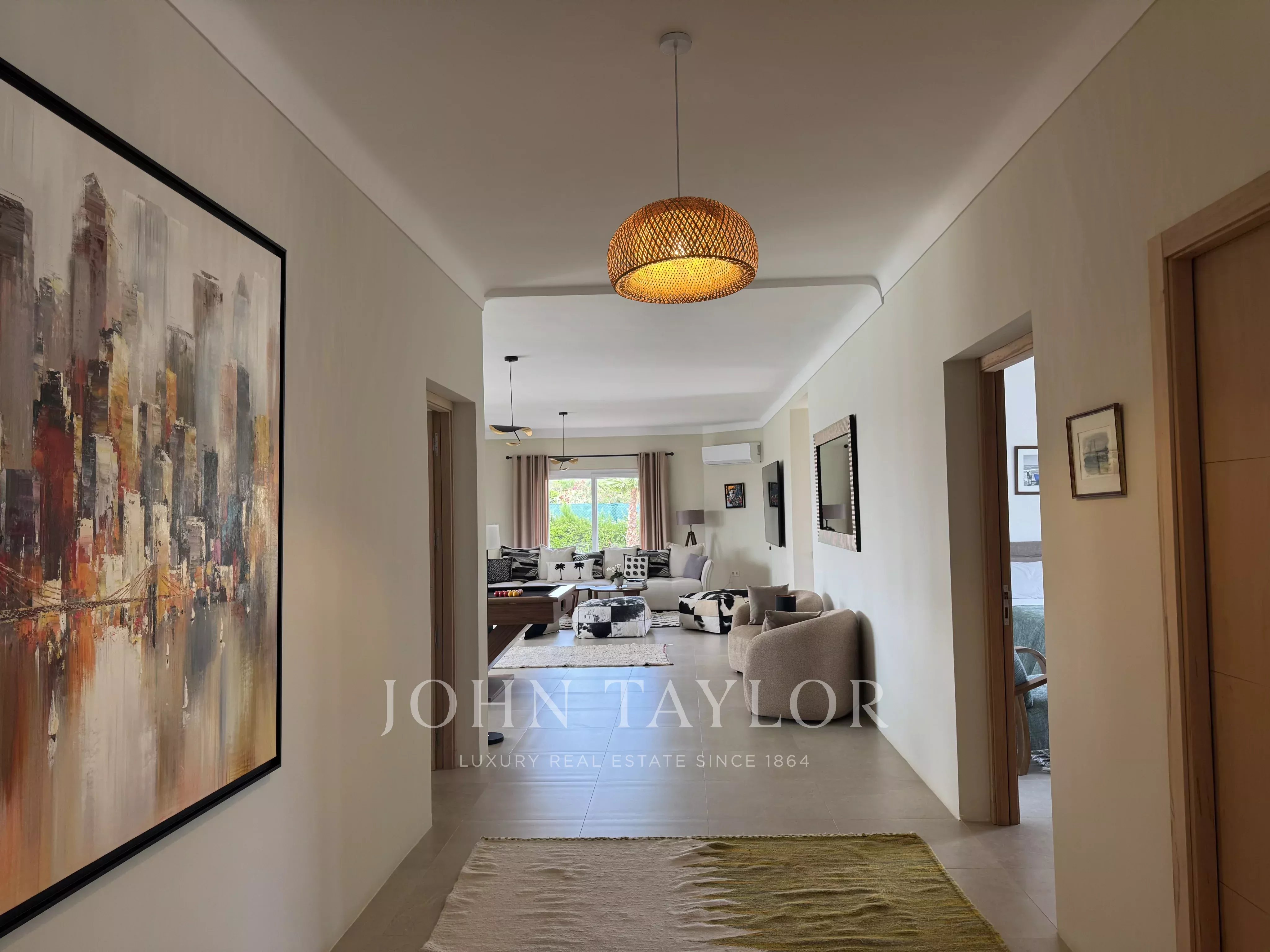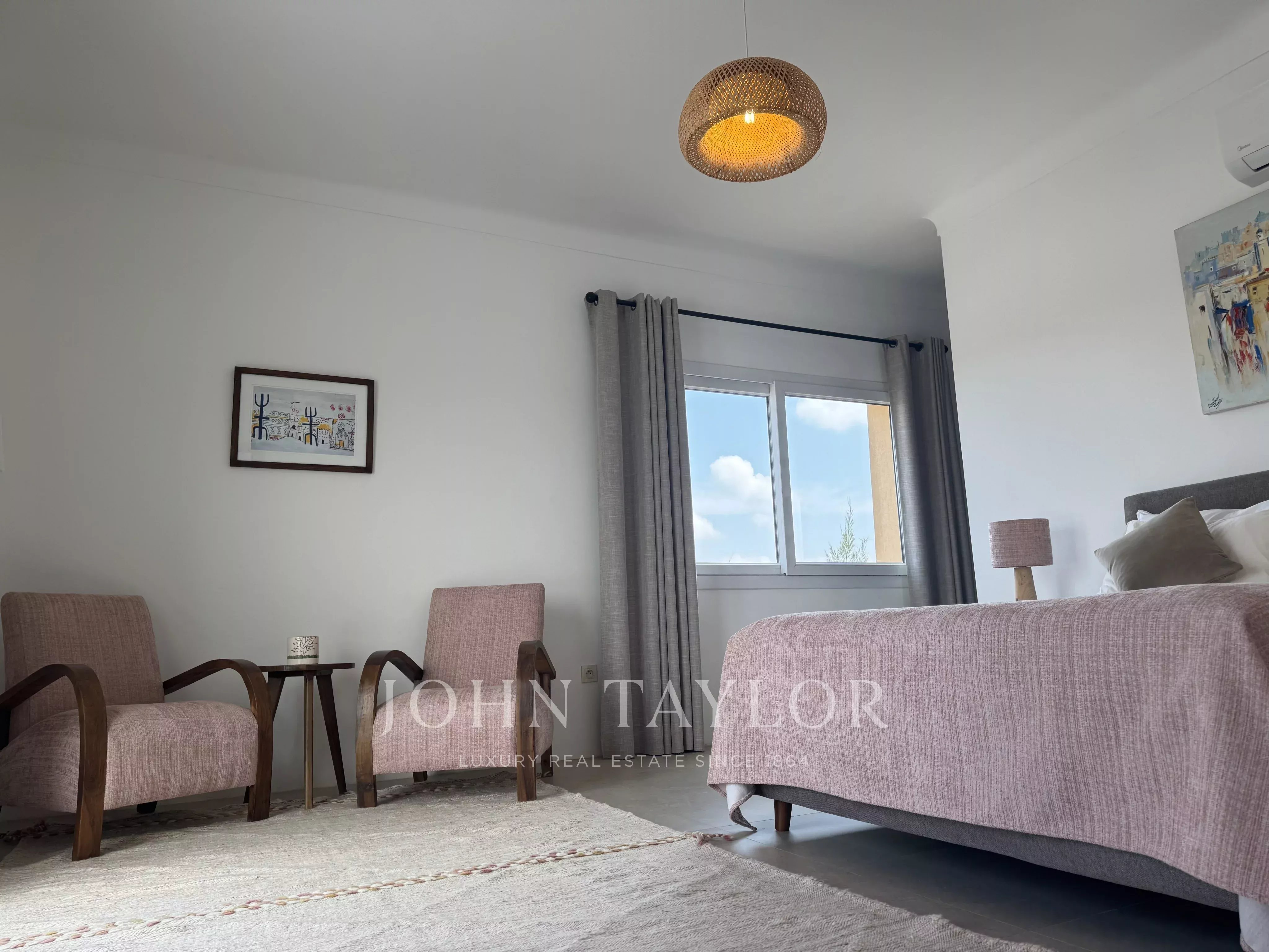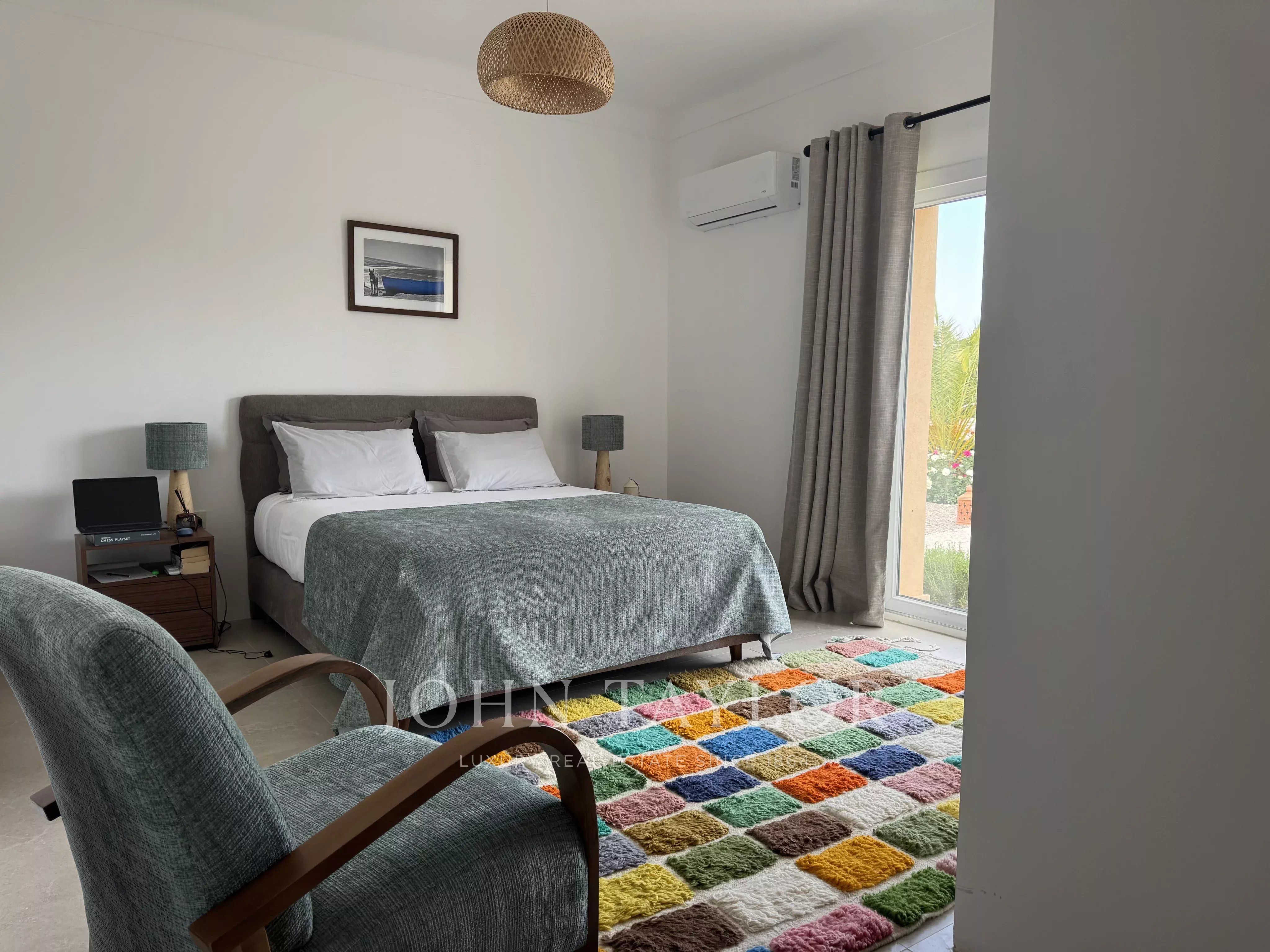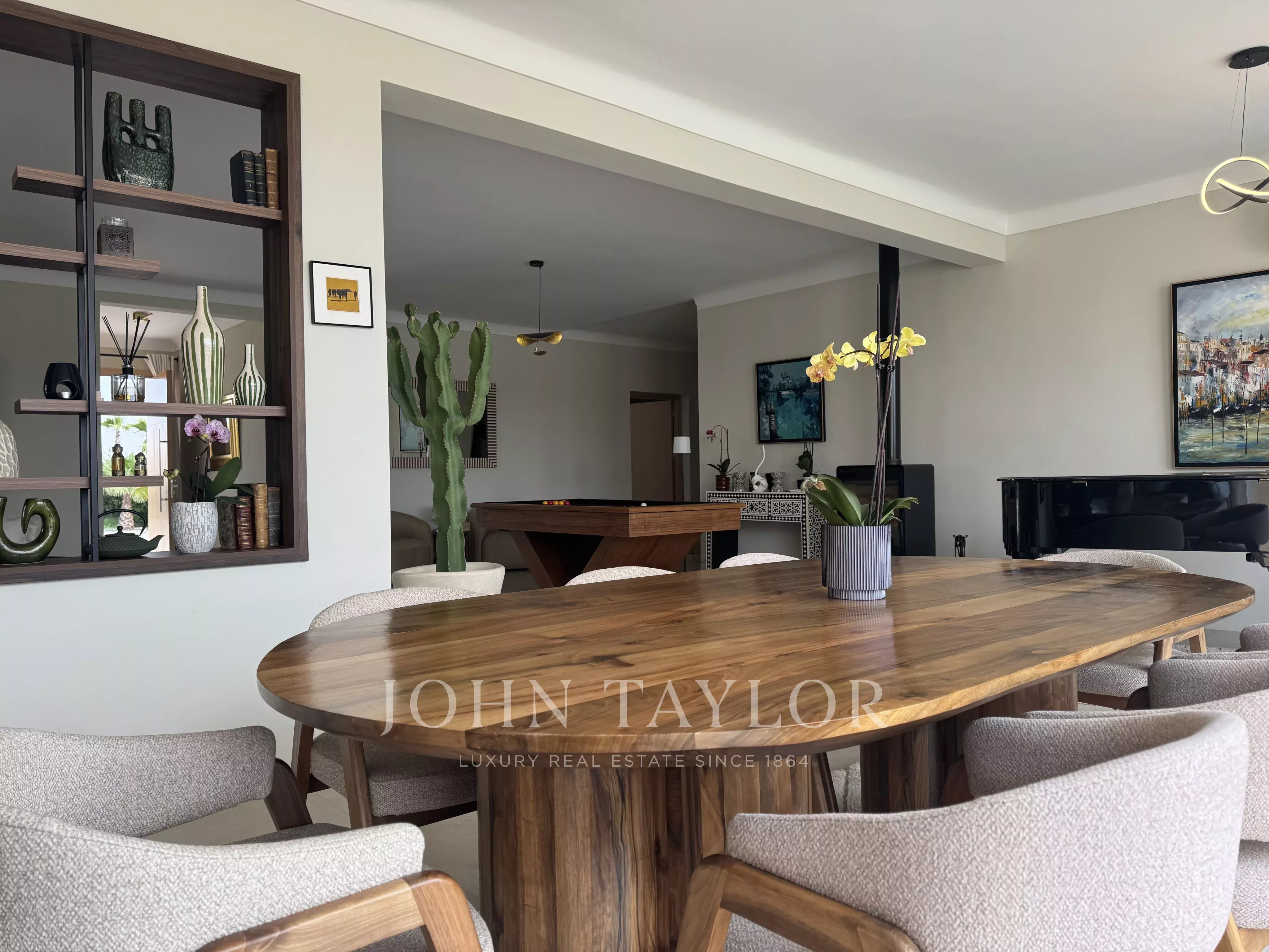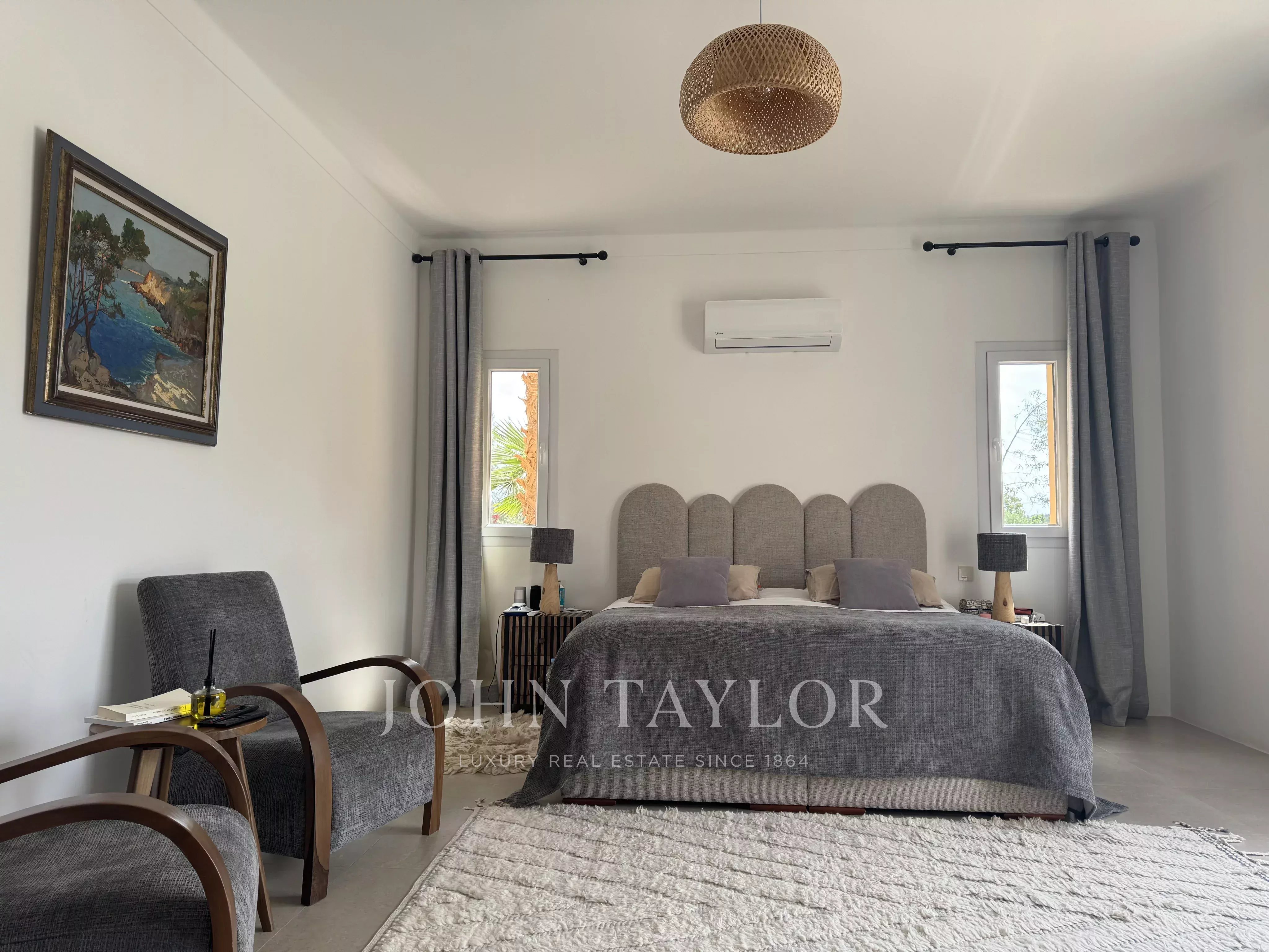 D'une surface habitable de 420m2 sur 2 niveaux, elle comprend: un vaste espace de vie ouvrant sur la piscine par de larges baies vitrées, une cuisine équipée spacieuse, 4 chambres avec salles de bain et une cinquième chambre dans un pavillon proche de la piscine.