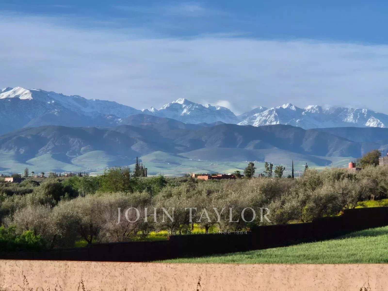 Nichée dans un joli jardin de 5 000m2 hébergeant une piscine, la villa récente dans l'esprit d'une kasbah offre une belle vue sur la chaîne de l'Atlas.