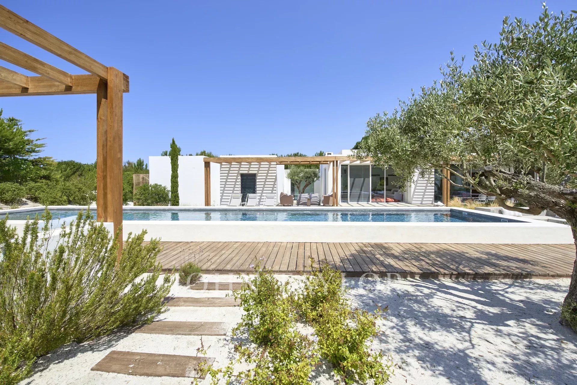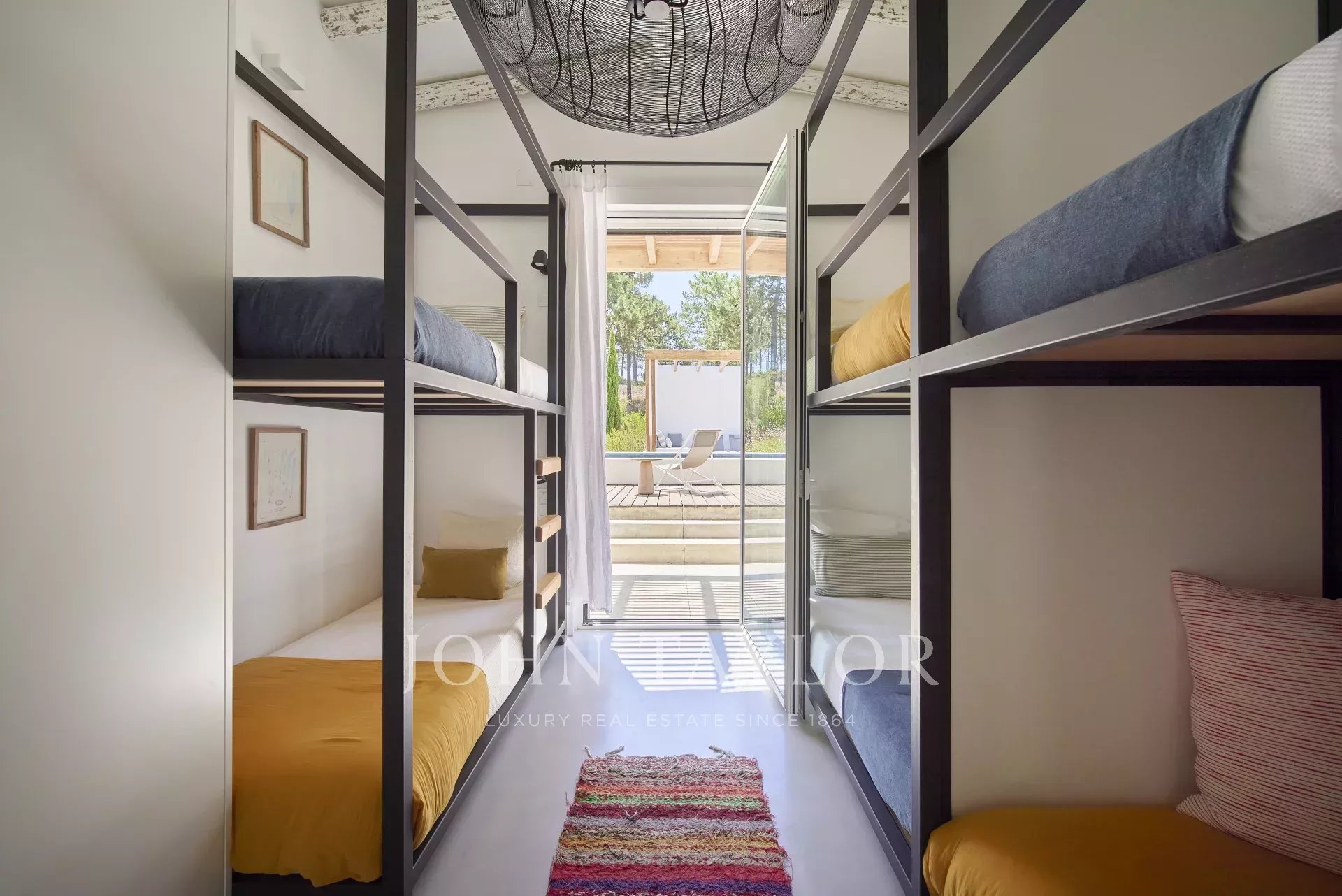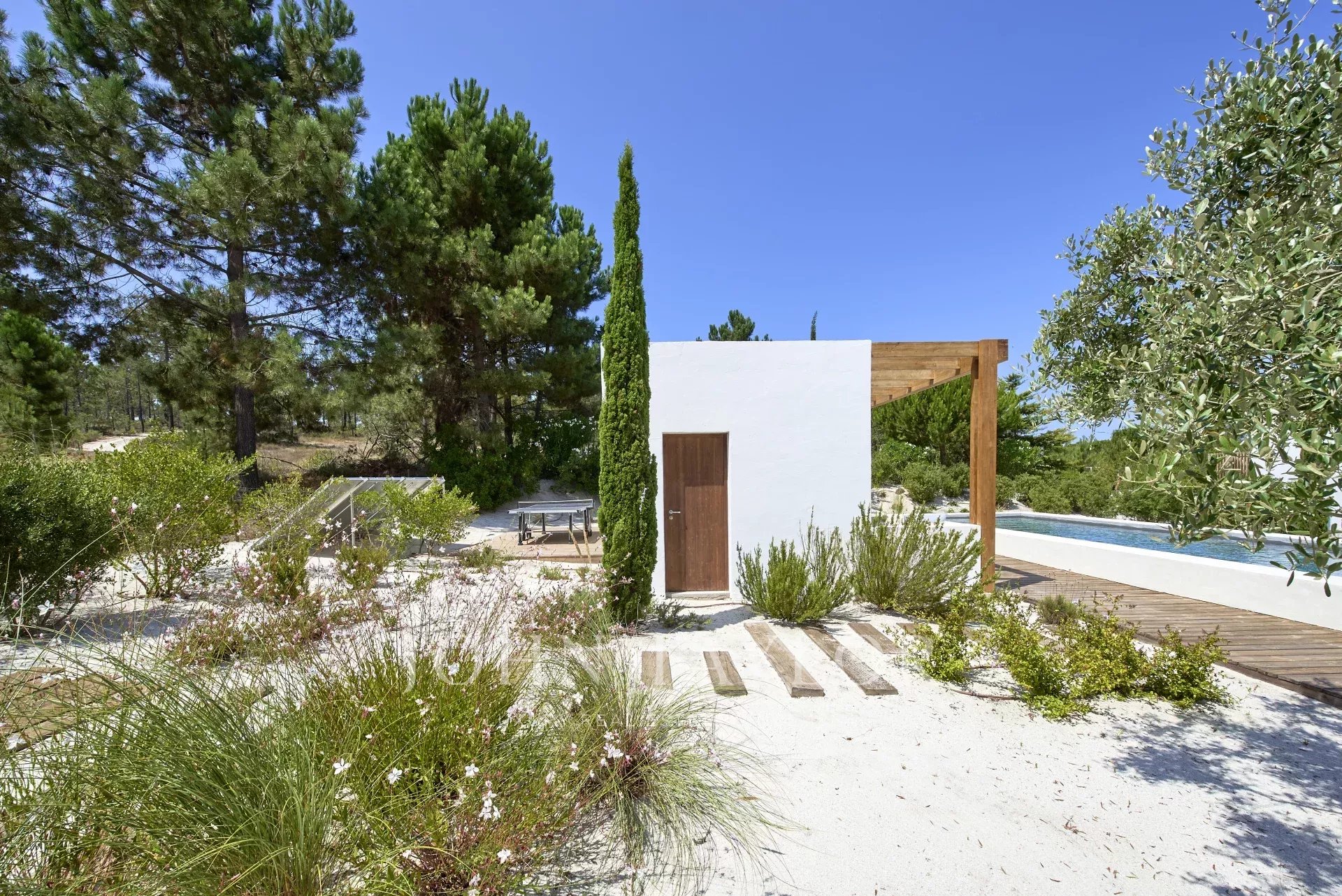Entourée d’un paysage de forêt de pins et de dunes de sable blanc, à quelques minutes de l’emblématique plage de Pego, la Casa Ammos est allie parfaitement le design contemporain et des touches du style local, offrant confort et sophistication. Il accueille confortablement 8 adultes et 6 enfants, avec 5 suites, un grand salon, une salle à manger et une cuisine dans un concept d’espace ouvert, ses grandes fenêtres coulissantes offrent une connexion parfaite entre les espaces intérieurs et extérieurs. À l’extérieur, profitez de la piscine, partagez des moments inoubliables autour du feu de camp, sous le ciel étoilé de Comporta et dégustez de délicieux repas en famille et entre amis. Le toit-terrasse avec une vue imprenable est le cadre idéal pour se détendre et contempler le magnifique coucher de soleil. Avec un emplacement privilégié, à quelques minutes des plus belles plages de la région, à seulement 5 minutes du golf de Dunas et à 3 minutes du village de Carvalhal, où vous trouverez plusieurs services et commerces de proximité, la Casa Ámmos est idéale pour des vacances mémorables.