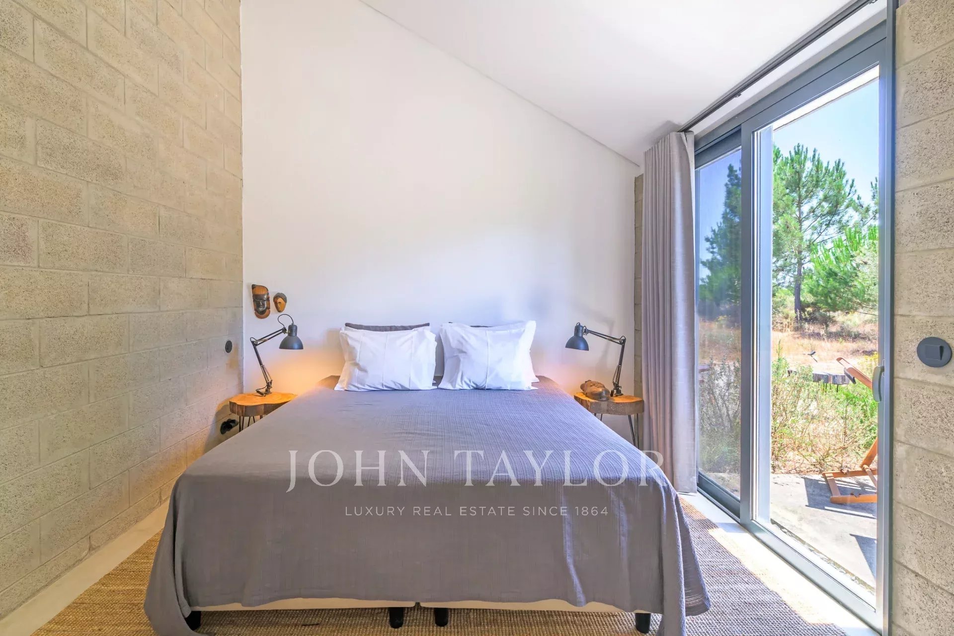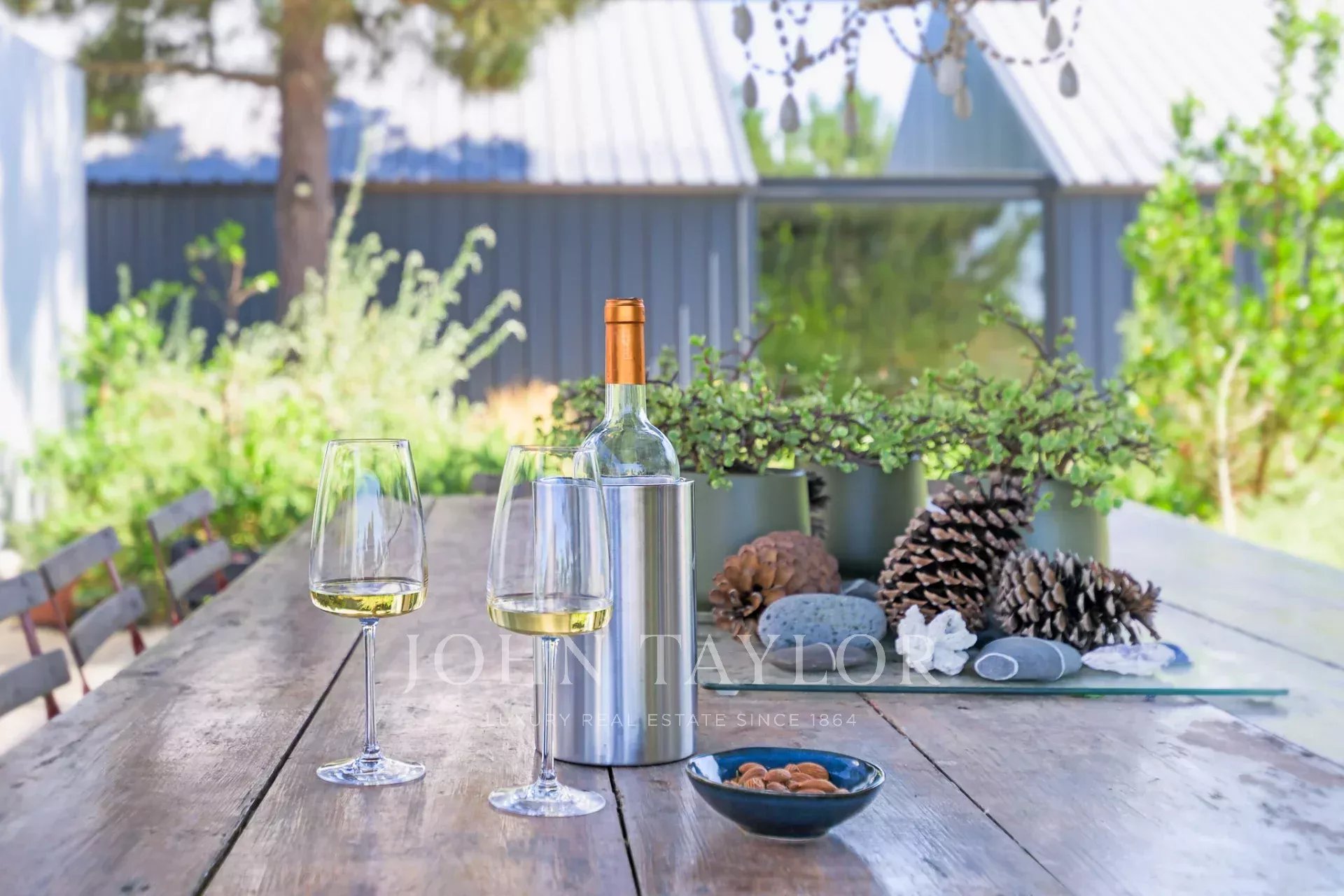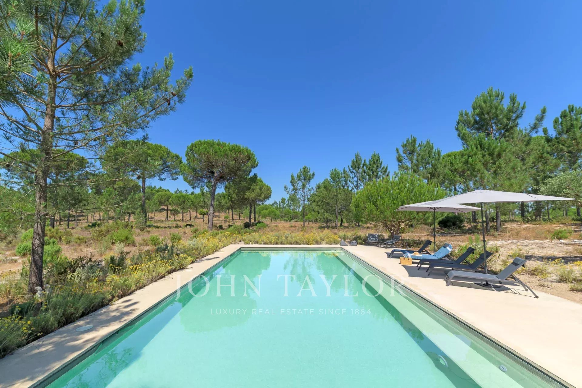 À l’extérieur, la nature est mise à l’honneur. Entre oliviers centenaires, pins, romarin et lavande, la piscine invite à une baignade rafraîchissante, tandis que le paysage environnant appelle au repos.