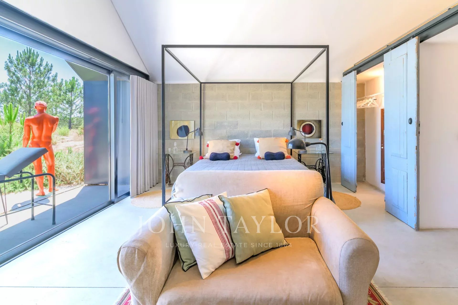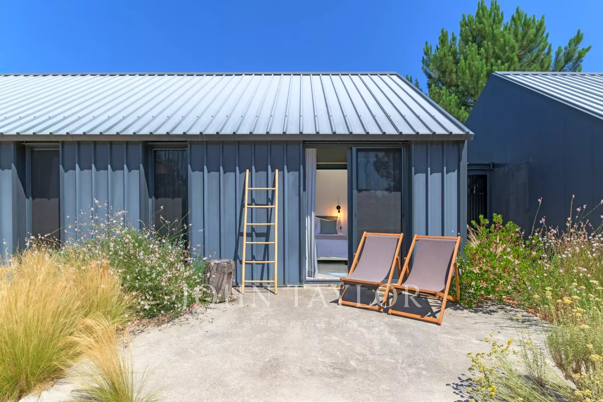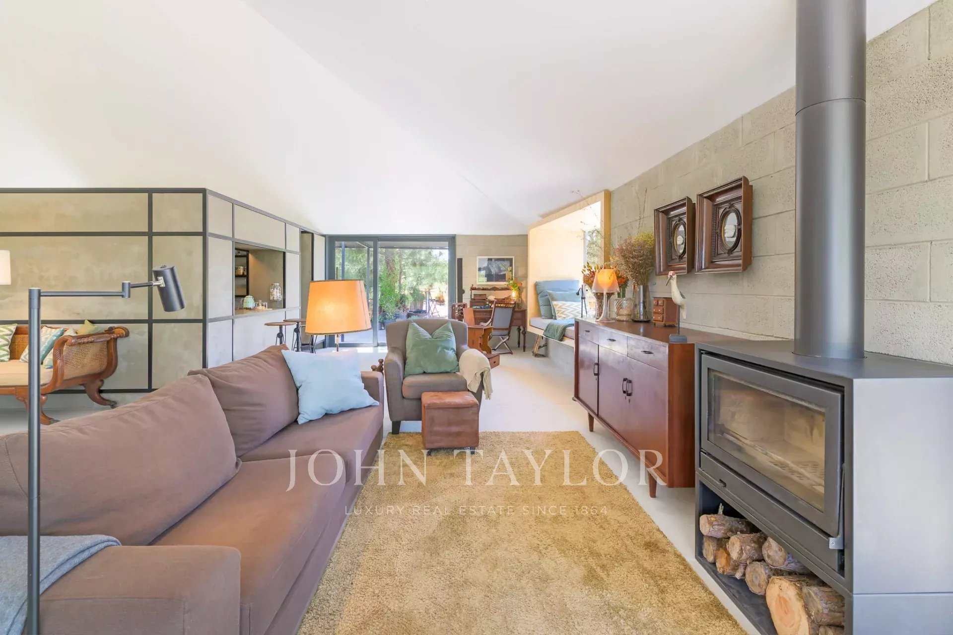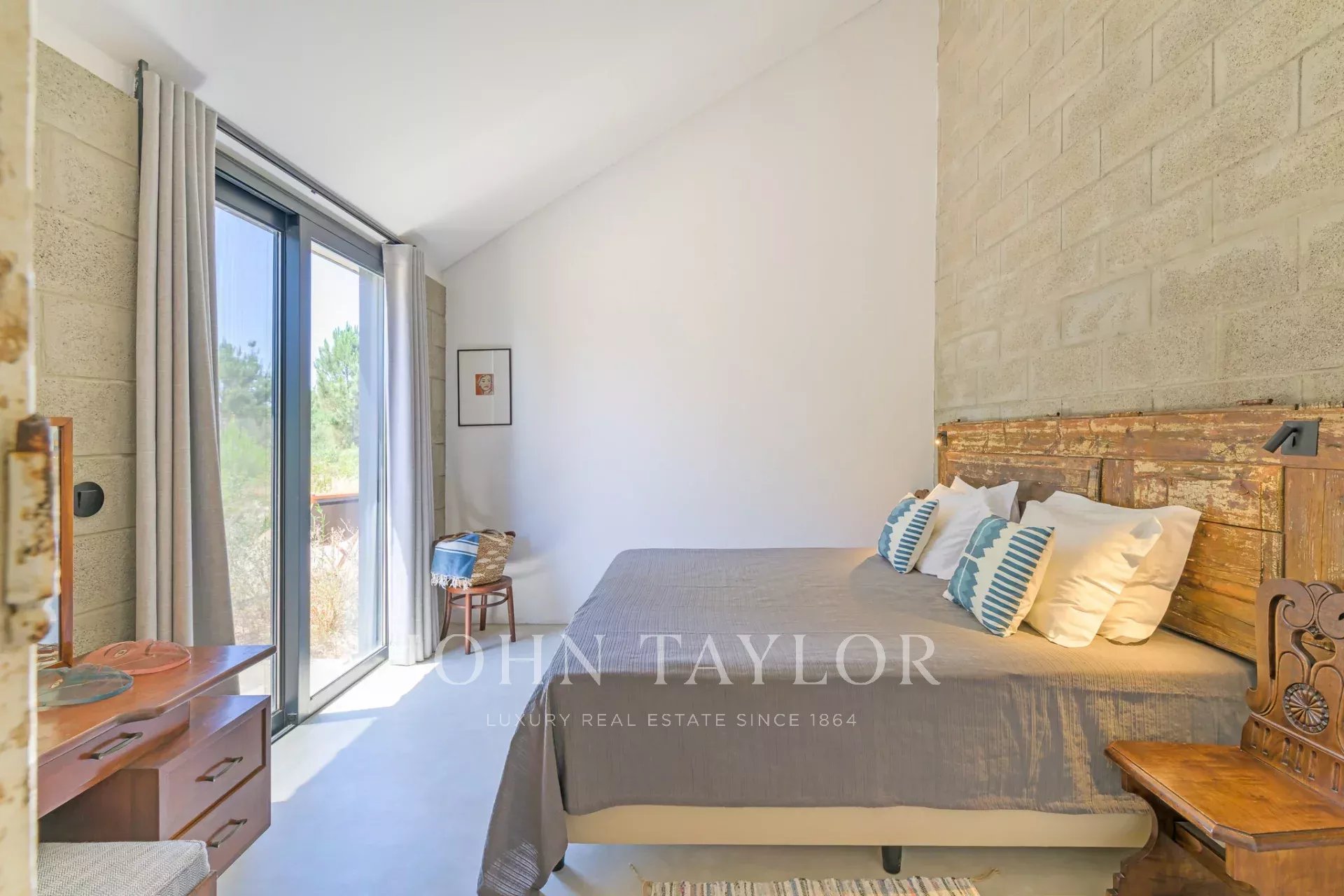 À l’extérieur, la nature est mise à l’honneur. Entre oliviers centenaires, pins, romarin et lavande, la piscine invite à une baignade rafraîchissante, tandis que le paysage environnant appelle au repos.