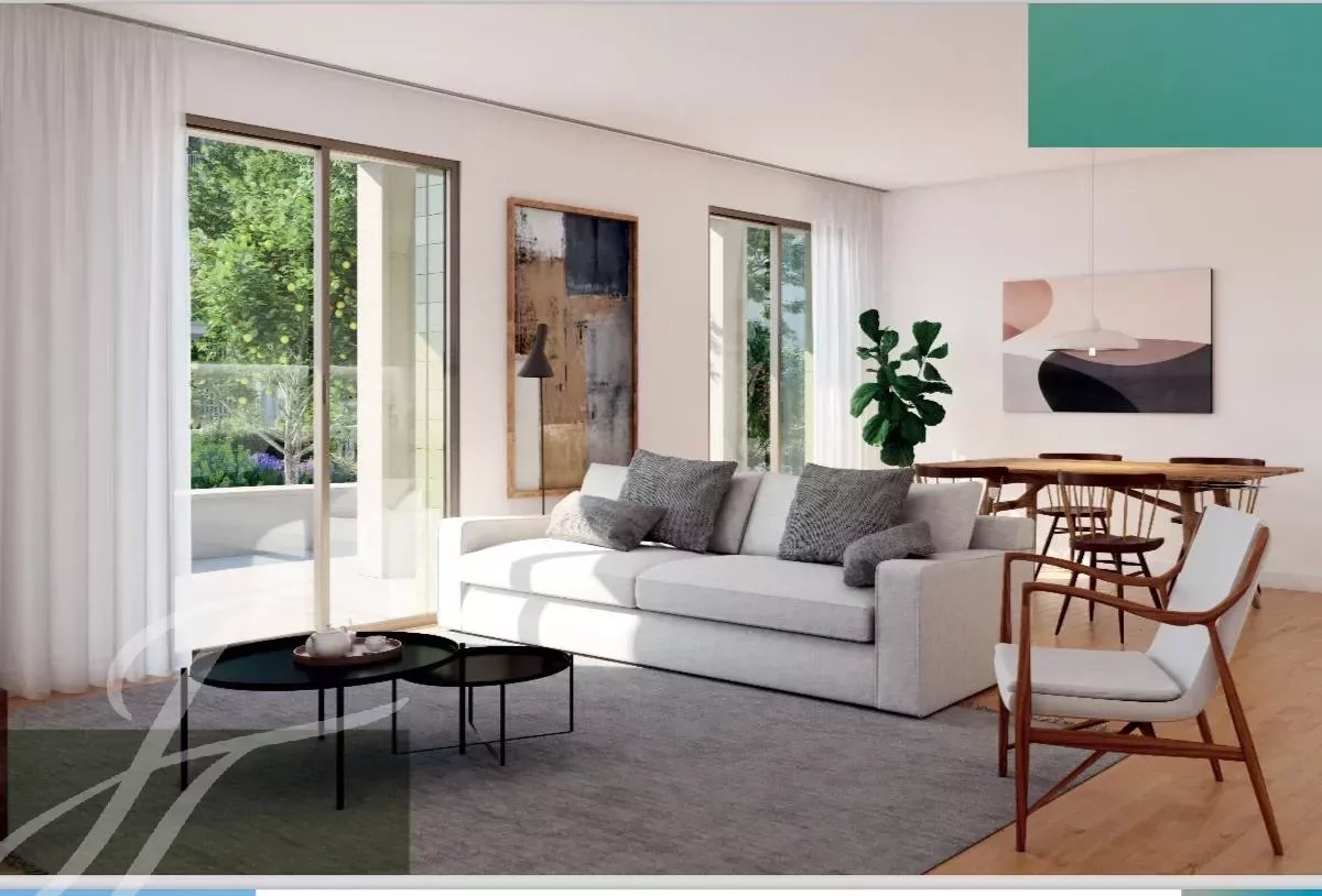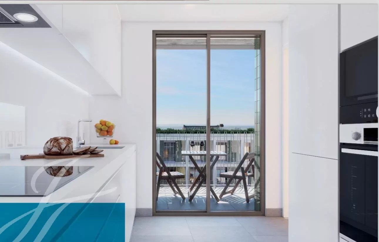 La typologie de l'appartement offre un salon spacieux, une cuisine ouverte moderne entièrement équipée avec des appareils Bosch (réfrigérateur, four, lave-linge, lave-vaisselle et micro-ondes).