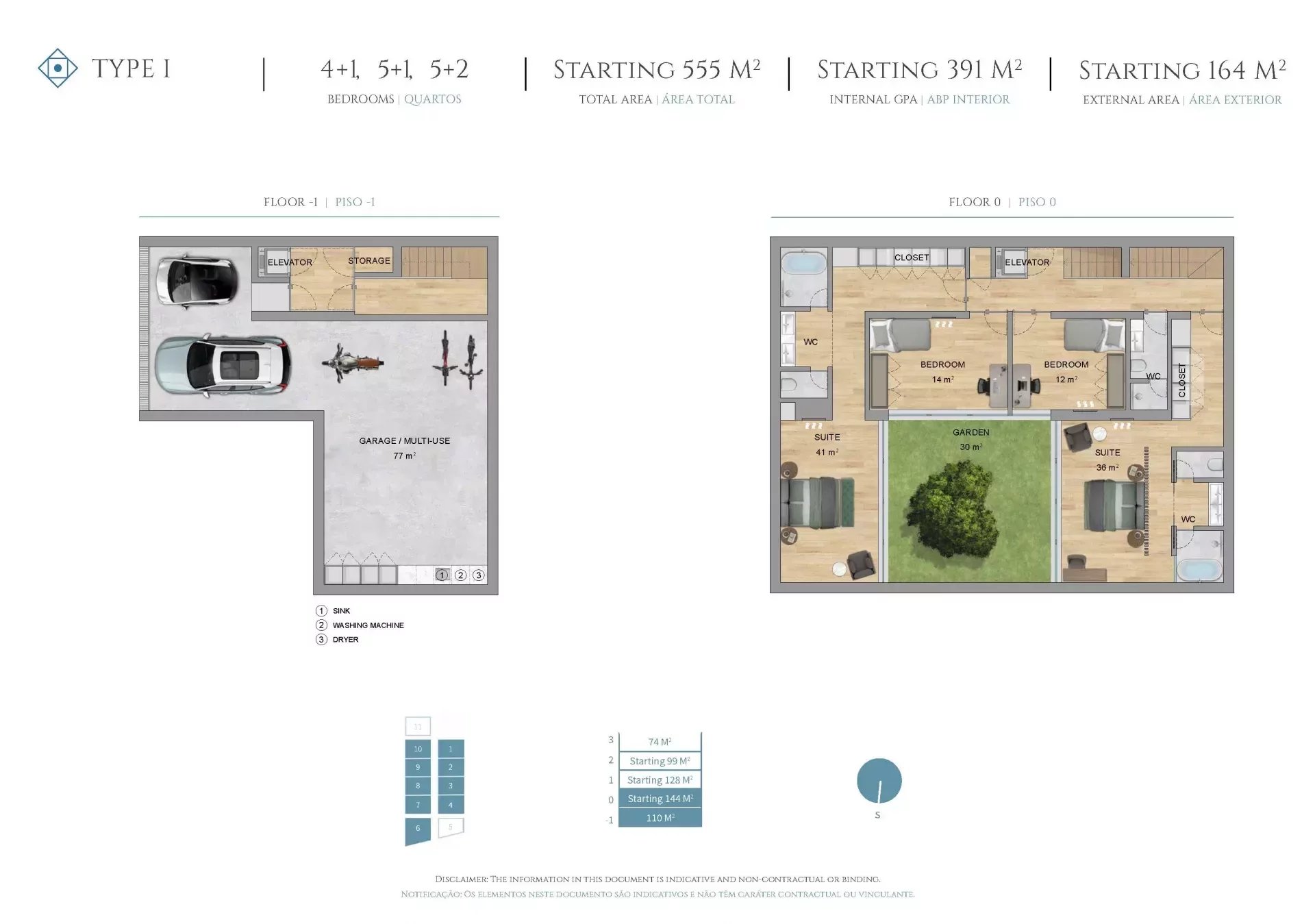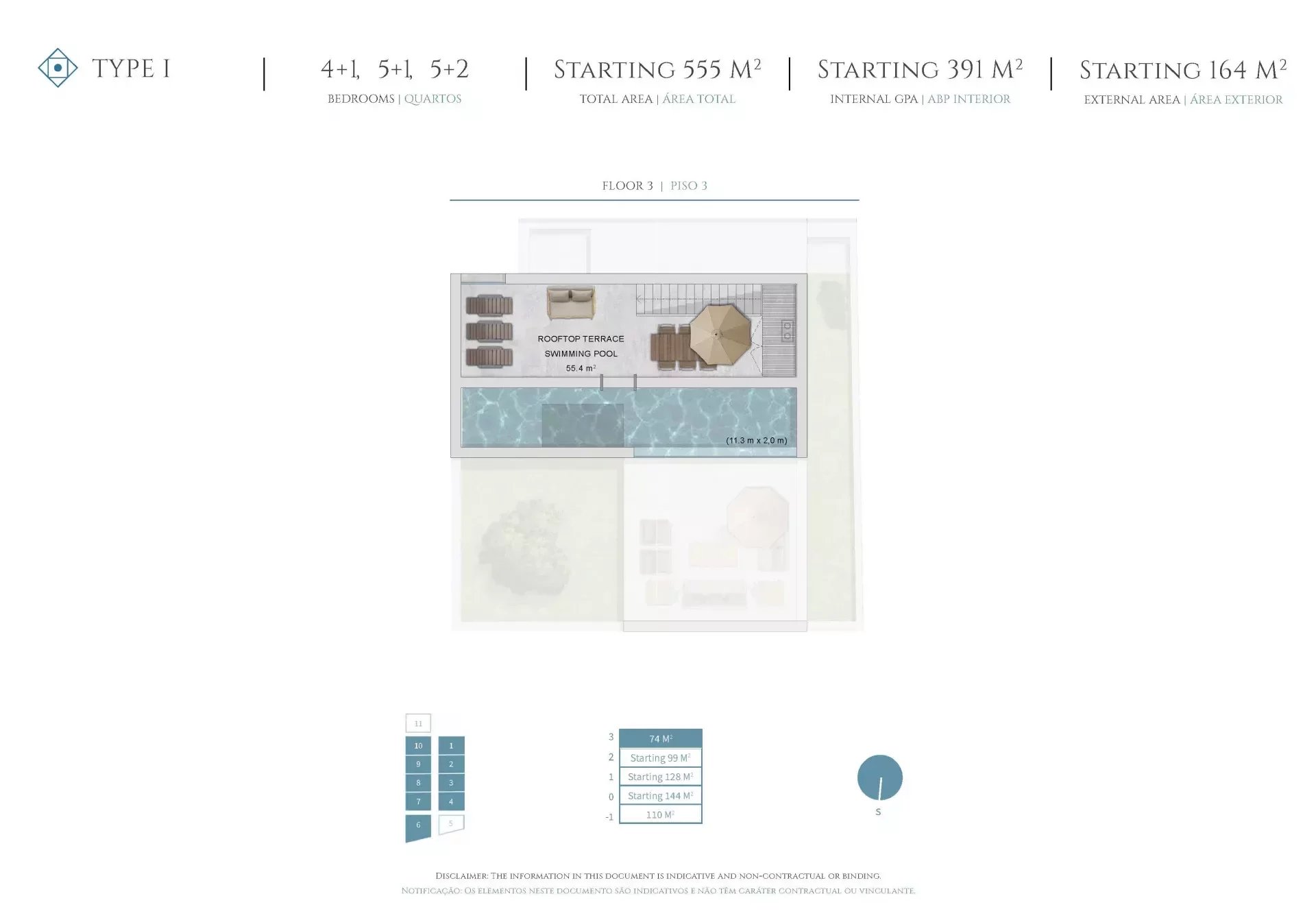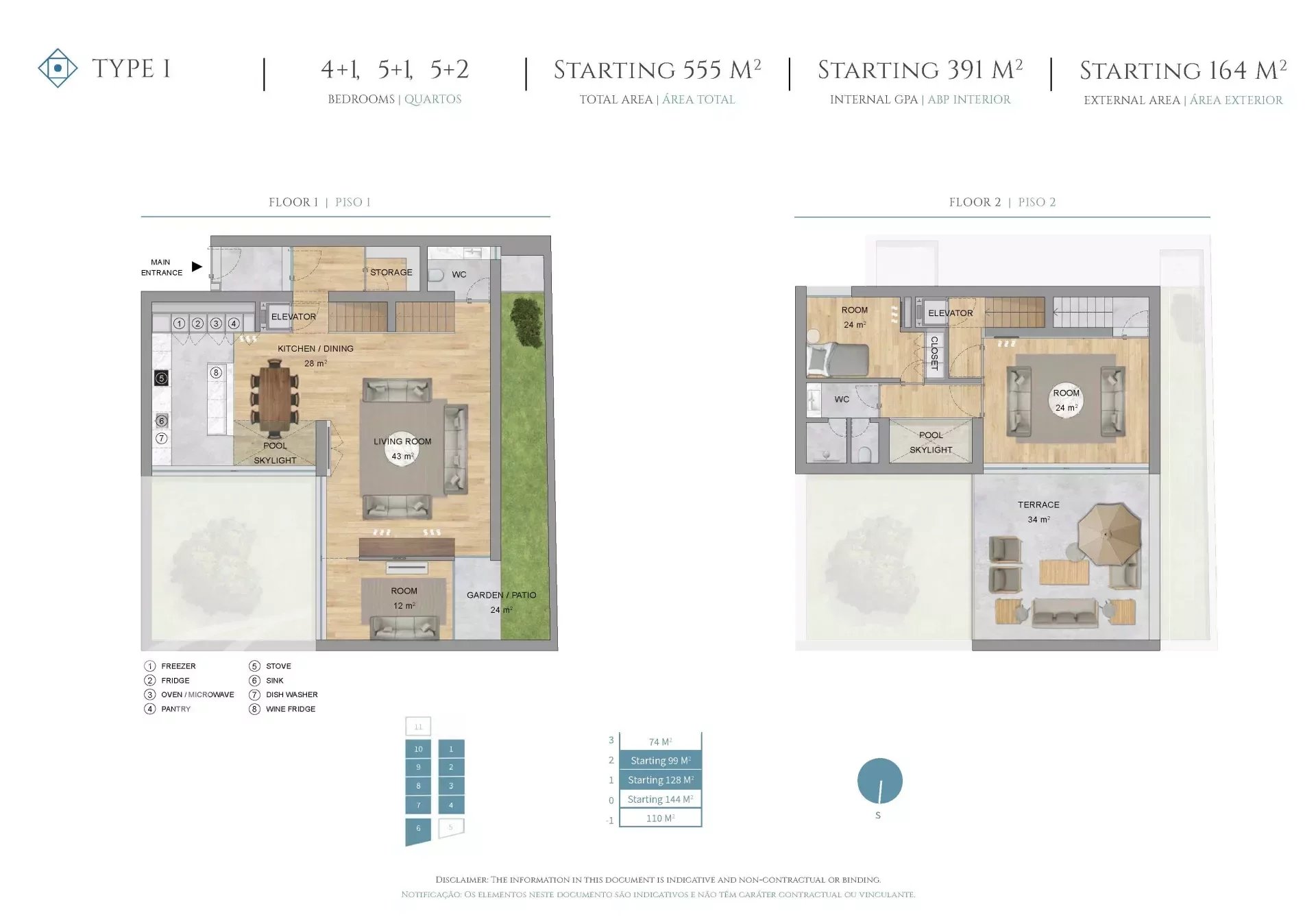 Chaque villa est spacieuse, de 3 à 6 chambres, avec une piscine privée, des jardins et un parking souterrain à usage polyvalent.