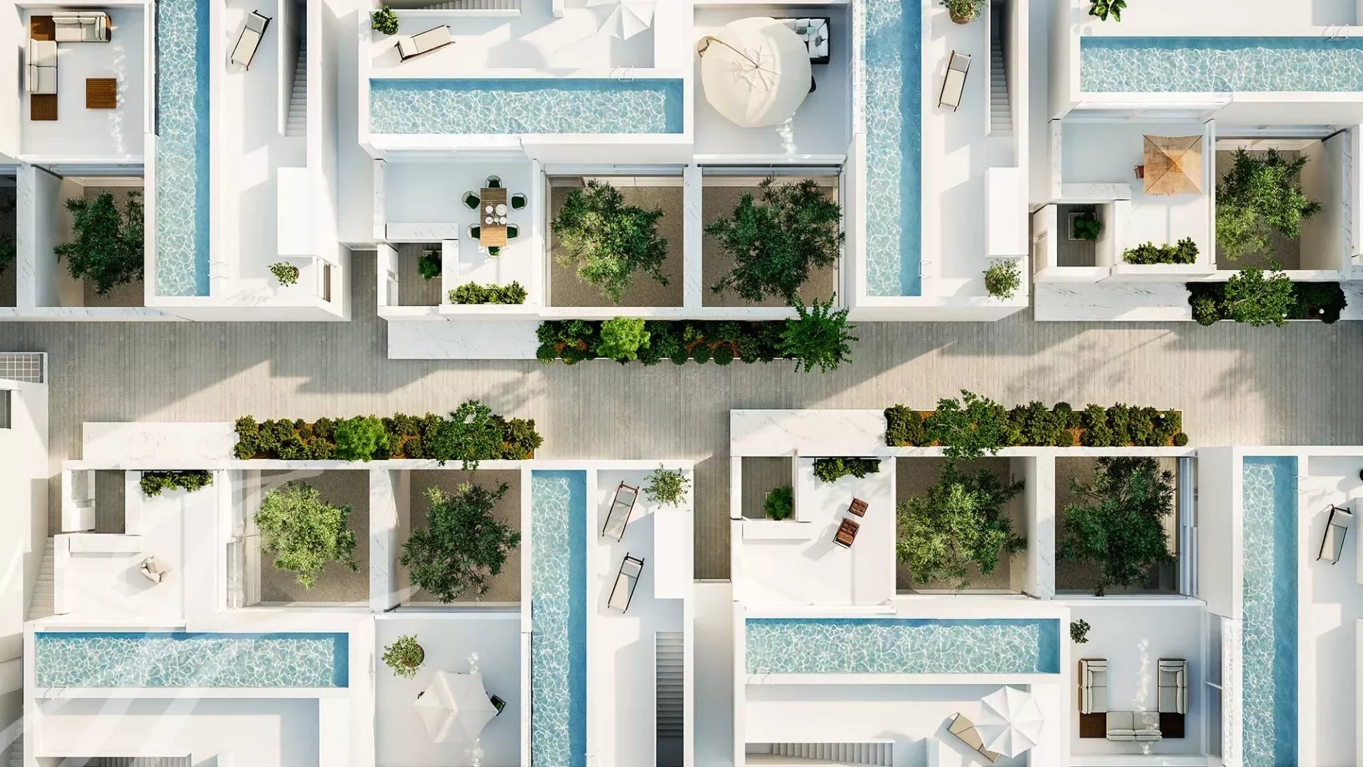 Chaque résidence offre une sensation de lumière, de terre et d'eau grâce à divers éléments, notamment des murs en verre allant du sol au plafond. À chaque niveau des villas, il y aura des patios et des espaces verts pour une expérience de vie tranquille et privée.
