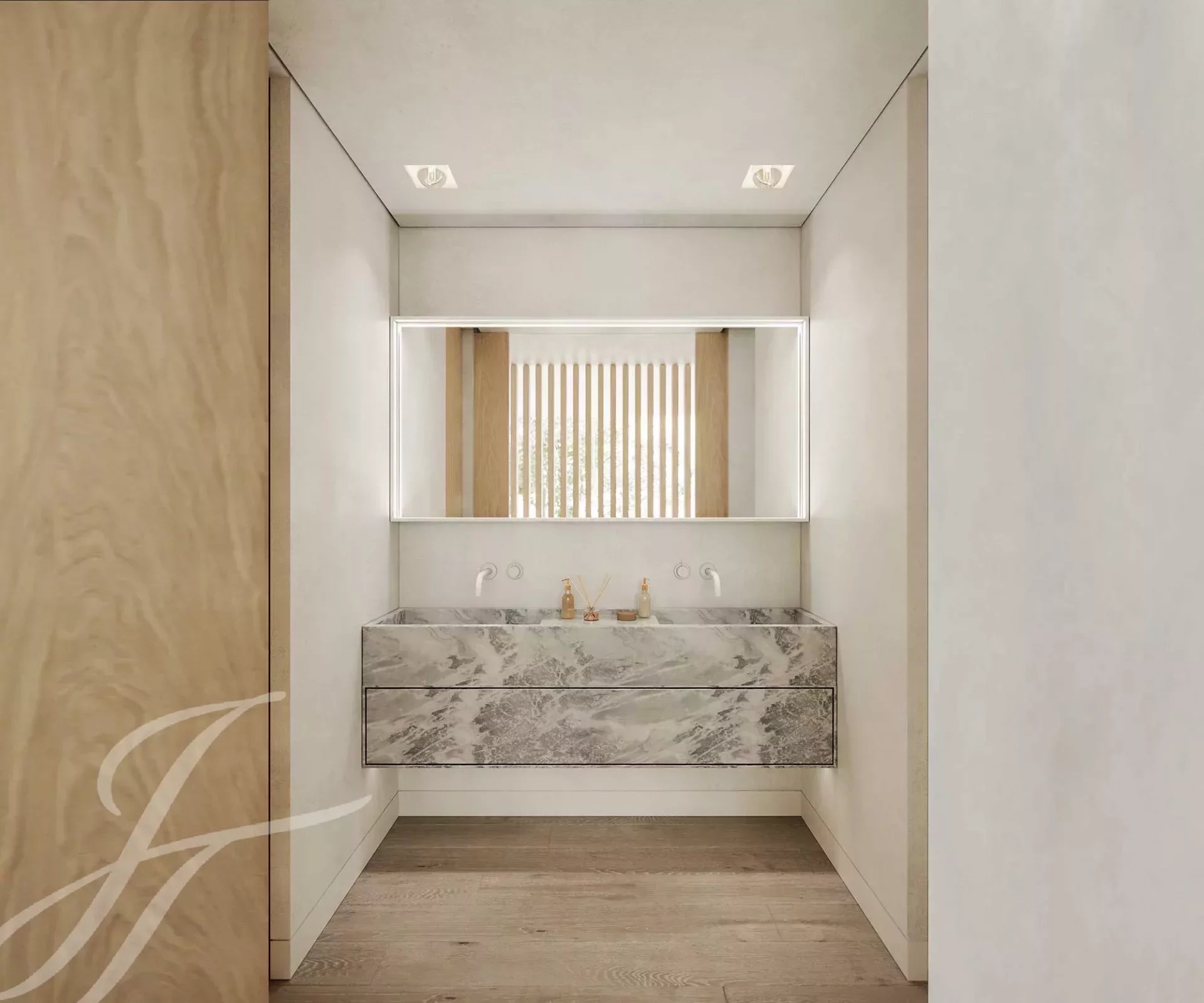 L'attention portée aux détails et l'utilisation de matériaux haut de gamme et d'éléments de conception sophistiqués créent une atmosphère de luxe et de sophistication, depuis le bois naturel de haute qualité du sol jusqu'aux finitions en pierre de la cuisine, des salles de bains et des éléments extérieurs.