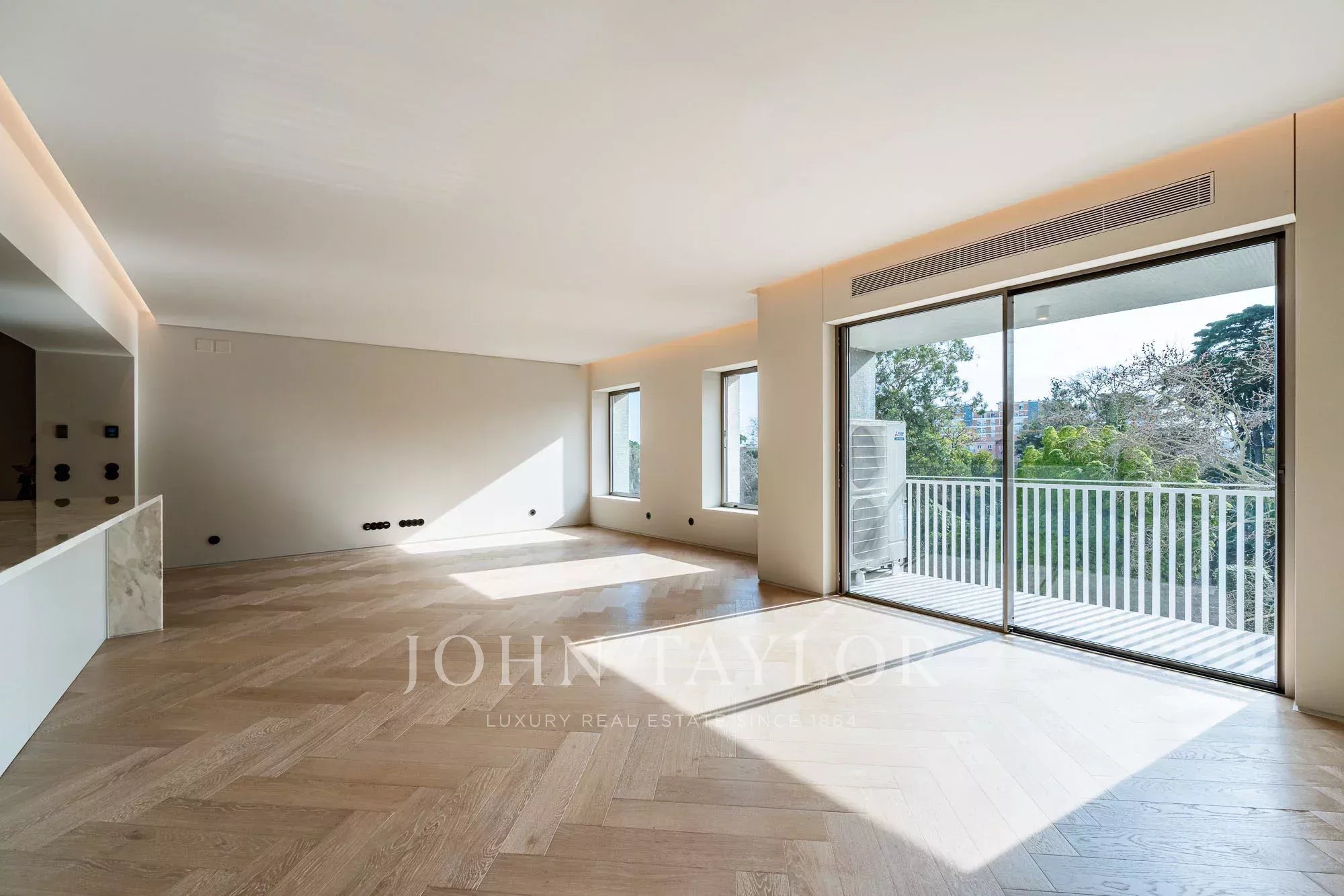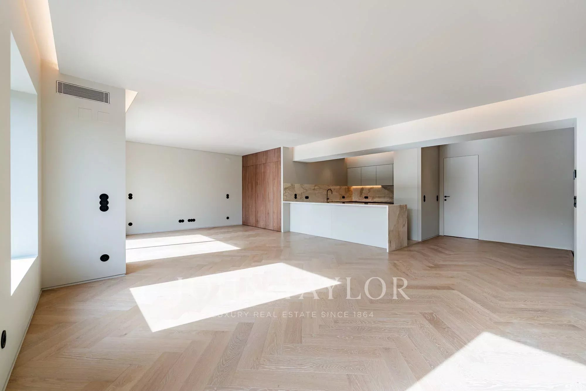 Les quartiers privés comprennent une généreuse suite principale de 27 m² offrant espace, confort et intimité, complétée par deux chambres supplémentaires avec salle de bains. L'ensemble de l'appartement bénéficie également d'un chauffage par le sol, assurant un confort thermique tout au long de l'année.