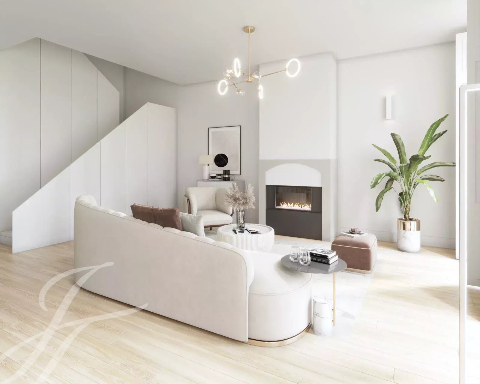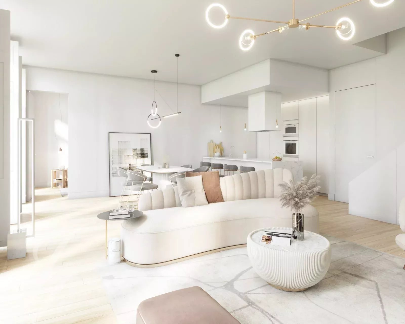 Le salon est spacieux et baigné de lumière naturelle. Il est conçu pour accueillir des réunions sociales avec beaucoup d'espace. Chacune des trois chambres dispose d'une salle de bain attenante et d'un placard. Les matériaux privilégiés sont la pierre calcaire de Lioz, le marbre, le granit et le bois dur.