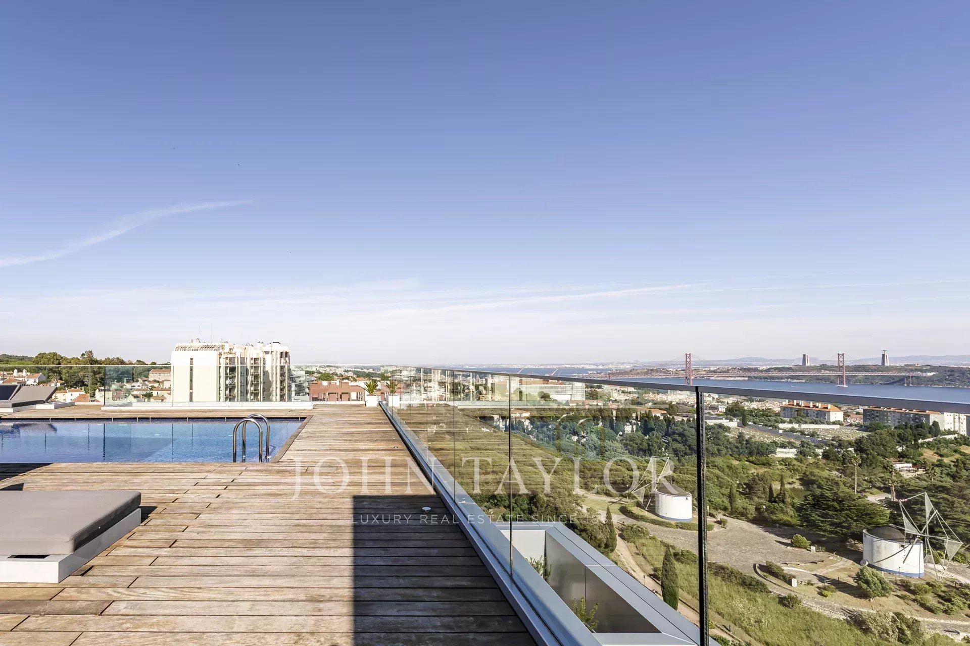 Au dernier étage, avec une vue panoramique sur Lisbonne, vous pourrez profiter de 2 piscines dont l'eau est chauffée par des panneaux solaires, d'un sauna, d'une salle de sport, de vestiaires, d'un bar et d'un espace lounge.