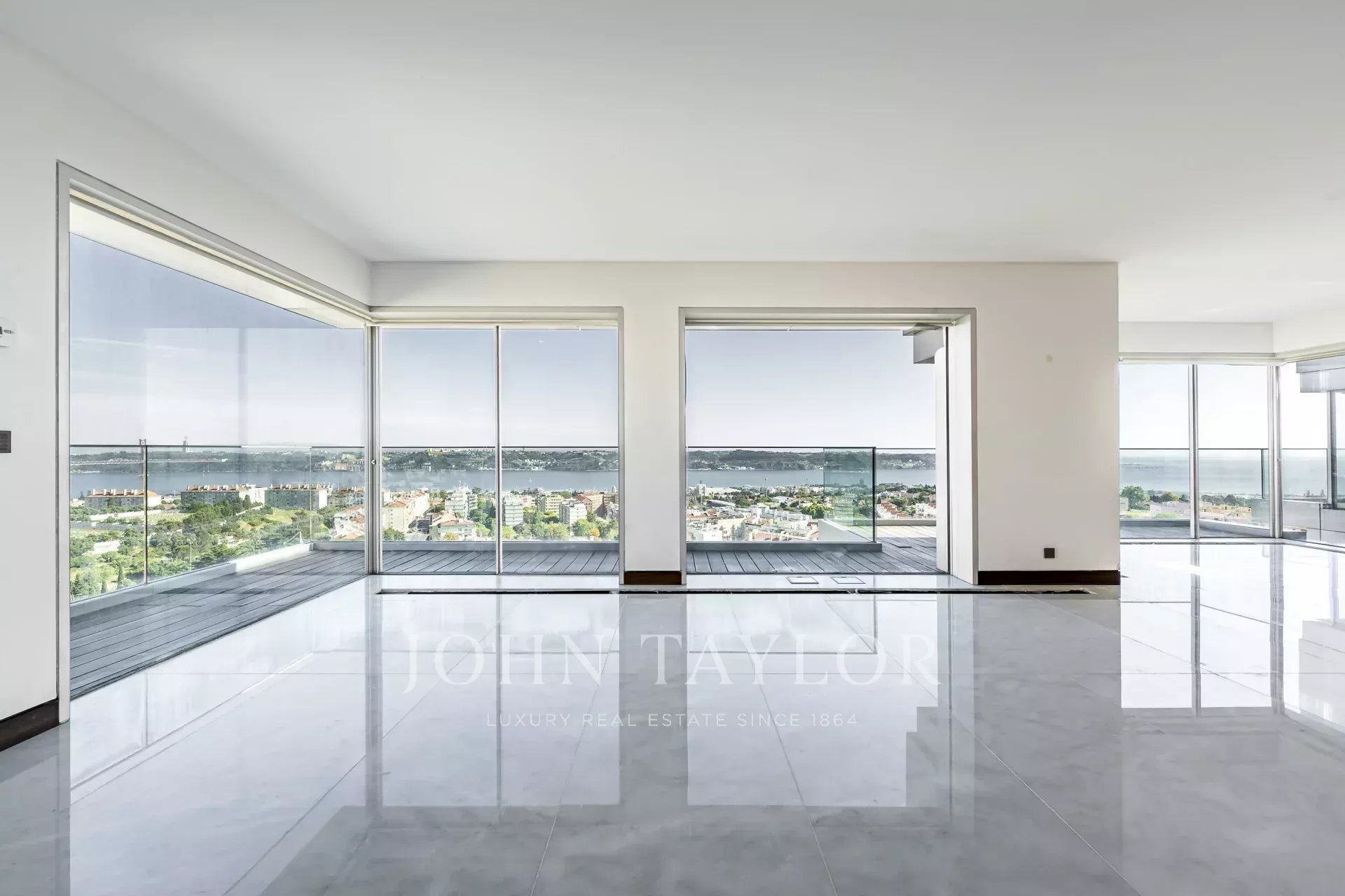 Appartement de 4 chambres à coucher, avec 282 m2 de surface privée brute et 3 places de parking, inséré dans une copropriété de luxe, avec piscine et salle de sport, située sur la colline de Belém, avec une vue fantastique sur la ville, le fleuve Tage et la chaîne de montagnes Monsanto.