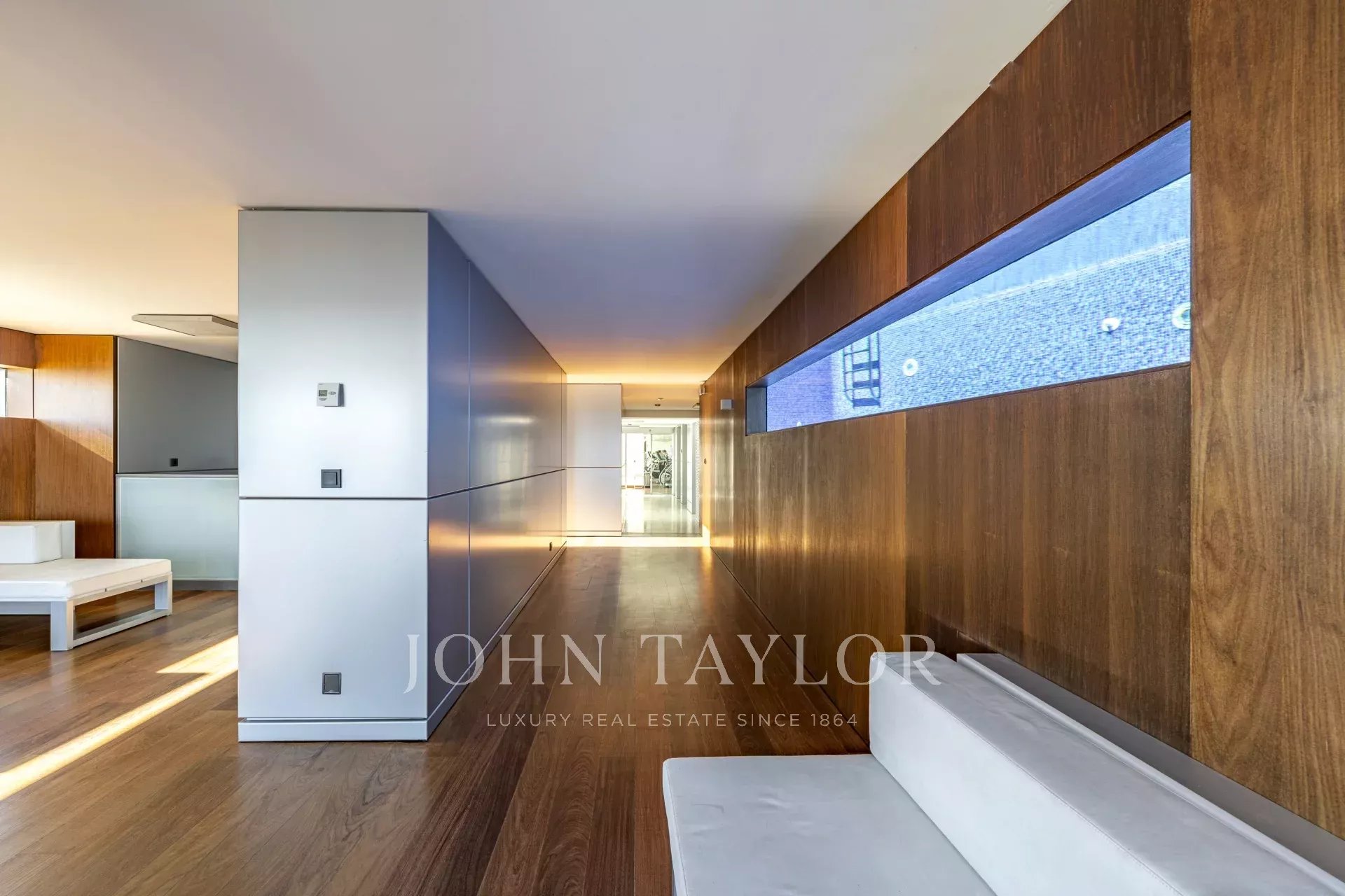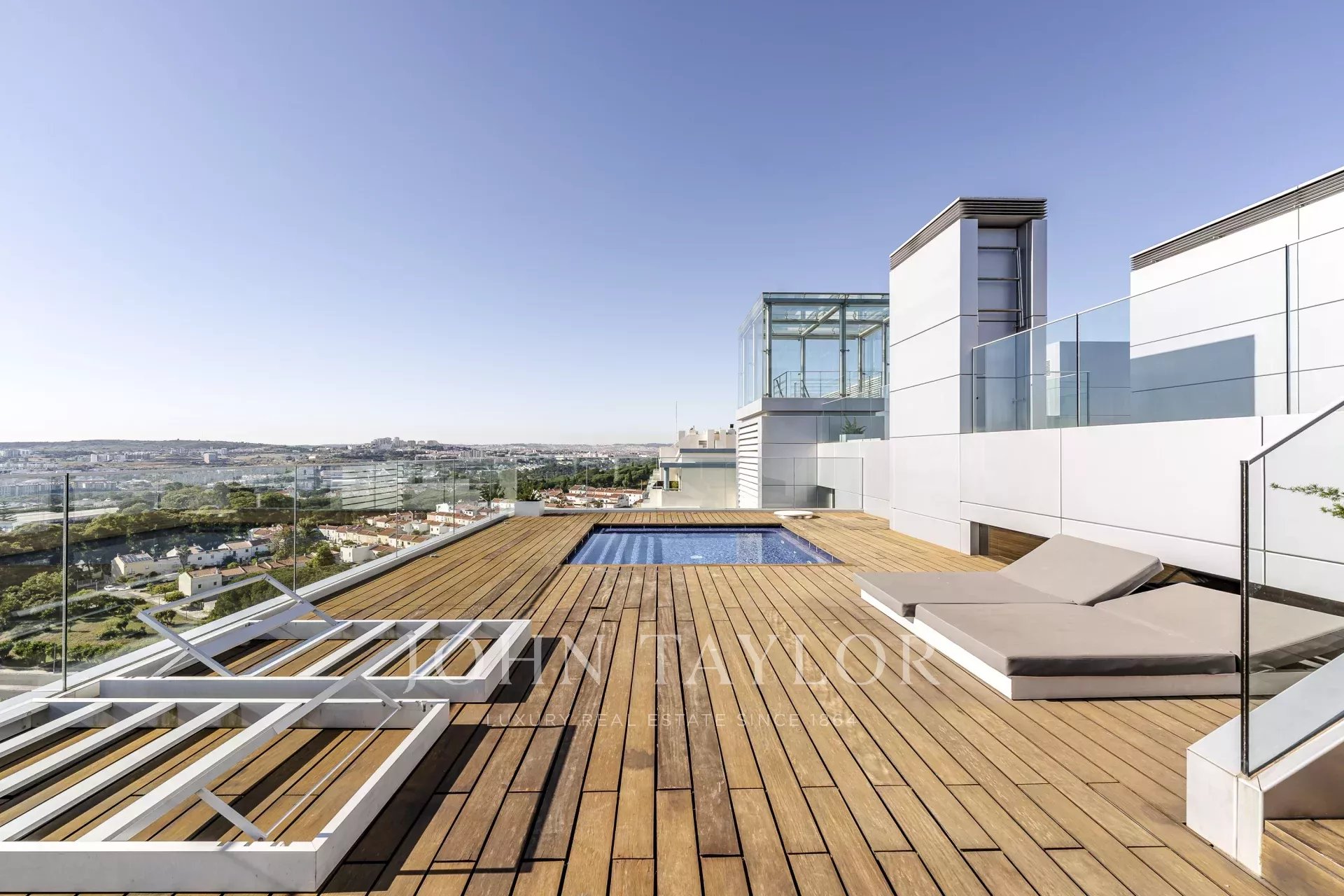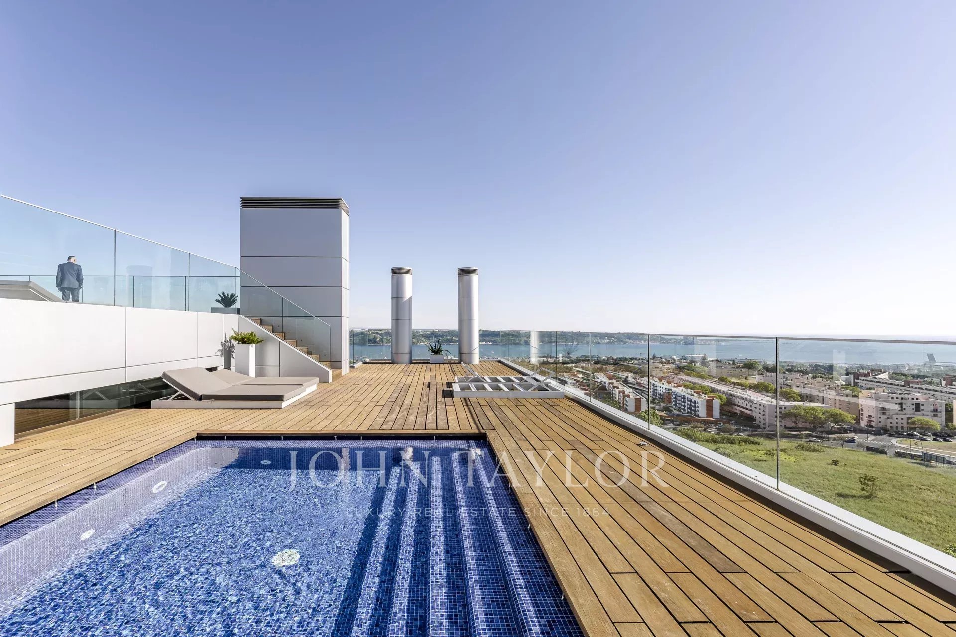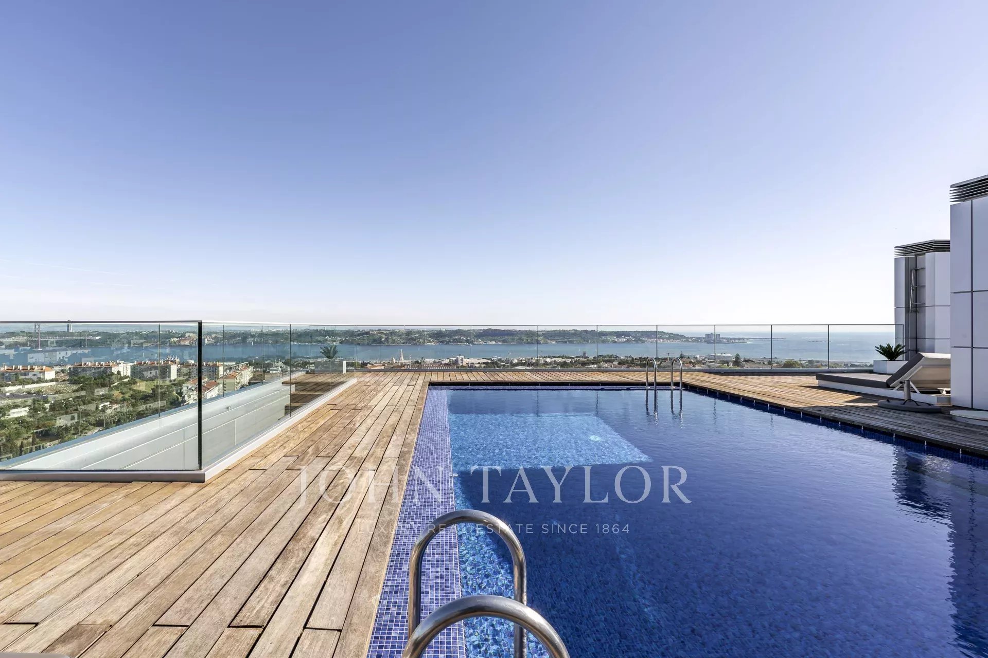 Au dernier étage, avec une vue panoramique sur Lisbonne, vous pourrez profiter de 2 piscines dont l'eau est chauffée par des panneaux solaires, d'un sauna, d'une salle de sport, de vestiaires, d'un bar et d'un espace lounge.