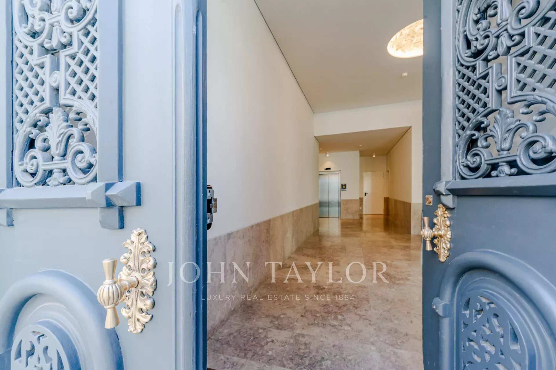 Située à proximité de la Praça Luís I, dans un immeuble prestigieux avec service de conciergerie, la propriété assure sécurité, paix et commodité au cœur de Lisbonne.