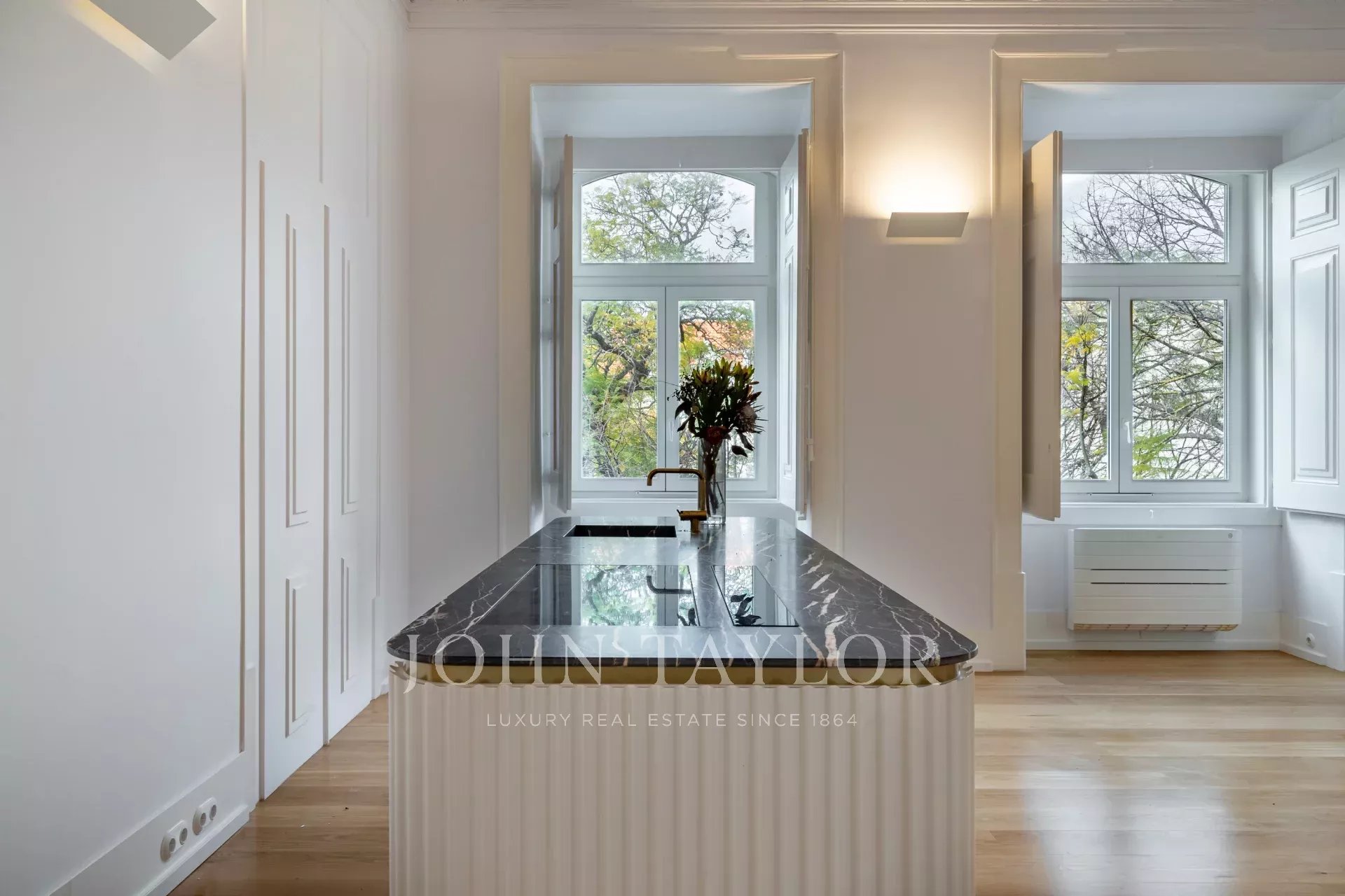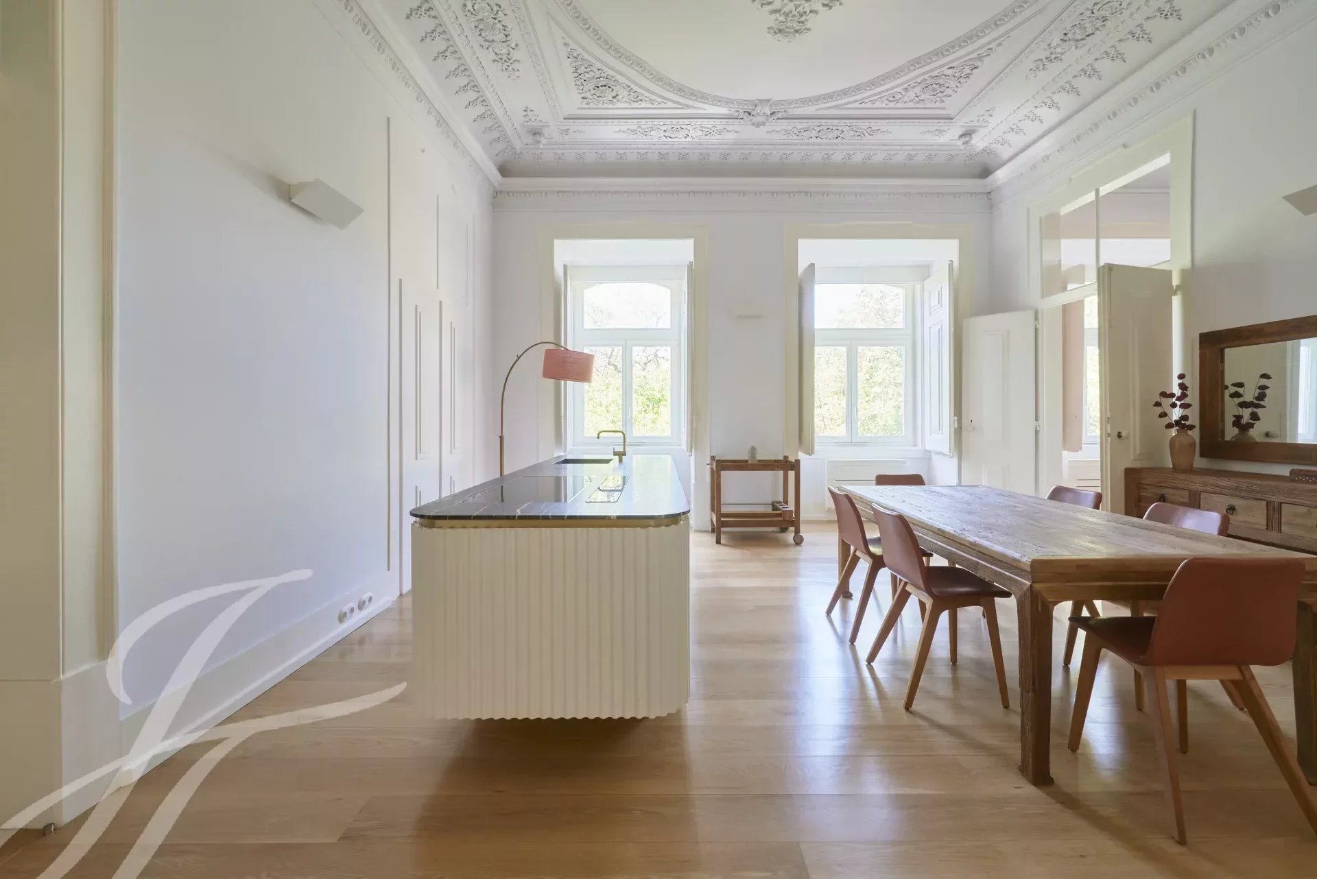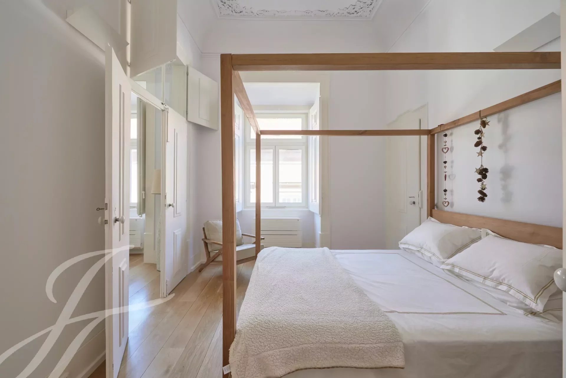 Au 2ème étage d'un charmant immeuble Pombaline, ce magnifique appartement a été entièrement rénové avec des finitions de grande qualité. Avec de hauts plafonds, de grandes entrées, 4 chambres dont 2 en suite, un bureau et une vue imprenable sur une charmante place et un monument historique.