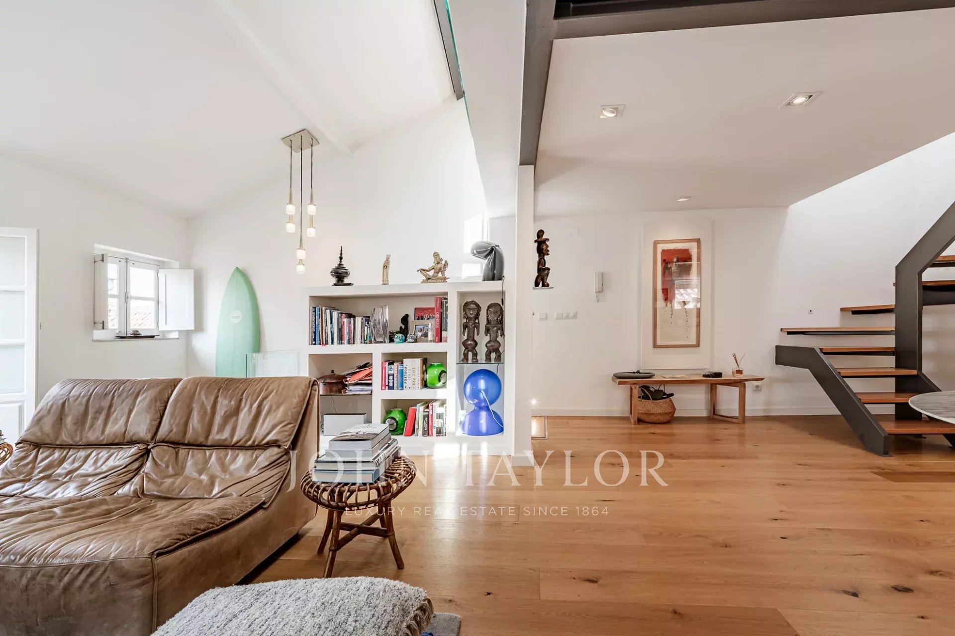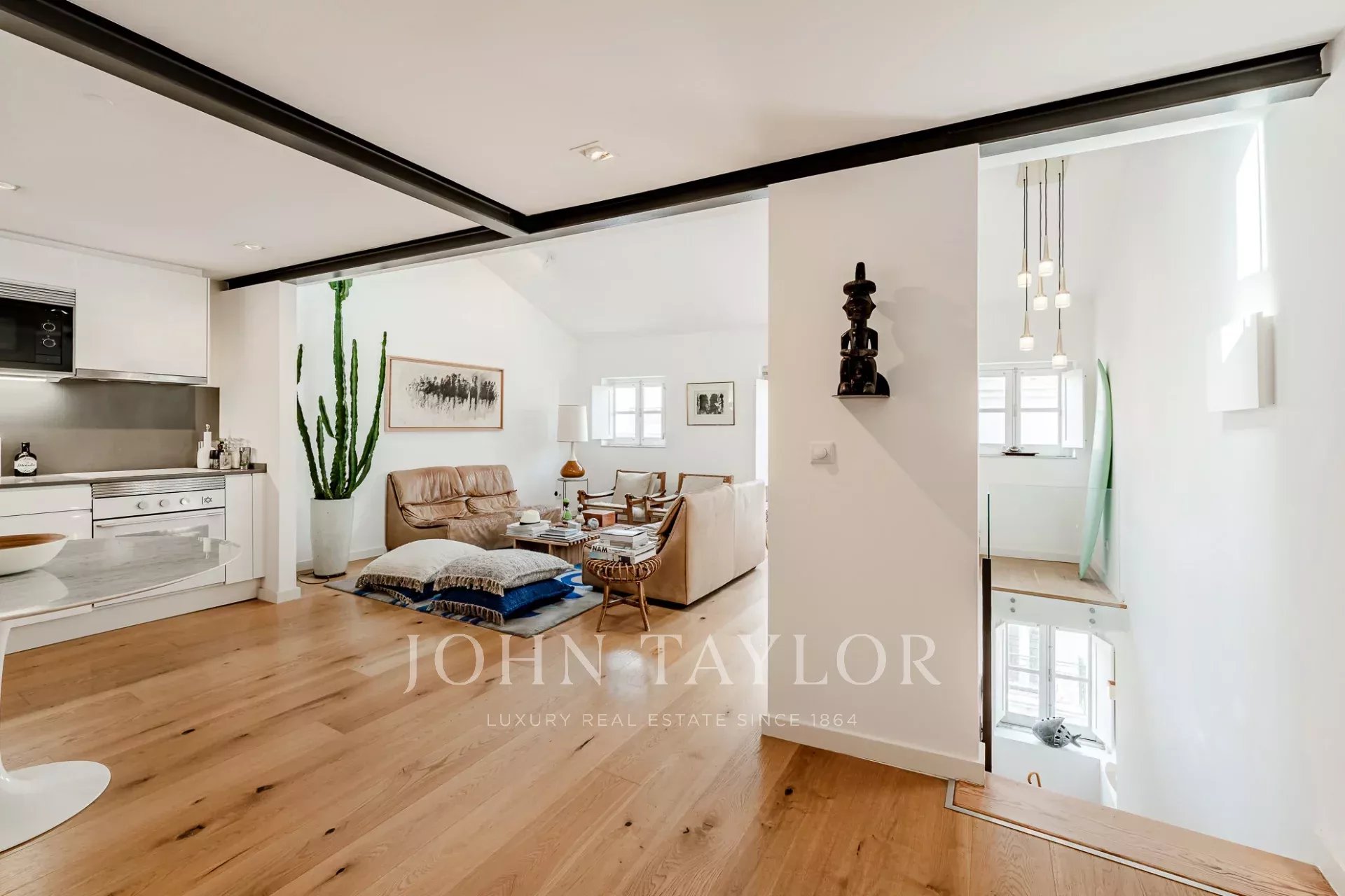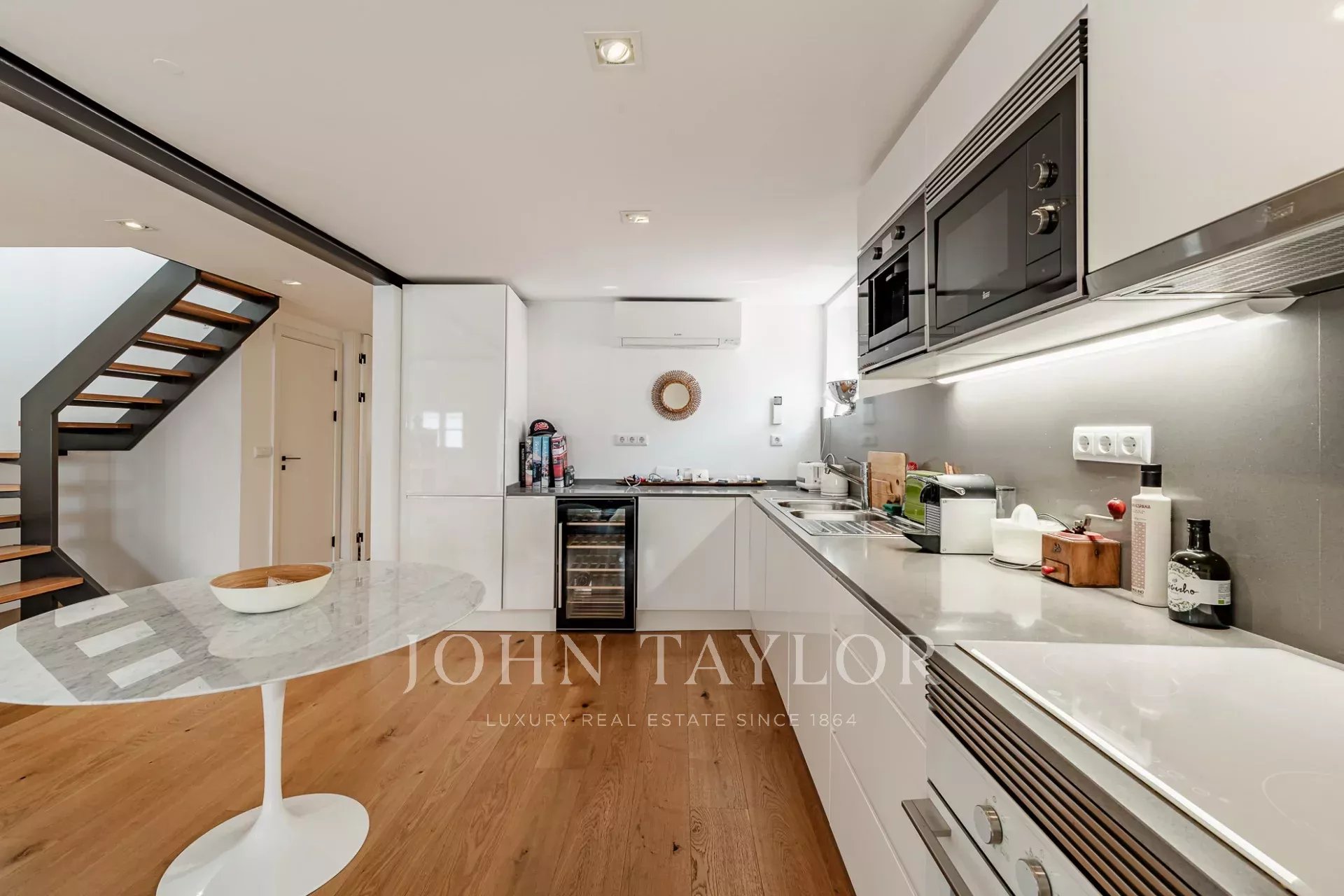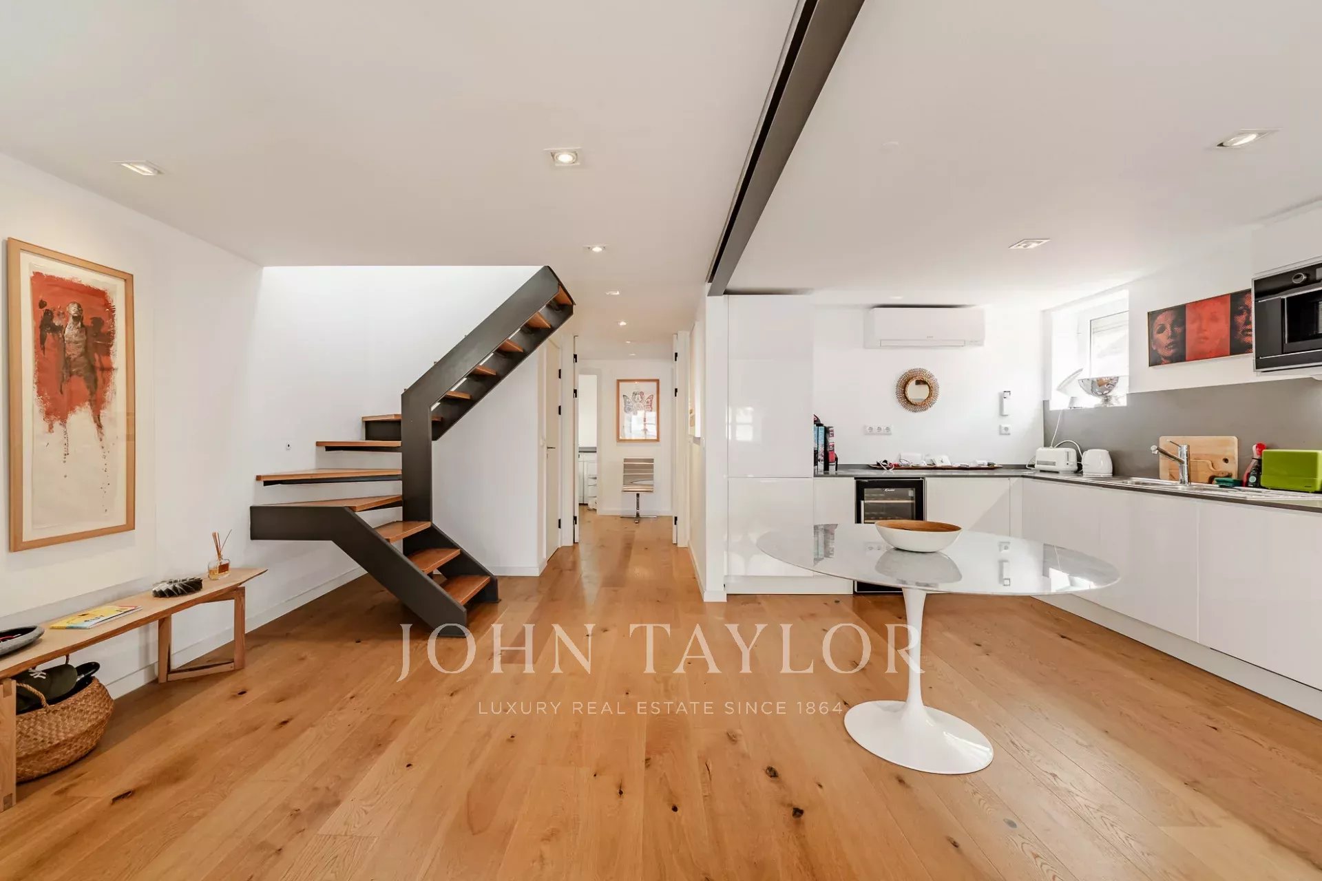 Situé au dernier étage d'un immeuble classique au cœur du quartier de la Bica à Lisbonne, ce duplex entièrement rénové offre deux chambres et un mélange harmonieux de charme historique et d'élégance contemporaine.
