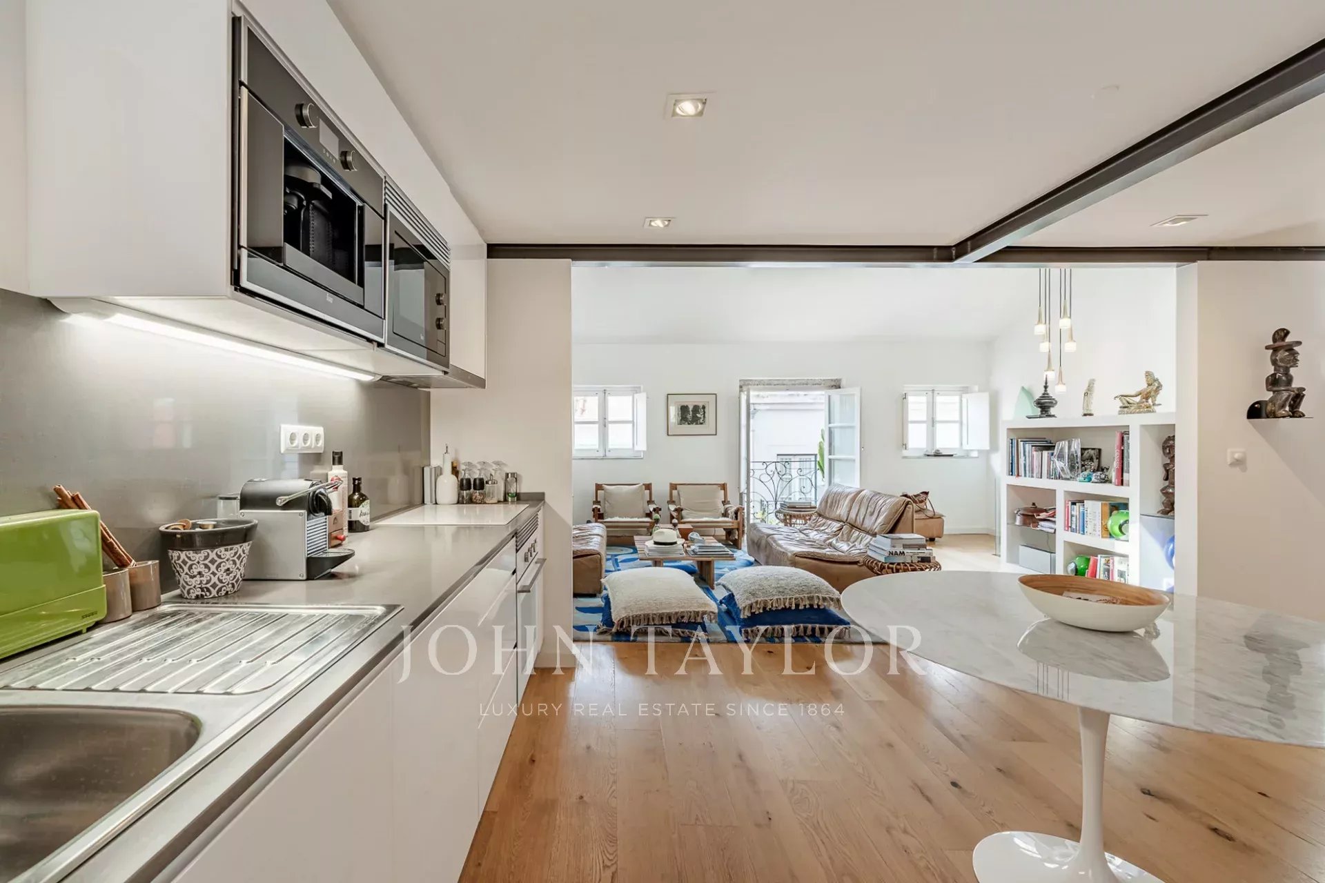 Situé au dernier étage d'un immeuble classique au cœur du quartier de Santa Catarina, ce duplex entièrement rénové offre deux chambres et un mélange harmonieux de charme historique et d'élégance contemporaine.
