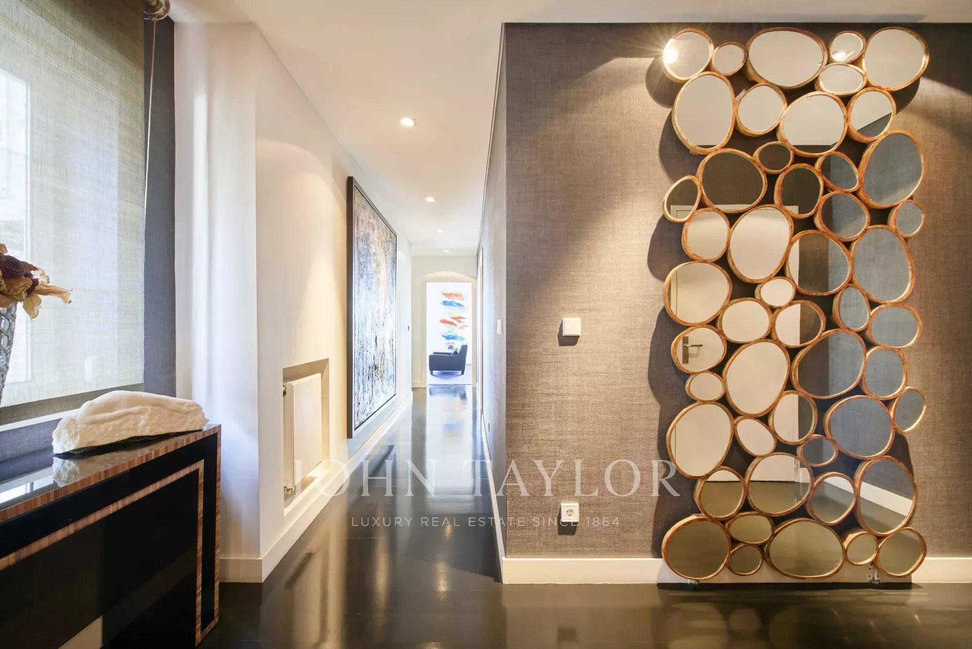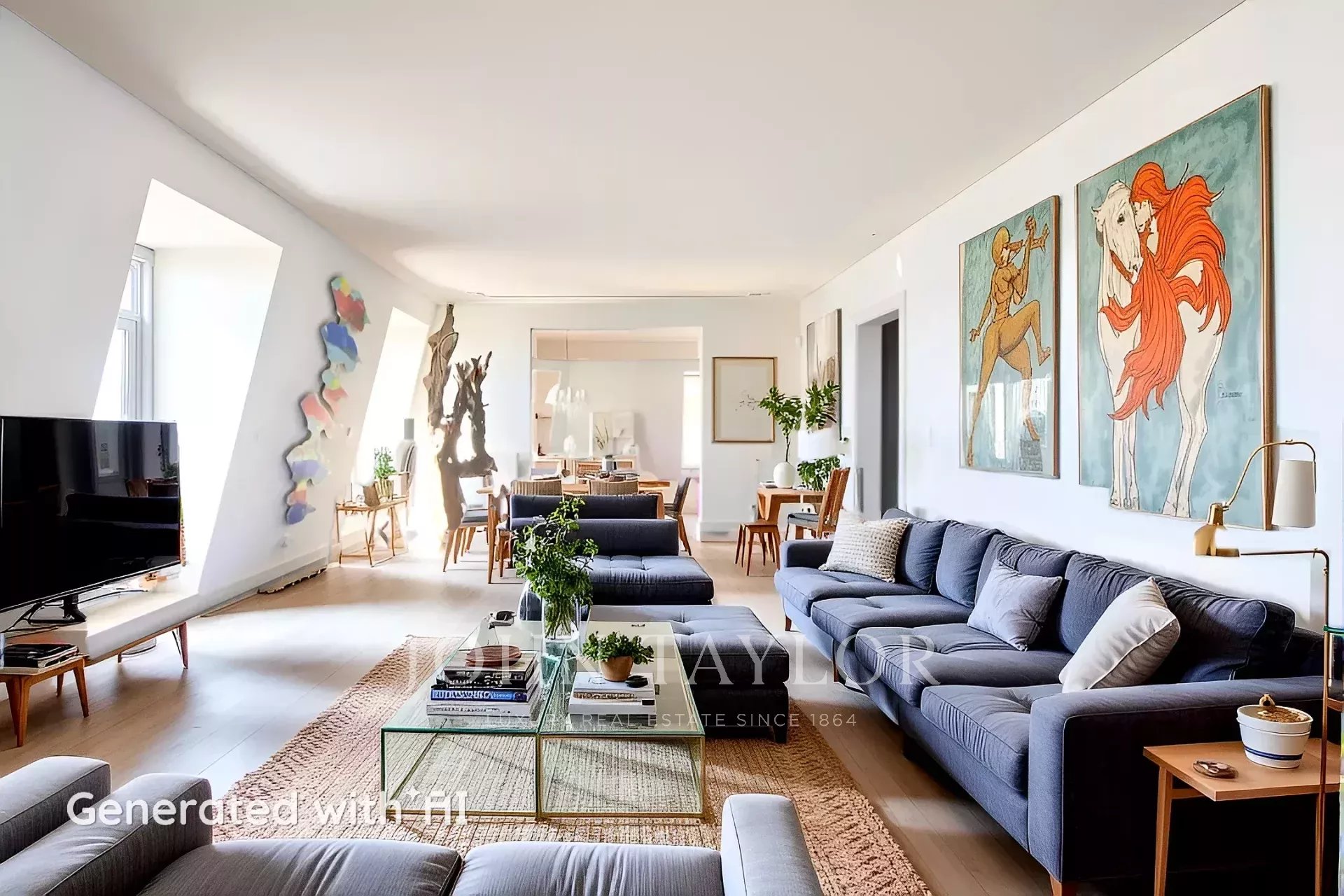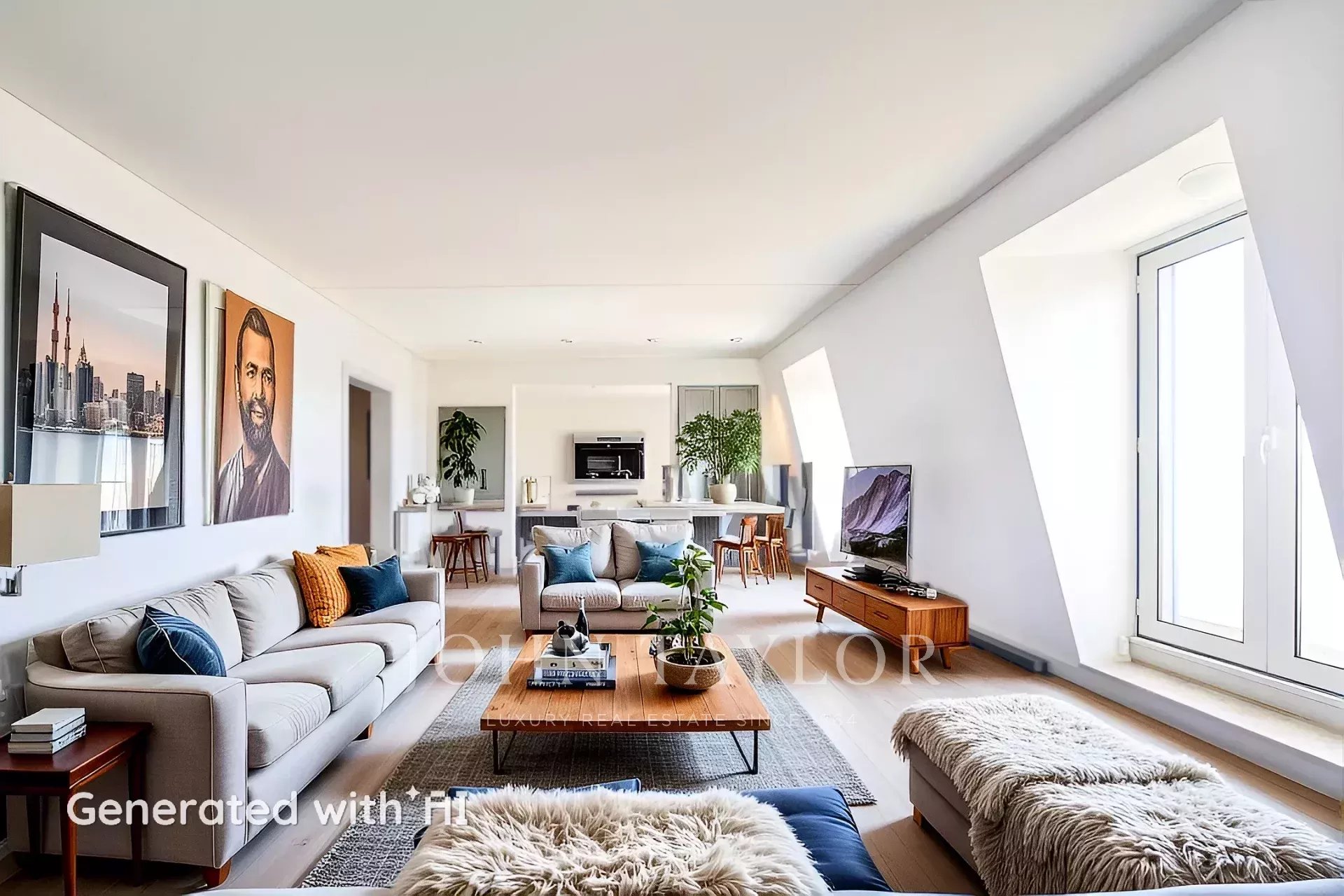 La partie nuit comprend deux chambres en suite, dont une somptueuse suite parentale avec salle de bains vitrée, baignoire sculpturale sous une lucarne et grand dressing. Deux chambres supplémentaires offrent une grande flexibilité, l’une d’elles ayant été aménagée en salle de sport privée. La cuisine est actuellement en cours de réalisation, permettant au futur propriétaire de la personnaliser selon ses goûts.