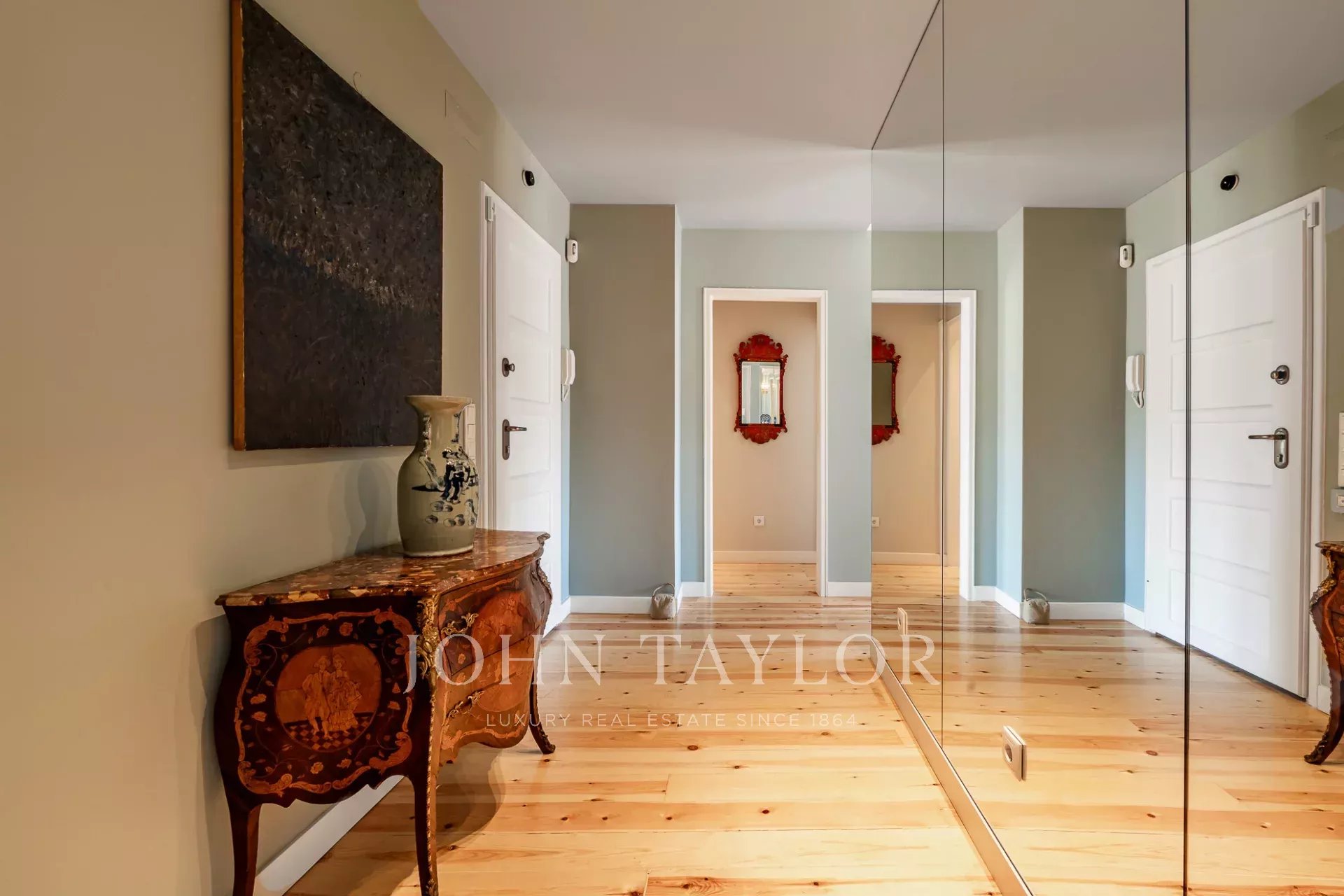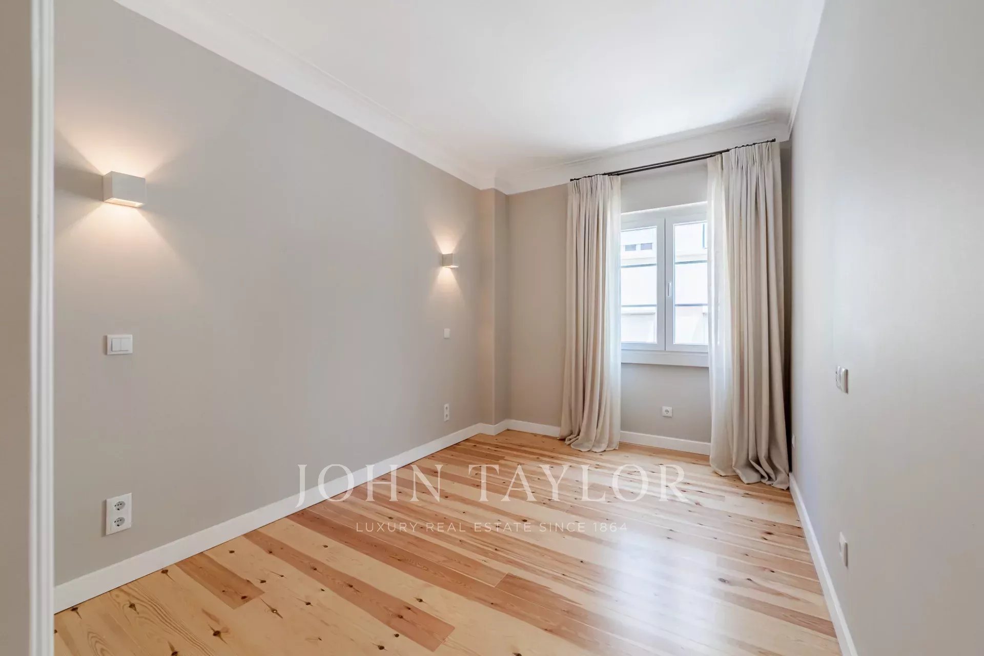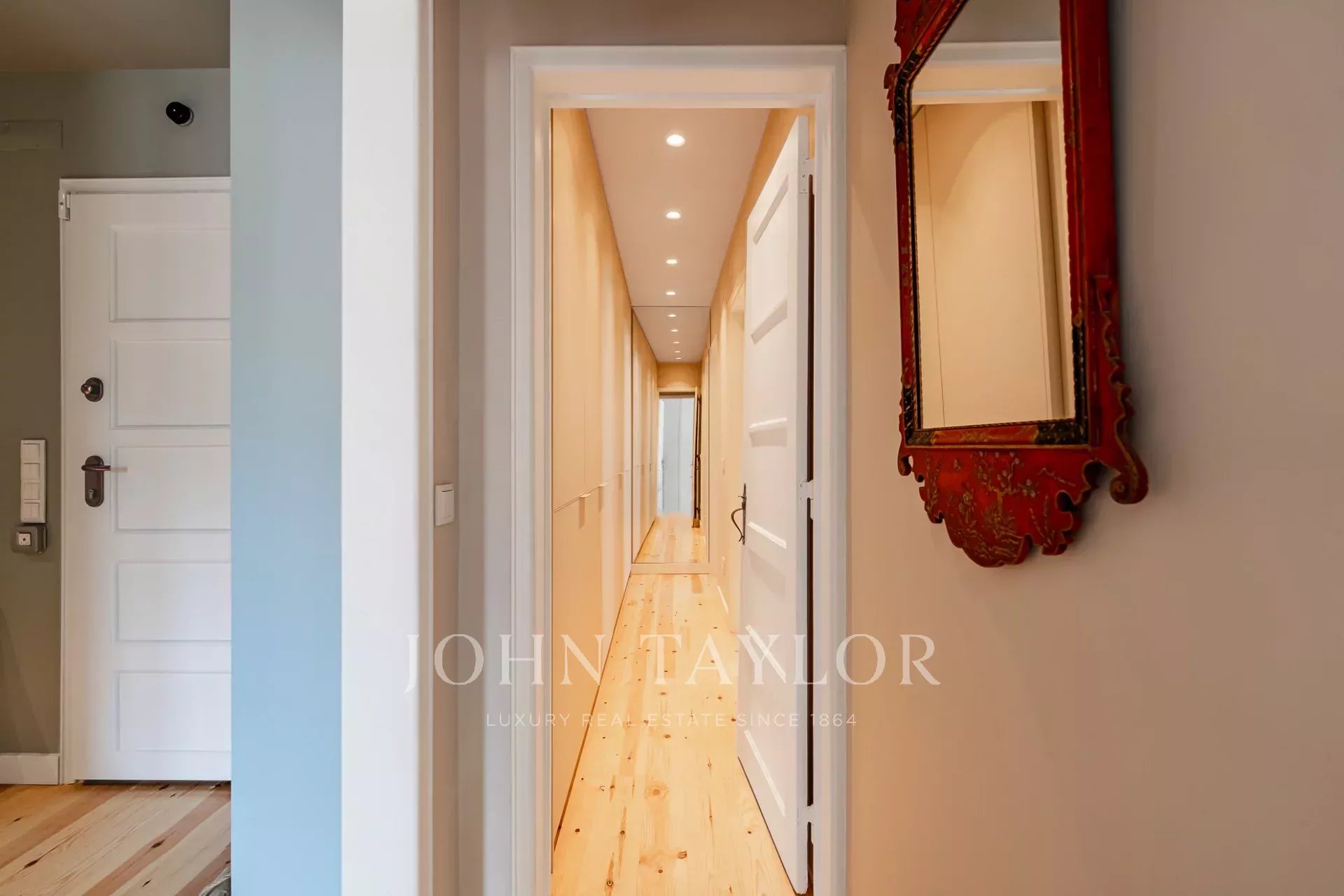 Dans la partie privée, la suite principale se distingue par sa luminosité généreuse, renforcée par trois fenêtres, et dispose d'un dressing et d'une salle de bains en marbre, offrant à la fois confort et intimité. La deuxième suite comprend des armoires encastrées et une salle de bains également en marbre, conservant le même niveau élevé de matériaux et de finitions.