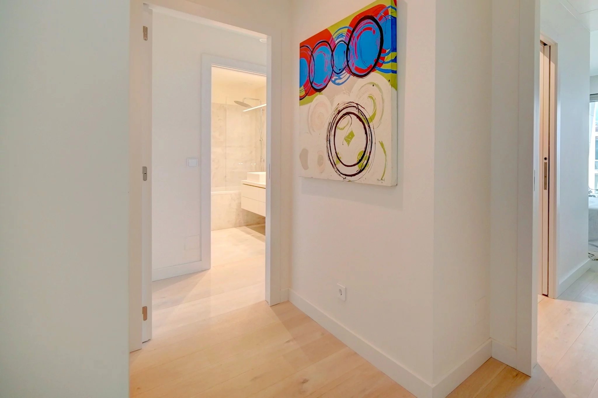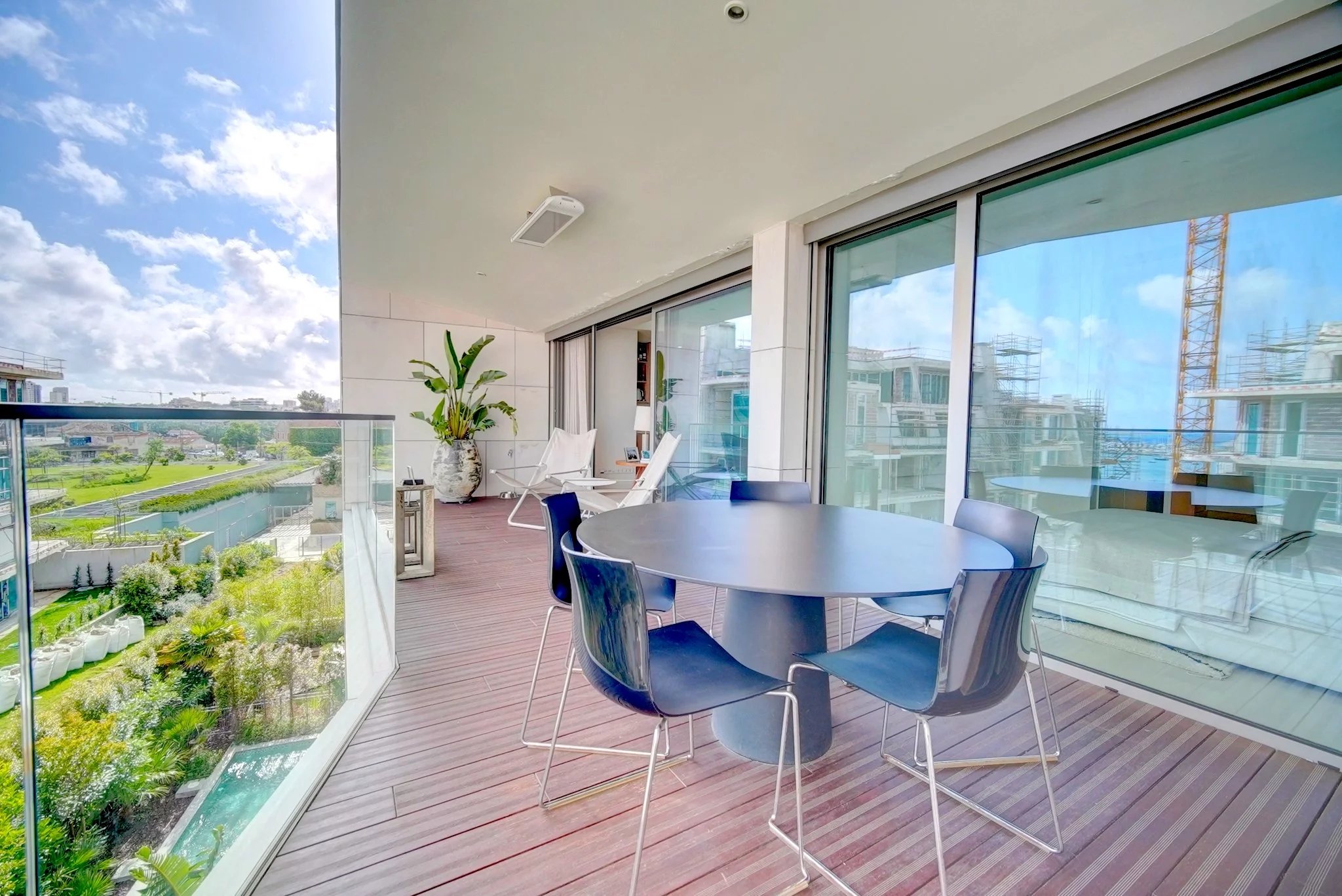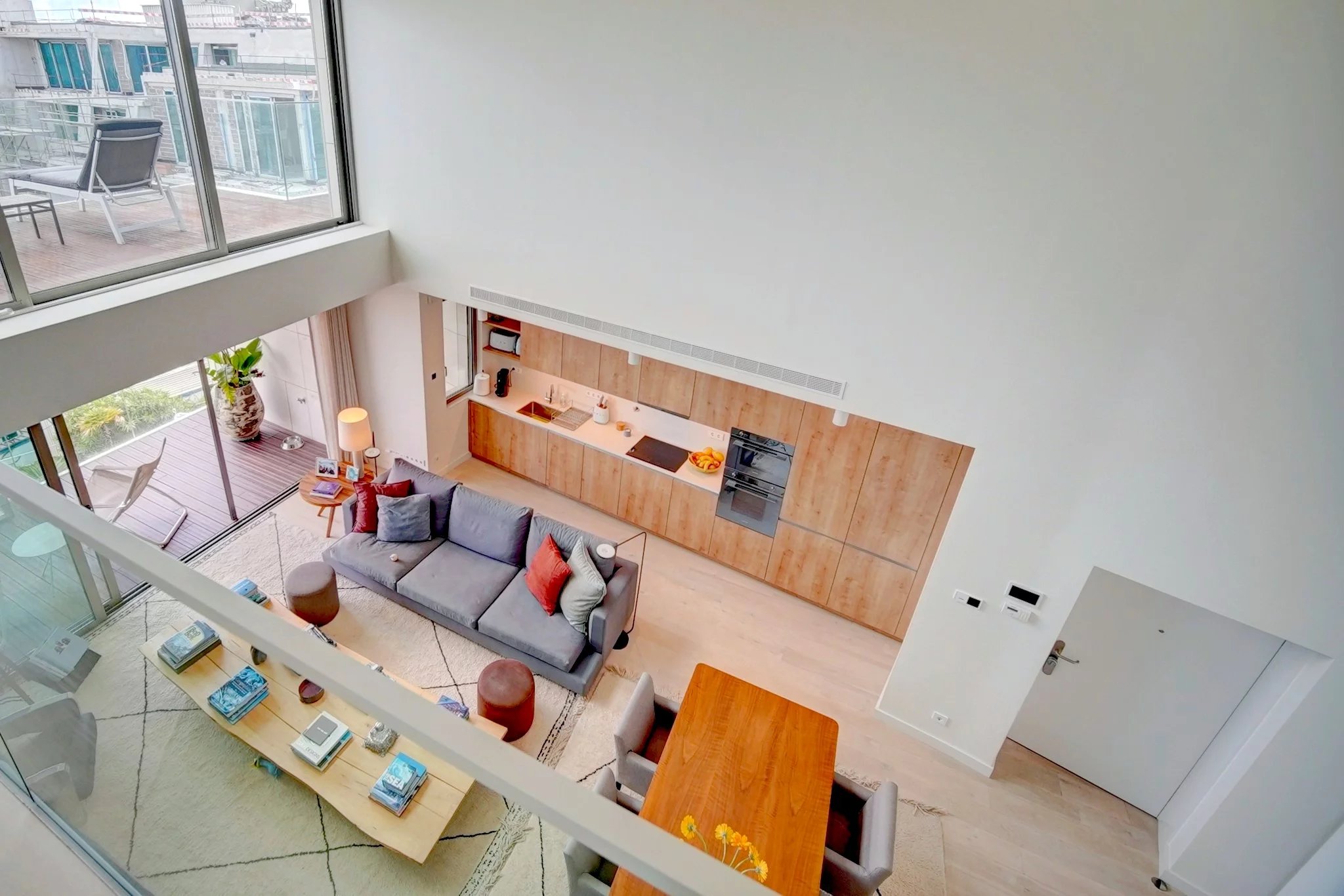 L'appartement offre des espaces intérieurs généreux, trois chambres avec salle de bains, une cuisine moderne entièrement équipée avec des appareils Smeg, et une terrasse spacieuse avec deck et piscine privée, idéale pour profiter des moments de loisir en toute intimité.