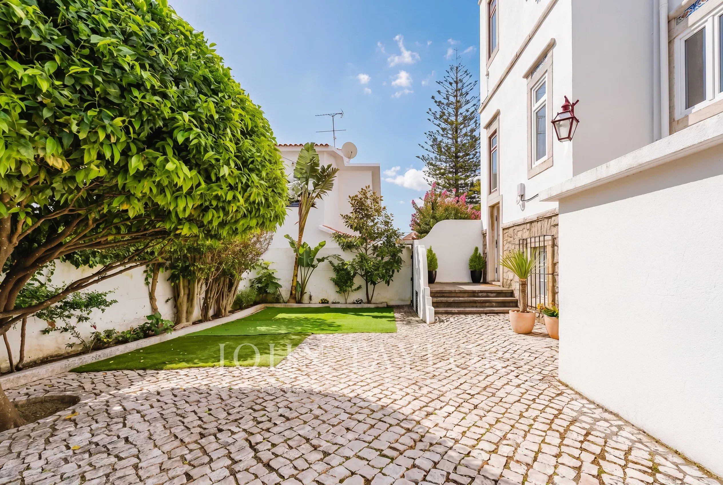 La propriété bénéficie également d'un jardin privé de 74 m² avec un pavage traditionnel portugais, offrant un espace extérieur polyvalent pour les loisirs ou le stationnement.