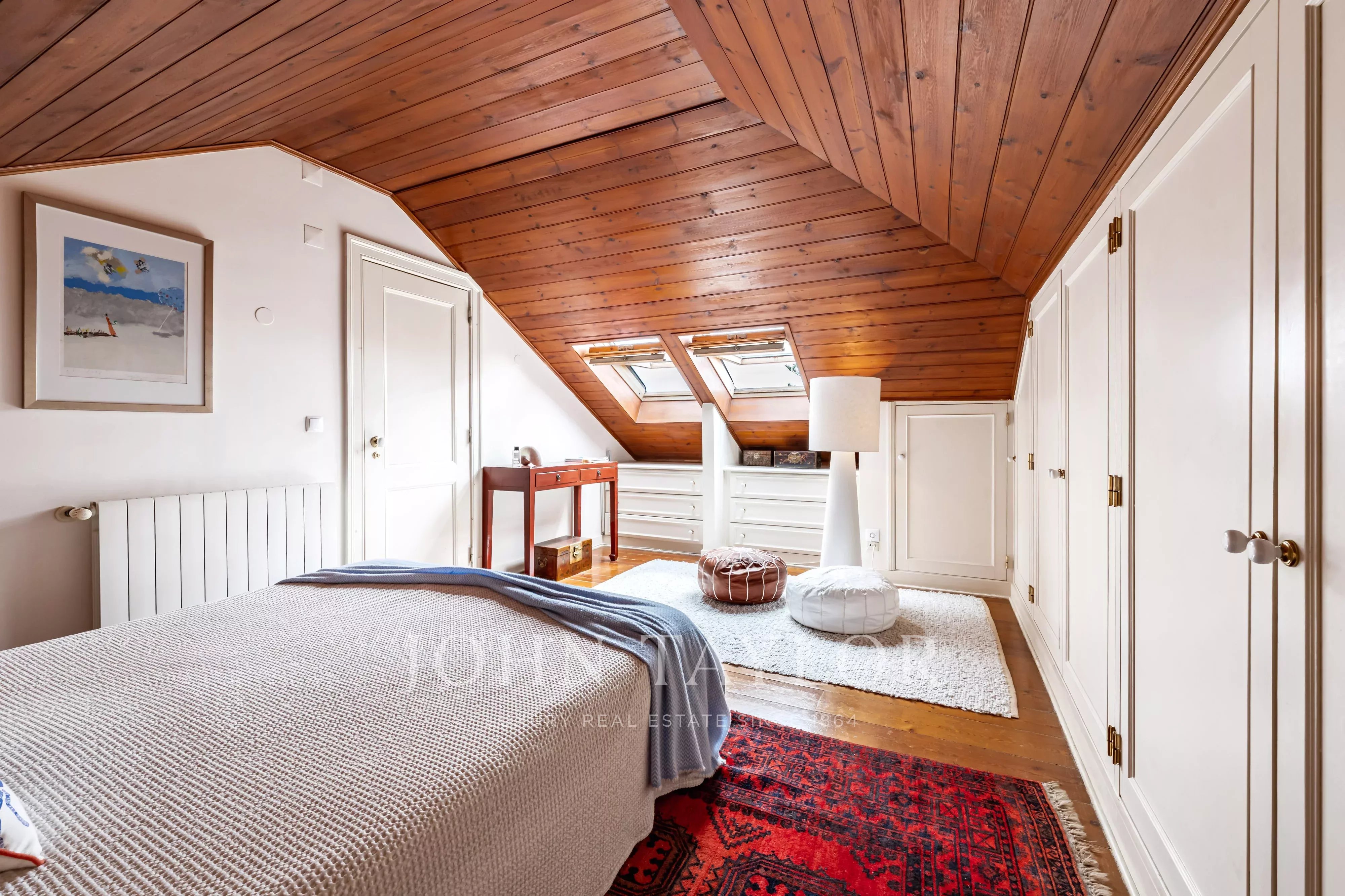 L'étage supérieur, situé dans le grenier, accueille la suite principale avec vue sur la mer, complétée par une pièce supplémentaire pouvant servir de bureau, dressing ou espace pour les invités.
