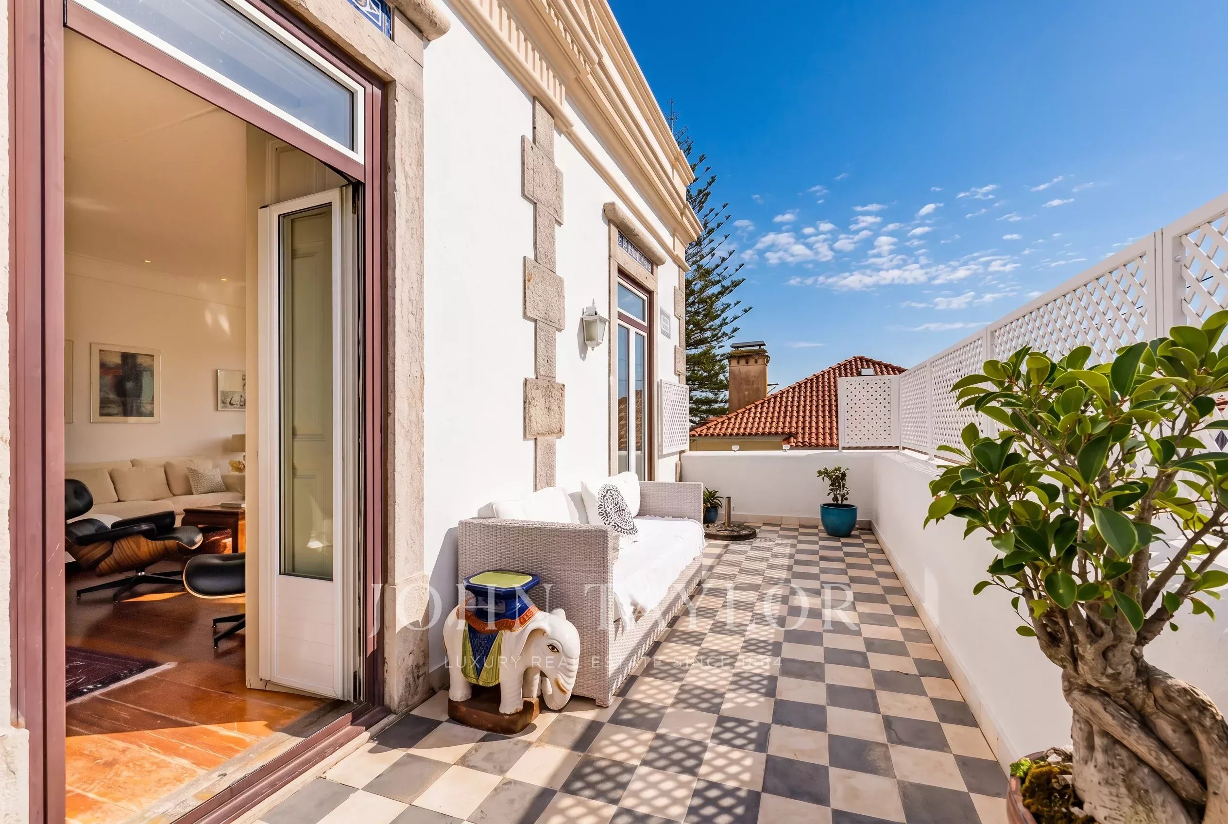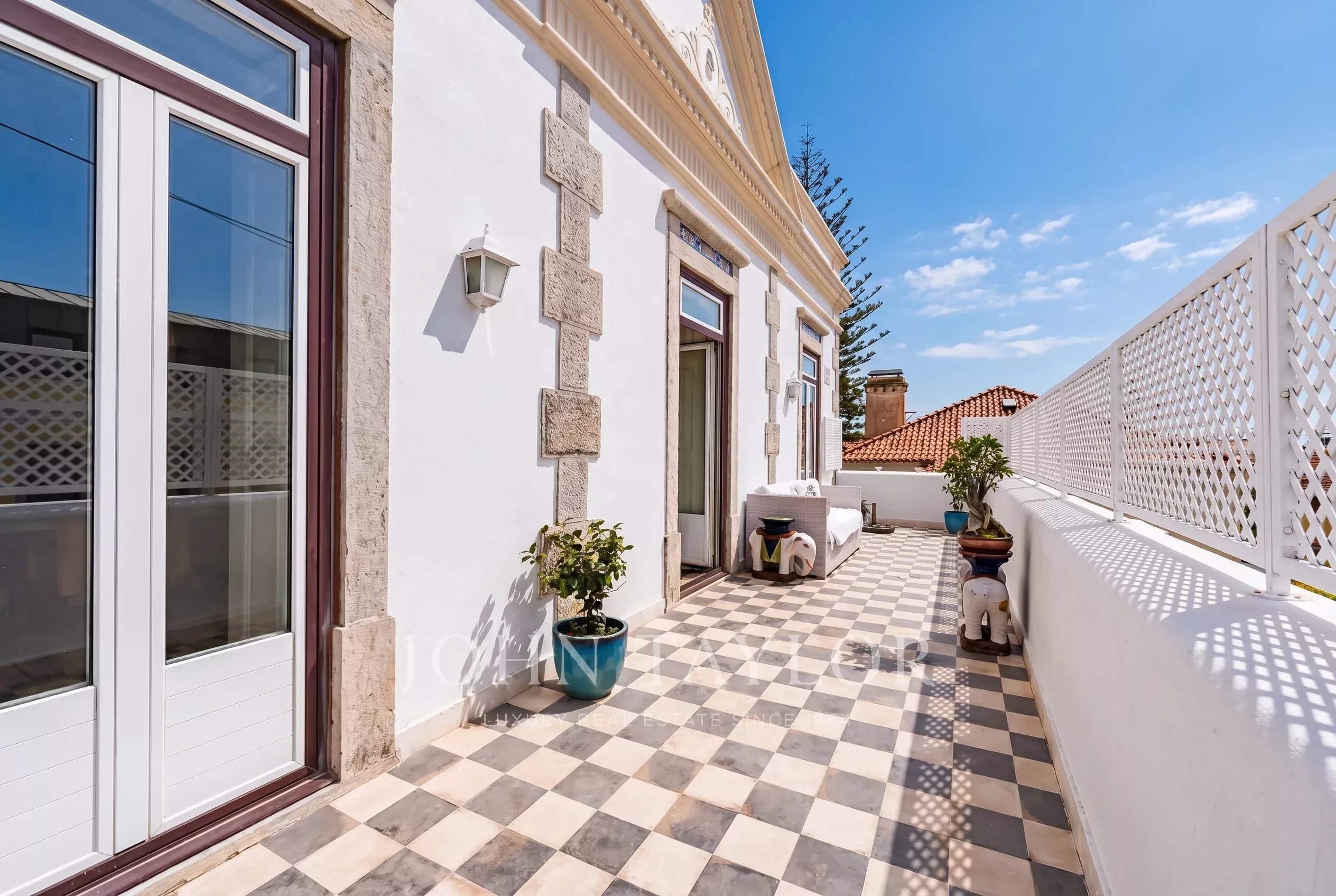 Appartement de quatre chambres au centre d'Estoril, offrant 180 m² de surface brute privée, avec un jardin et un balcon avec vue sur la mer.