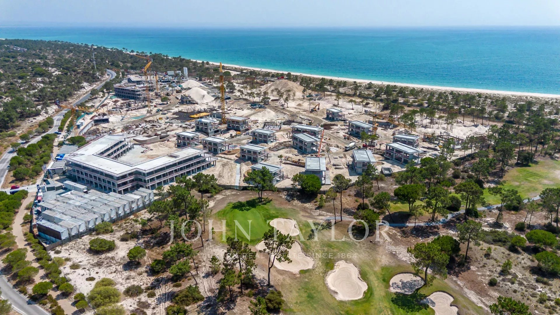 Actuellement en développement, le complexe accueillera un luxueux hôtel 5 étoiles, 37 villas en front de mer et 71 appartements élégants, conçus selon les standards les plus exigeants. Les résidents bénéficieront d’infrastructures haut de gamme : réception ouverte 24h/24, parking souterrain, terrains de padel et de tennis, spa, piscines d’eau salée, club de plage, club enfants, salle de sport et héliport. De plus, l’hôtel se situe à seulement 5 minutes du célèbre golf de Troia.
