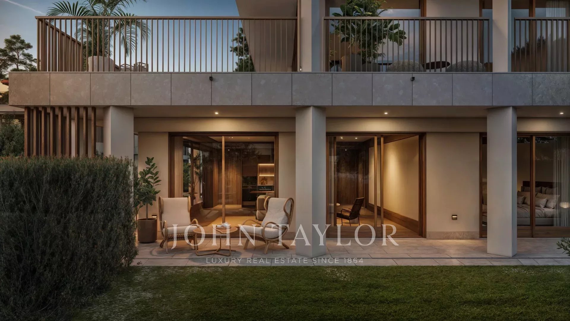L’appartement se compose d’une spacieuse suite parentale avec salle de bains privative, ainsi que d’une pièce supplémentaire, idéale pour un bureau ou un dressing. La cuisine ouverte, entièrement équipée, s’intègre harmonieusement à un vaste salon-salle à manger qui s’ouvre sur un généreux balcon et un jardin privatif. L’appartement dispose également d’une salle de bains commune et d’un espace polyvalent pouvant servir de cellier ou de buanderie.