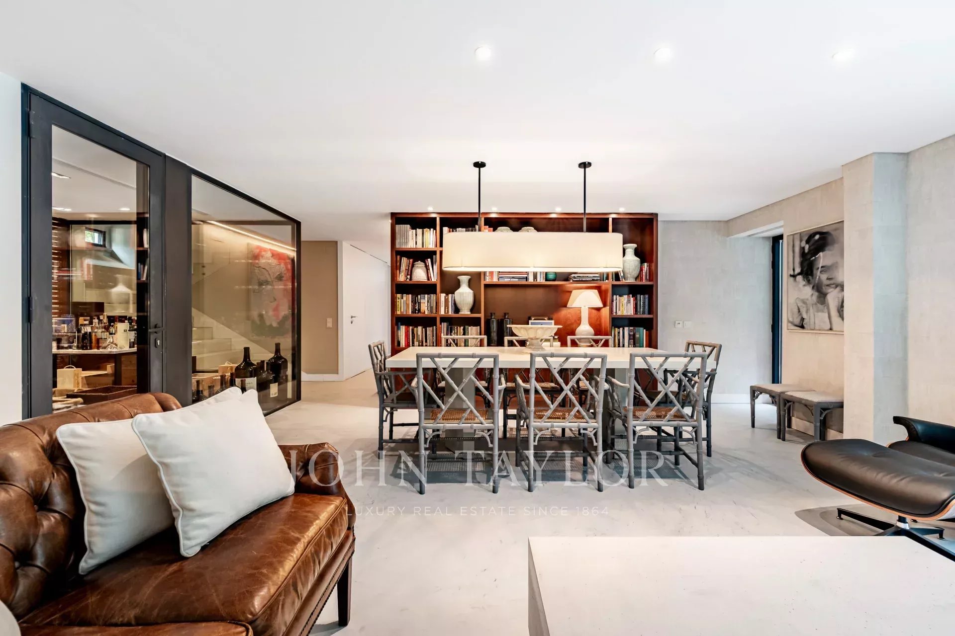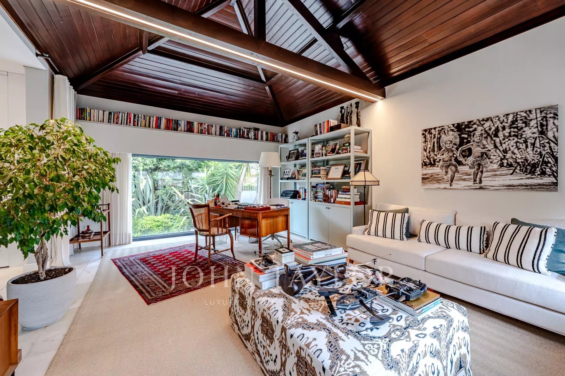 Le rez-de-jardin abrite une vaste pièce polyvalente, une cave à vin climatisée, une cuisine de soutien, deux suites privatives, ainsi qu’une buanderie avec espace de rangement et salle de bain. La maison est également équipée d’un ascenseur desservant tous les étages, du chauffage central, de planchers chauffants et de panneaux solaires, garantissant un confort optimal et une excellente performance énergétique.