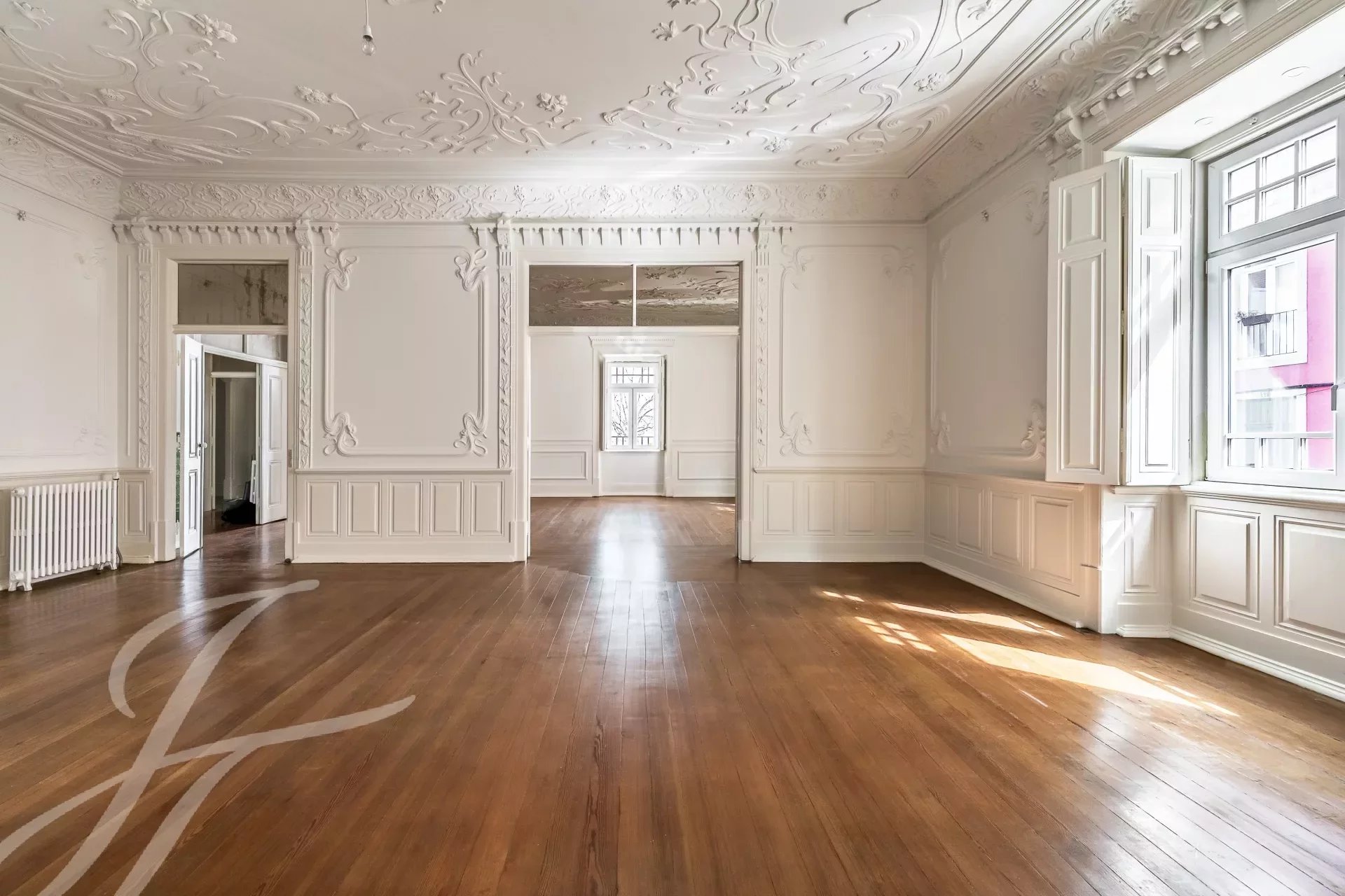T2, avec GPA 189m2 et 31m2 de terrasse, avec 2 chambres, 2 salles de bain, salle à manger, cuisine et un bureau avec une vue à 360 degrés sur la ville de Lisbonne.