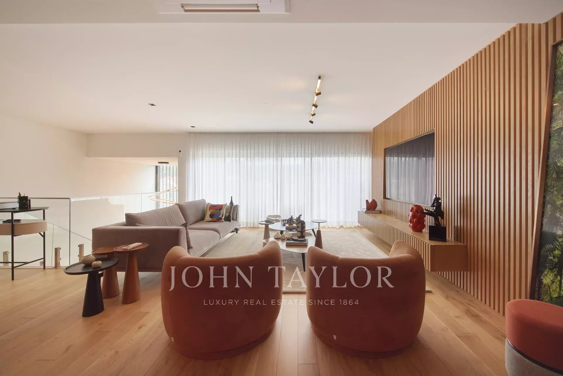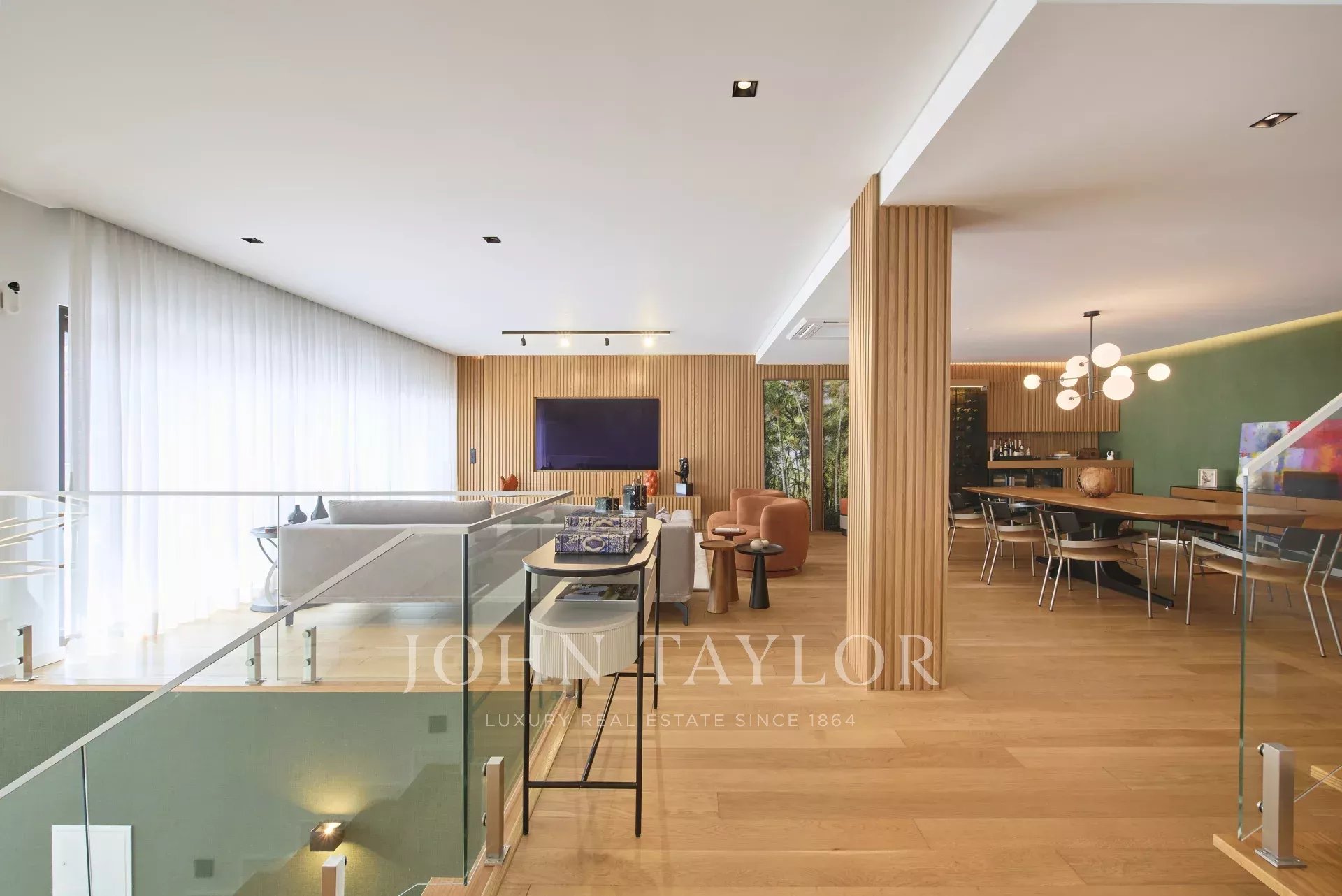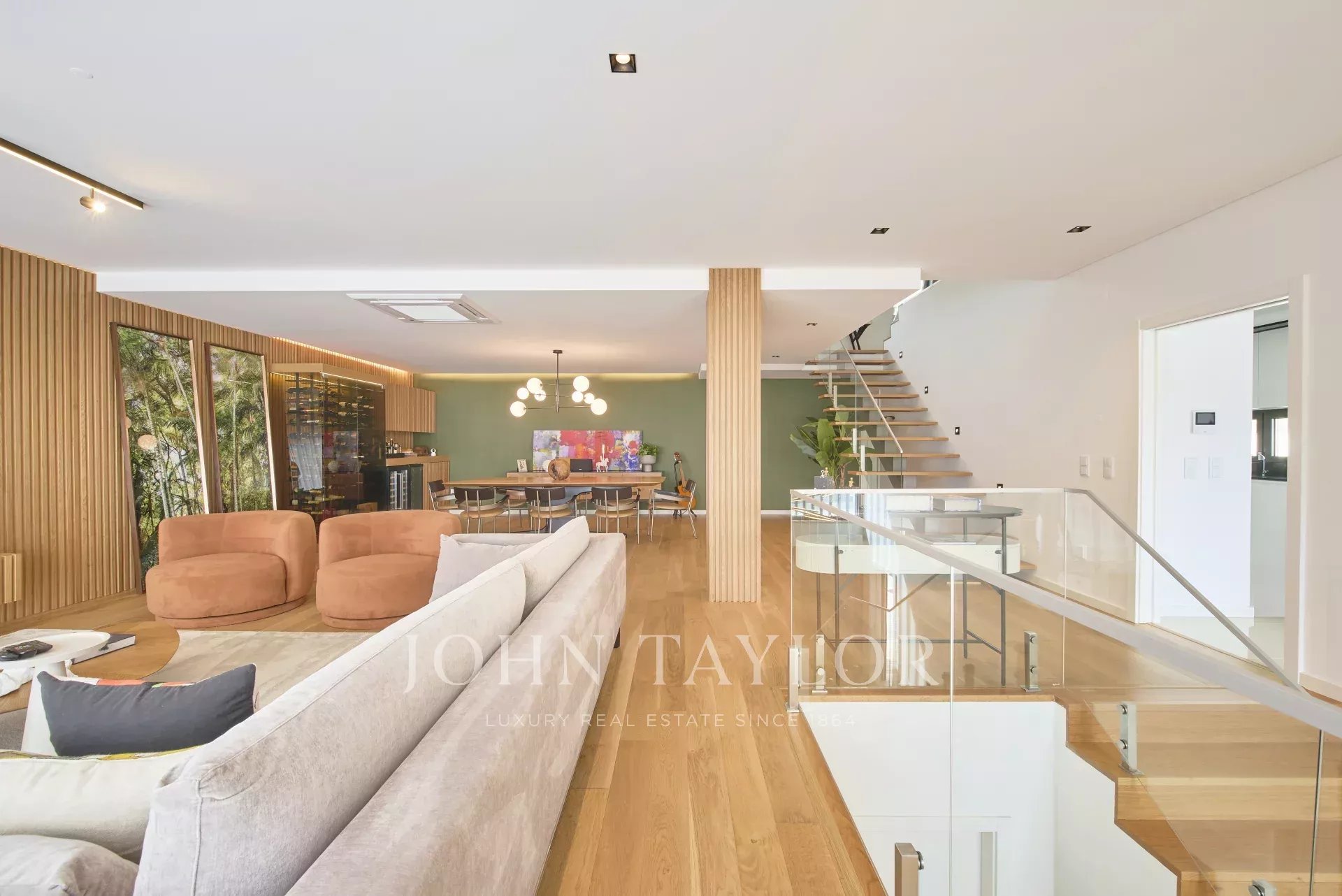 Nichée dans un prestigieux condominium privé à Estoril, cette résidence moderne sur trois niveaux offre 445 m² de surface construite, conçue avec élégance contemporaine et des matériaux haut de gamme.