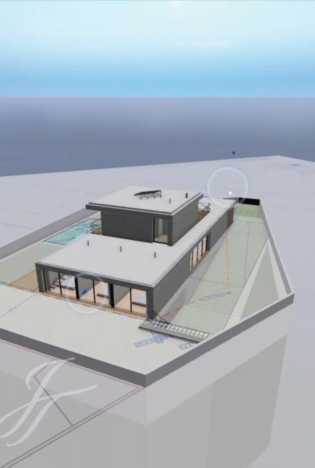 Insérée dans un terrain de 930 m2, cette maison de 530 m2 de surface brute de construction est distribuée sur 3 étages qui bénéficient d'une excellente exposition au soleil, assurant une atmosphère lumineuse et accueillante tout au long de la journée.