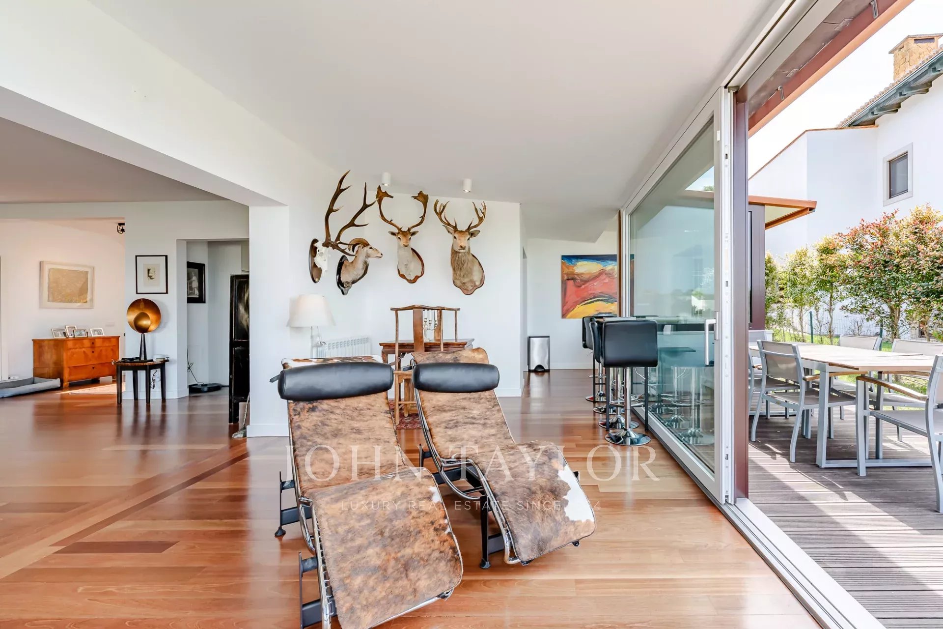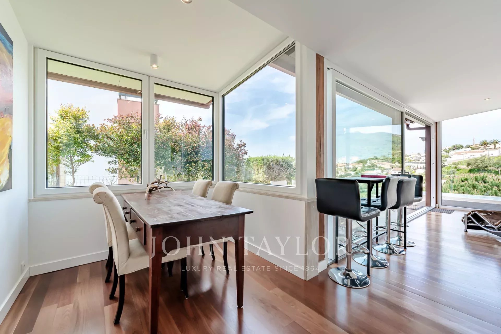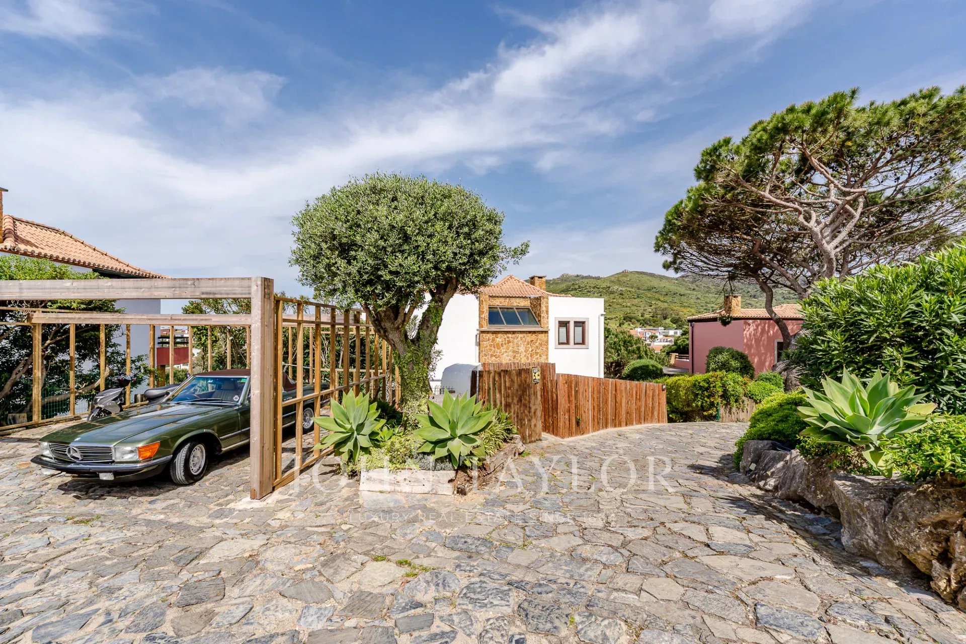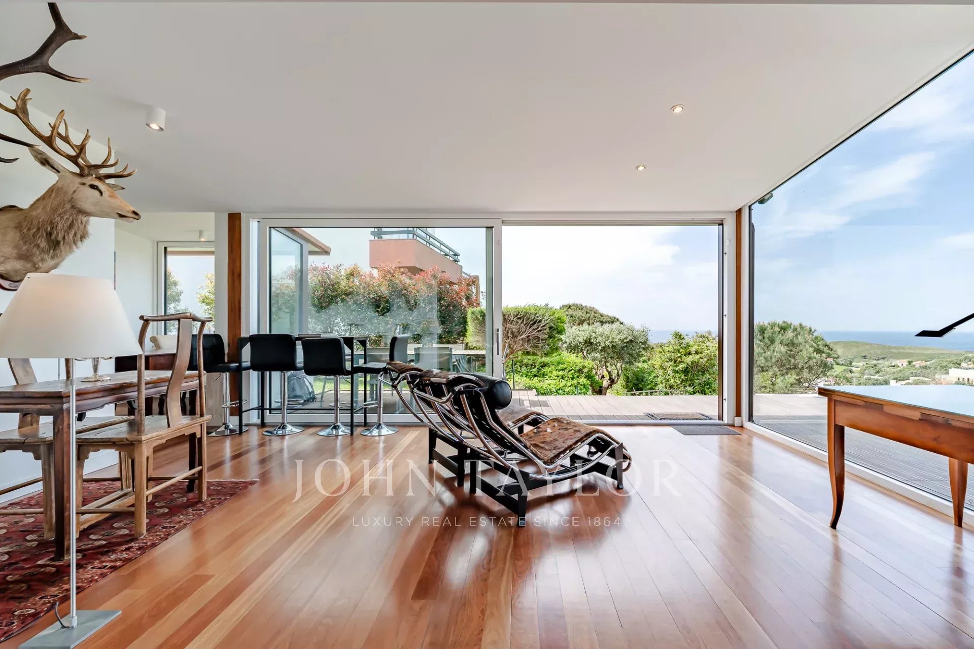 Située dans une copropriété privée sécurisée près de la baie de Guincho, cette villa offre des vues ininterrompues sur l'océan Atlantique depuis de nombreuses pièces et espaces extérieurs. Elle se distingue par sa position surélevée et ses perspectives ouvertes, la mer étant visible depuis les espaces de vie, la terrasse et la piscine privée.