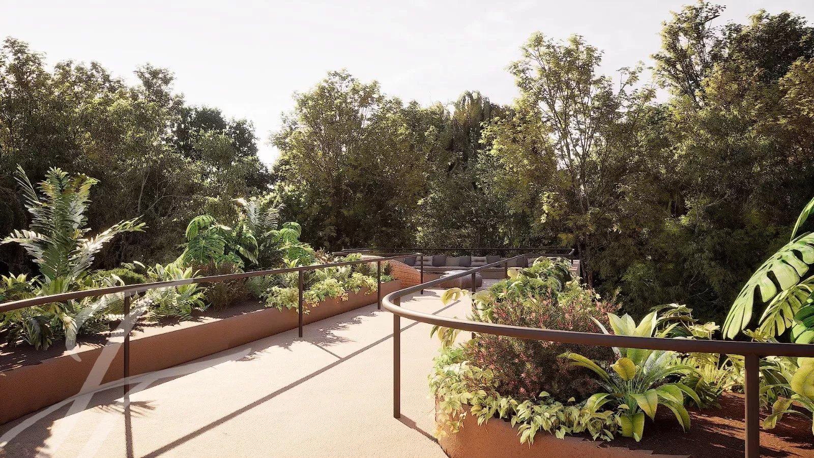 Sa forme, composée de deux structures ovales reliées entre elles, évoque le symbole de l'infini et de la continuité, créant un impact visuel saisissant, surtout vu d'en haut. Les façades, fabriquées à partir de béton imprimé en 3D, allient technologie de pointe et expression artistique, pour une esthétique audacieuse et moderne.