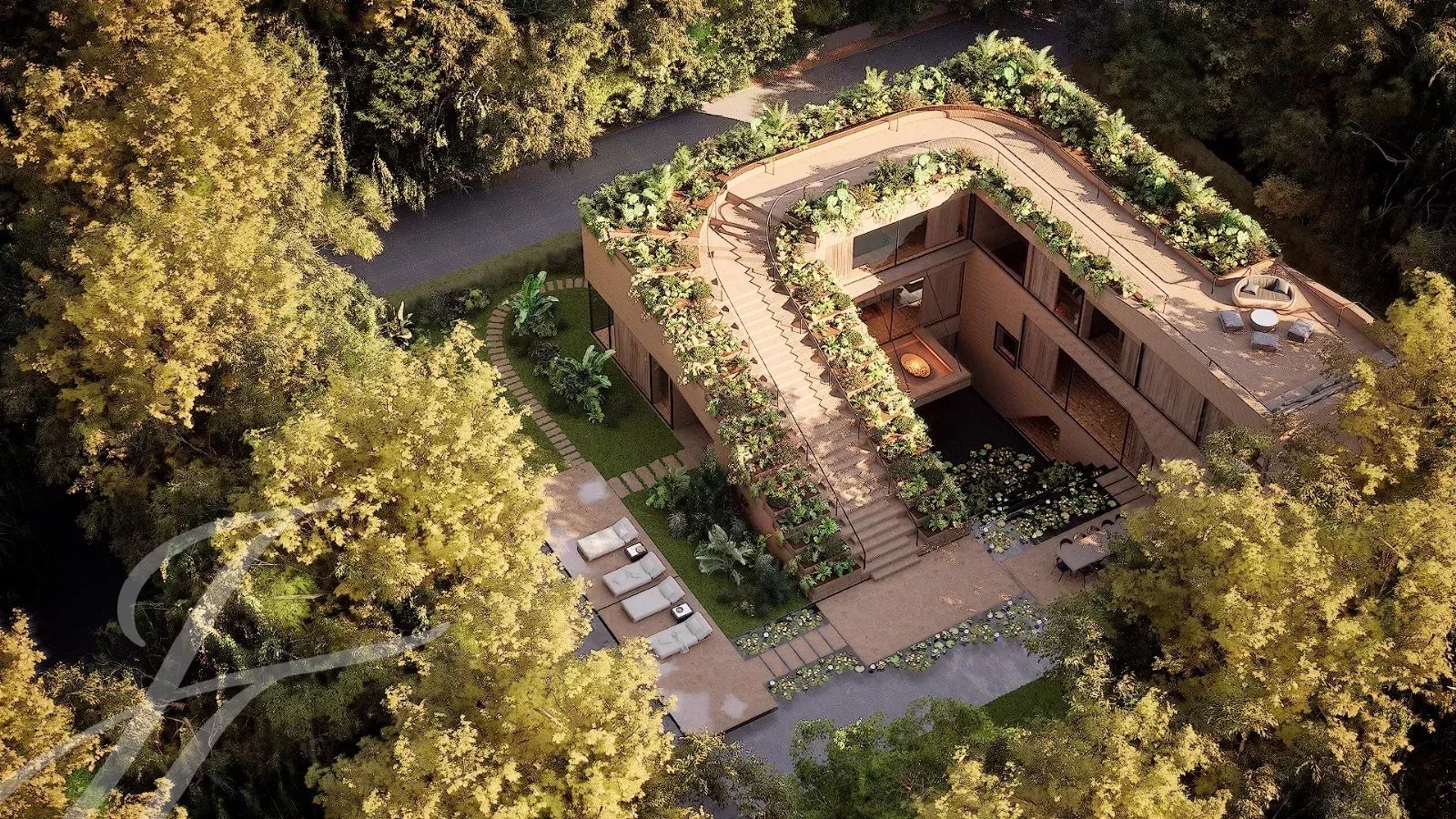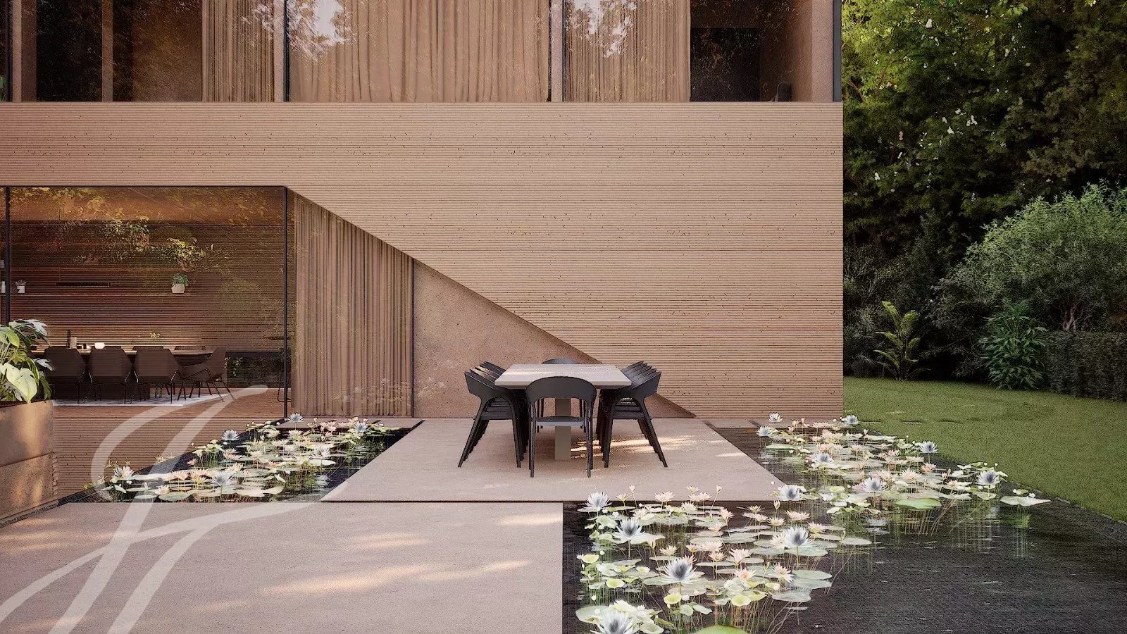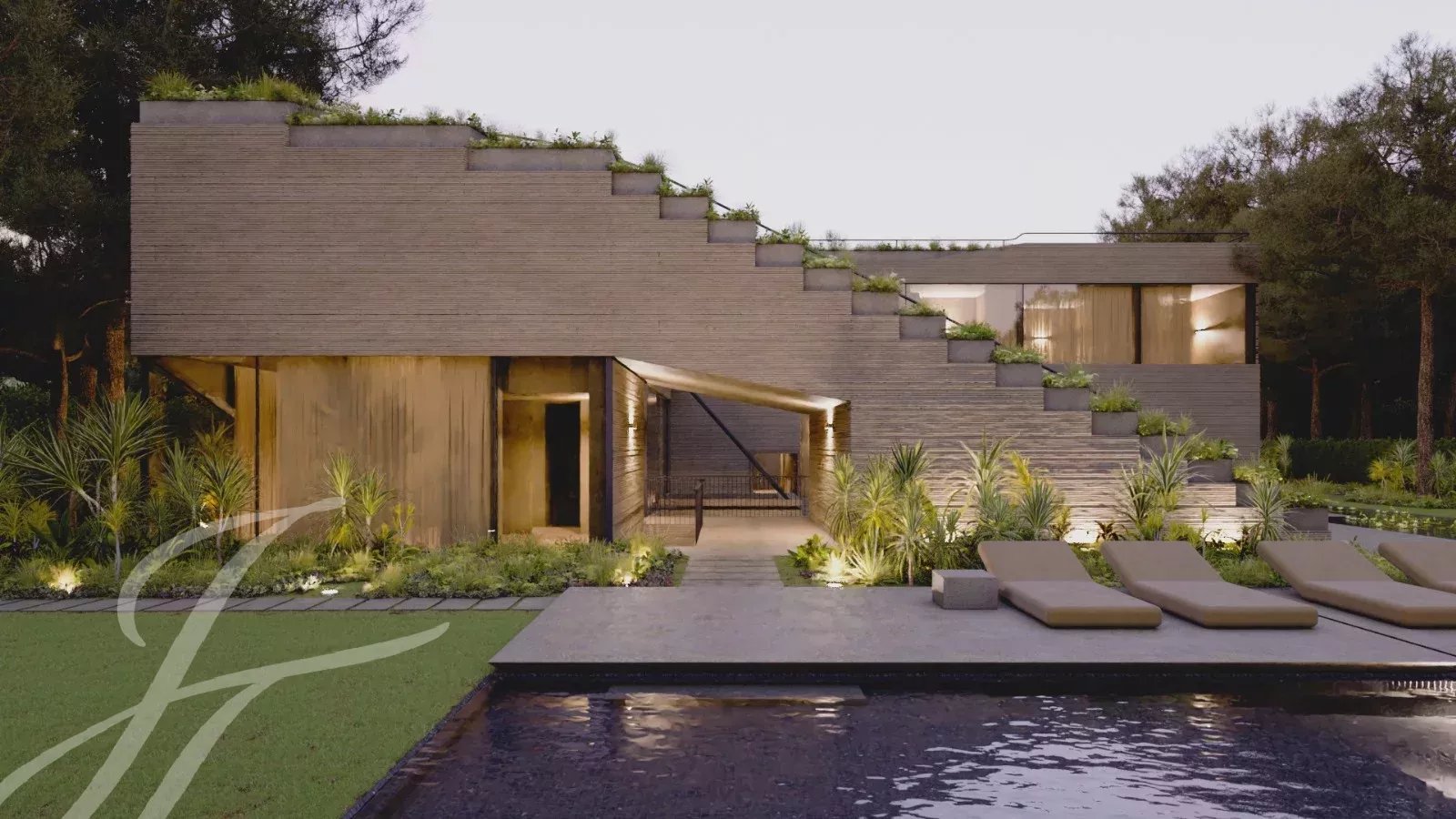 L'extérieur de la "Maison infinie" est une véritable oasis, avec un jardin paysager entourant la piscine et un toit-terrasse panoramique offrant une vue imprenable sur la nature environnante.