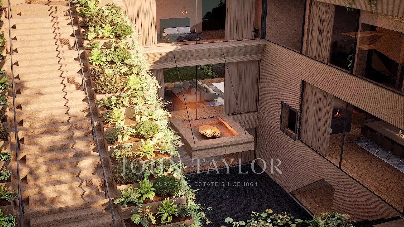 Située sur un terrain de 1 630 m², cette propriété présente une surface de construction totale de 1 193 m² et constitue un véritable chef-d'œuvre de design contemporain, alliant innovation, fonctionnalité et intégration transparente à la nature.