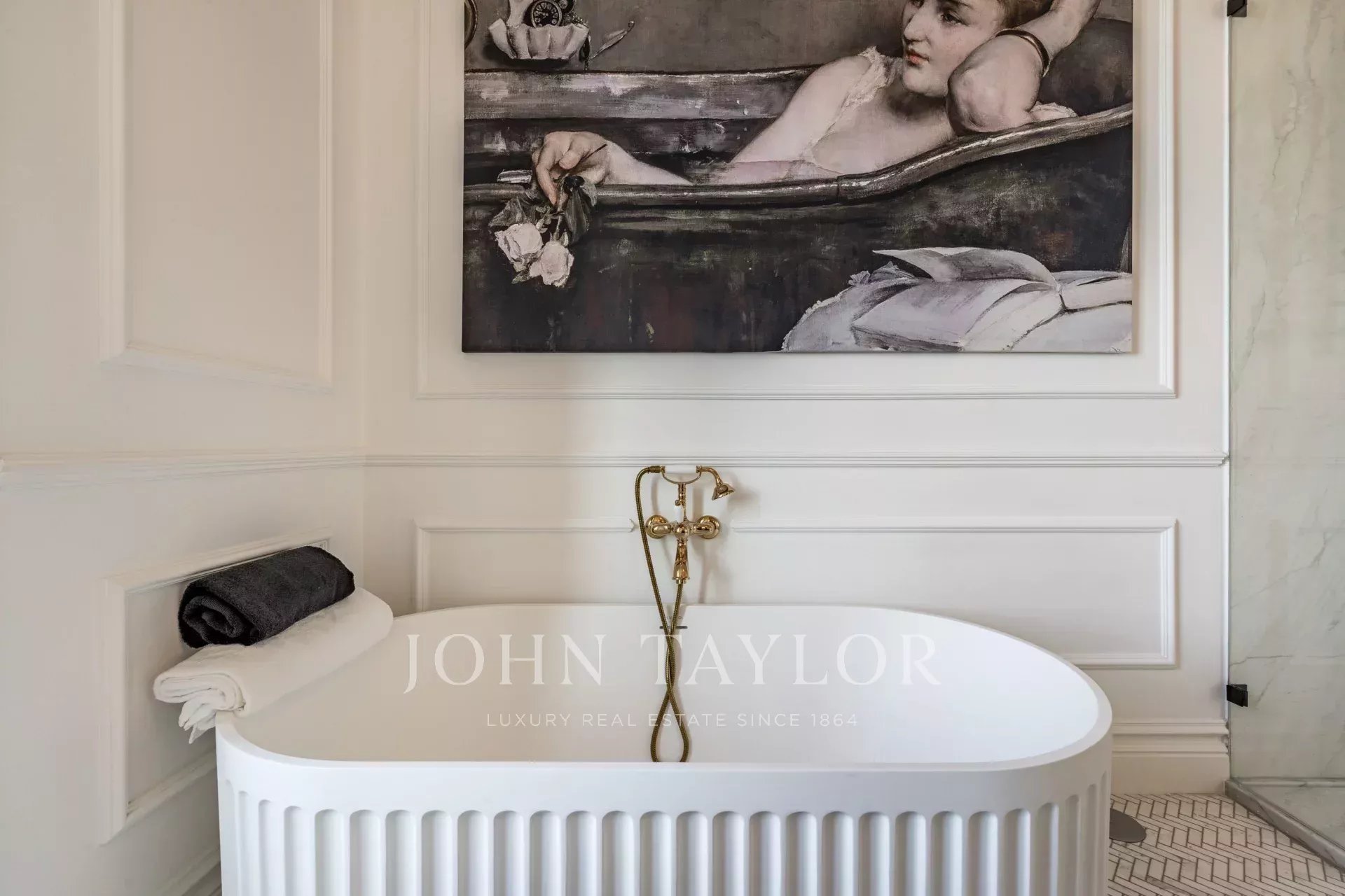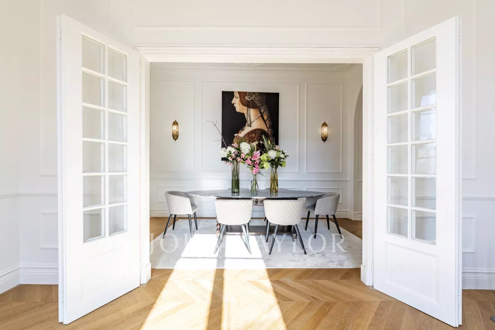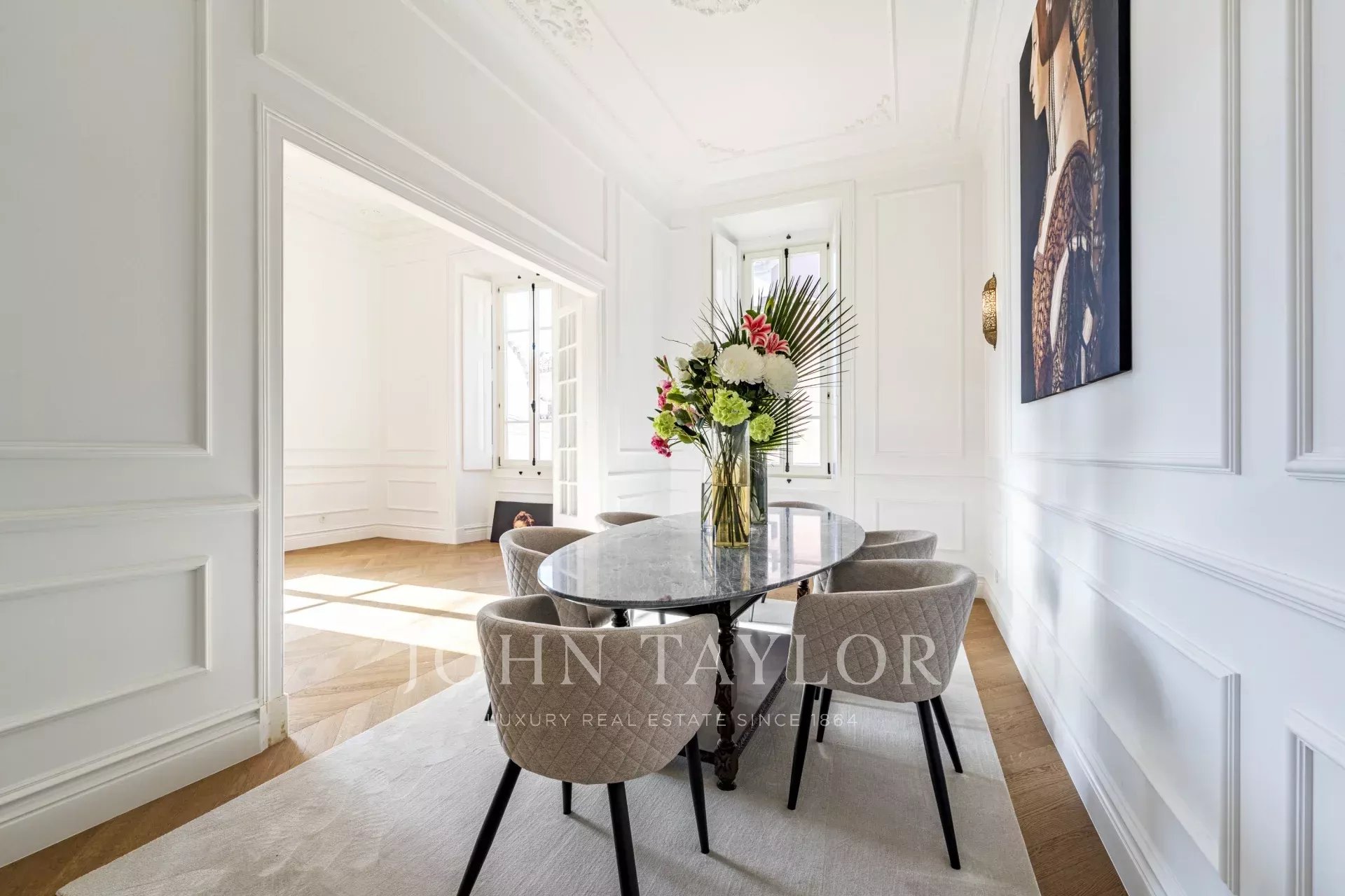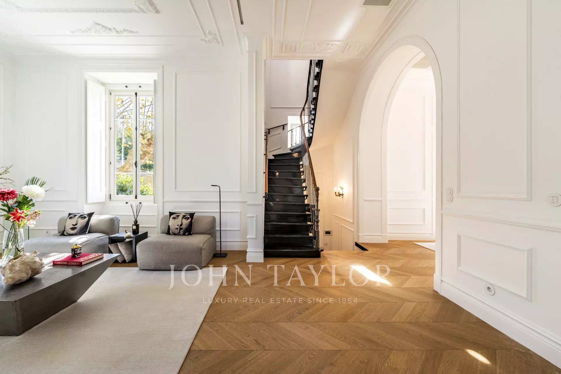 Distribué sur quatre niveaux, le rez-de-chaussée comprend un vaste salon qui s’ouvre directement sur un jardin paysager, créant une parfaite continuité entre les espaces intérieurs et extérieurs. La salle à manger, de style formel, et la cuisine entièrement équipée sont idéales pour des moments conviviaux, qu’ils soient décontractés ou plus sophistiqués.