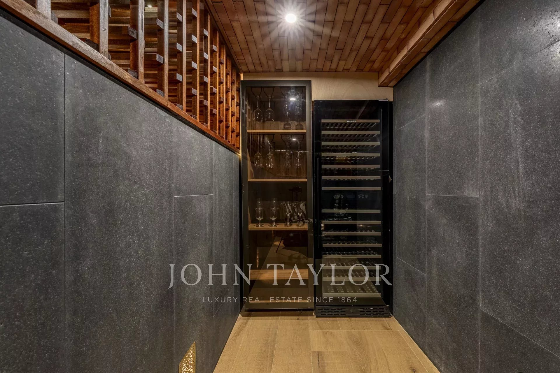 Le sous-sol est dédié aux loisirs, avec une salle de télévision insonorisée, une cave à vin, un sauna, une buanderie et une chambre supplémentaire.