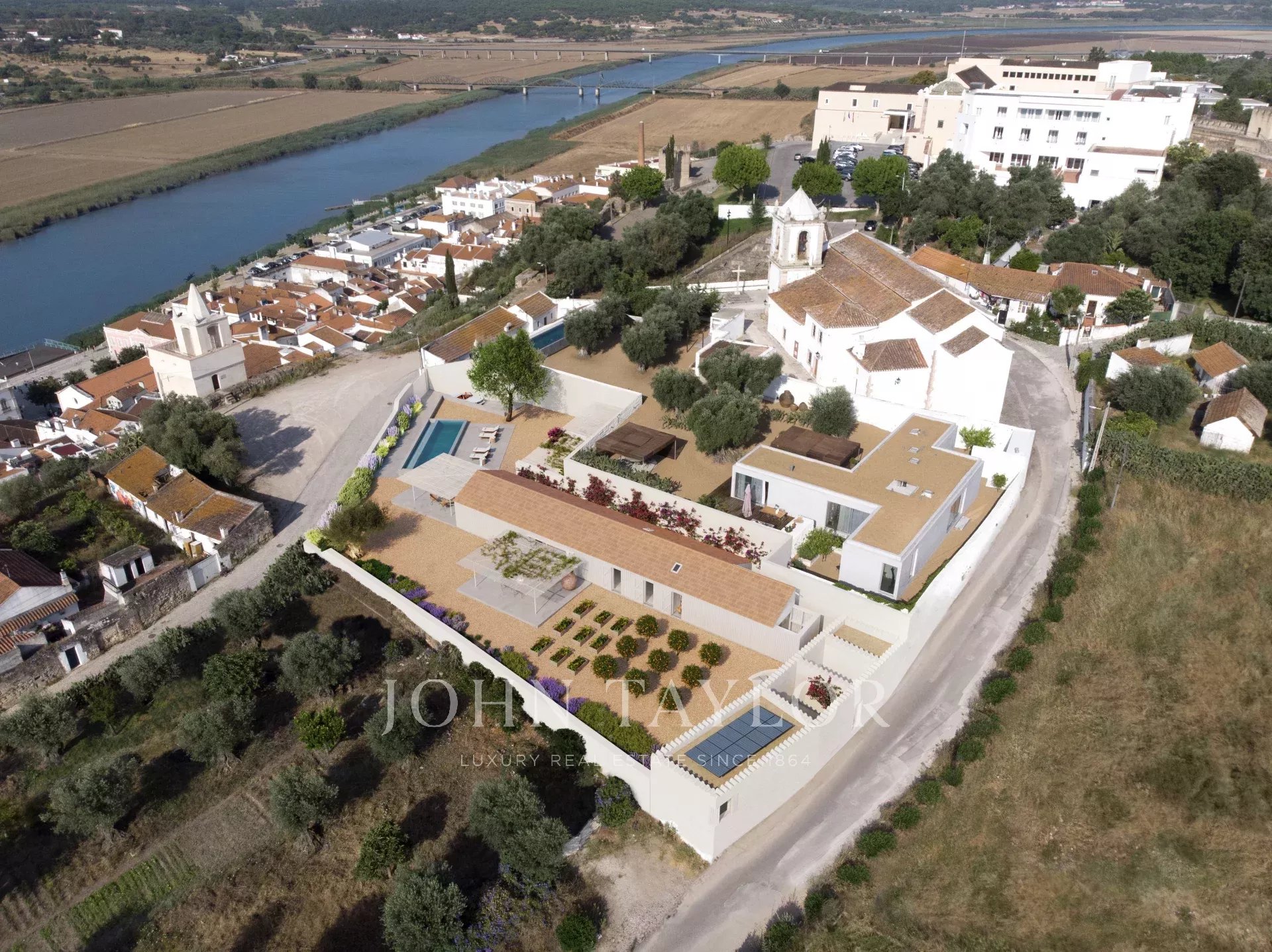 Située au point culminant d’Alcácer do Sal, au cœur de son château historique, cette propriété V2+V1 de 215 m² se trouve sur un terrain clos de 1 335 m², offrant un cadre exclusif et privé avec une vue imprenable au sud et à l’est sur le fleuve Sado et le paysage de l’Alentejo. Entourée d’oliviers centenaires, la maison allie parfaitement histoire, beauté naturelle et design contemporain.