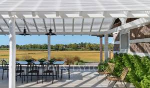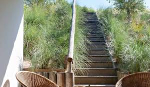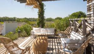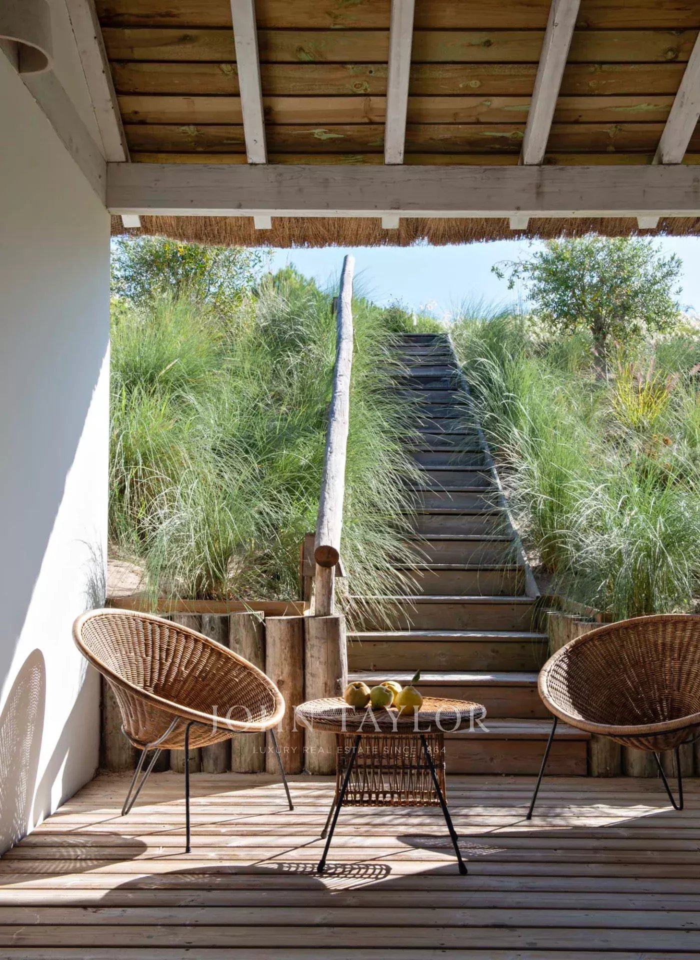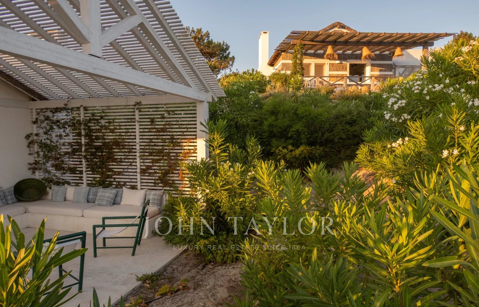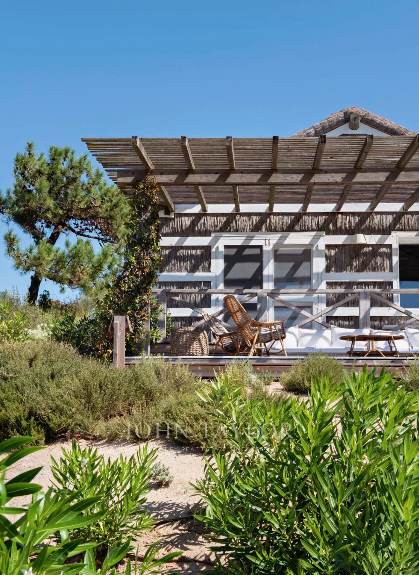 La maison, de style traditionnel Comporta, d’une superficie utile de 496 m², se compose de 7 cabanes indépendantes, dont 5 suites, un vaste salon, une cuisine ouverte et une buanderie.