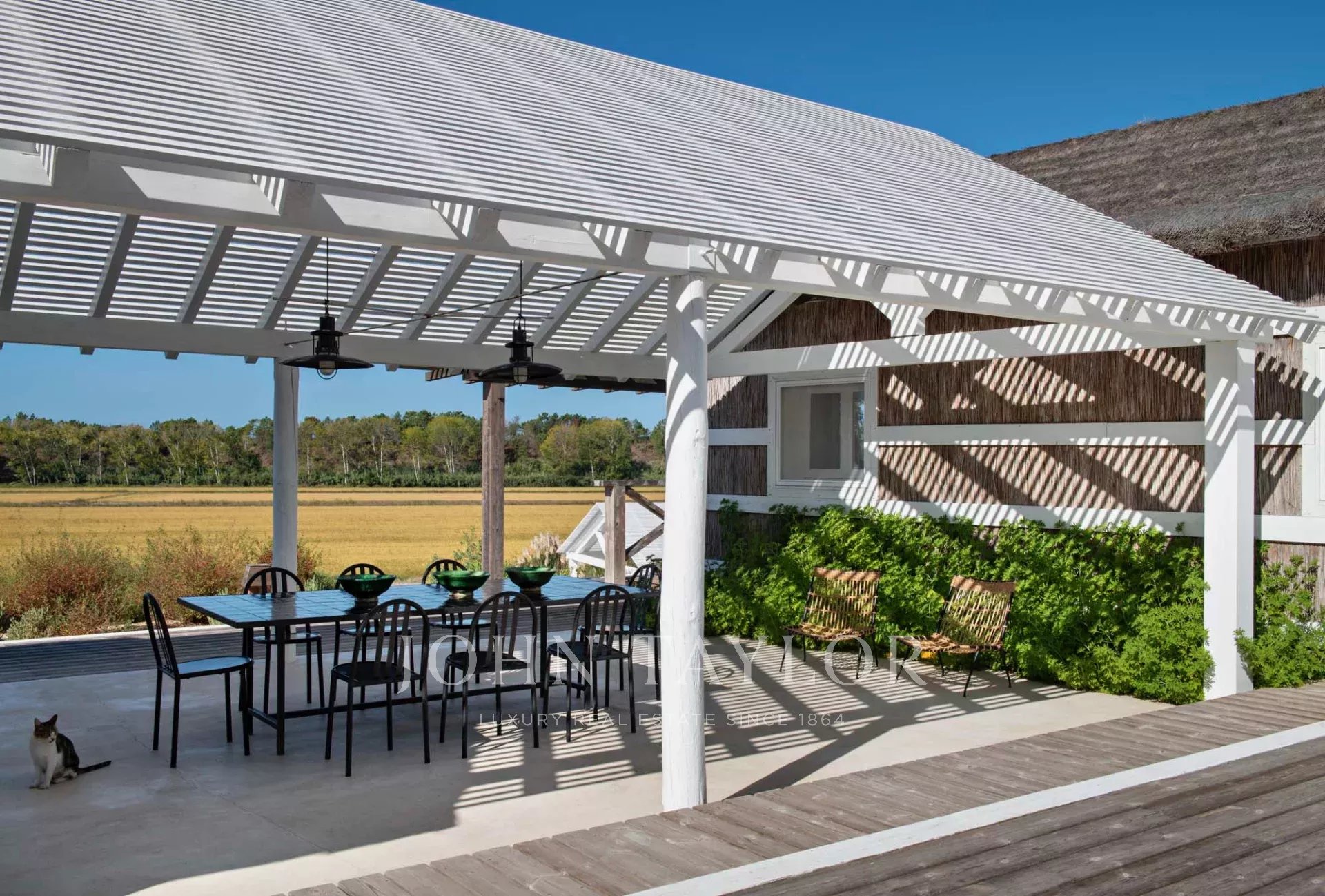 La maison, de style traditionnel Comporta, d’une superficie utile de 496 m², se compose de 7 cabanes indépendantes, dont 5 suites, un vaste salon, une cuisine ouverte et une buanderie.