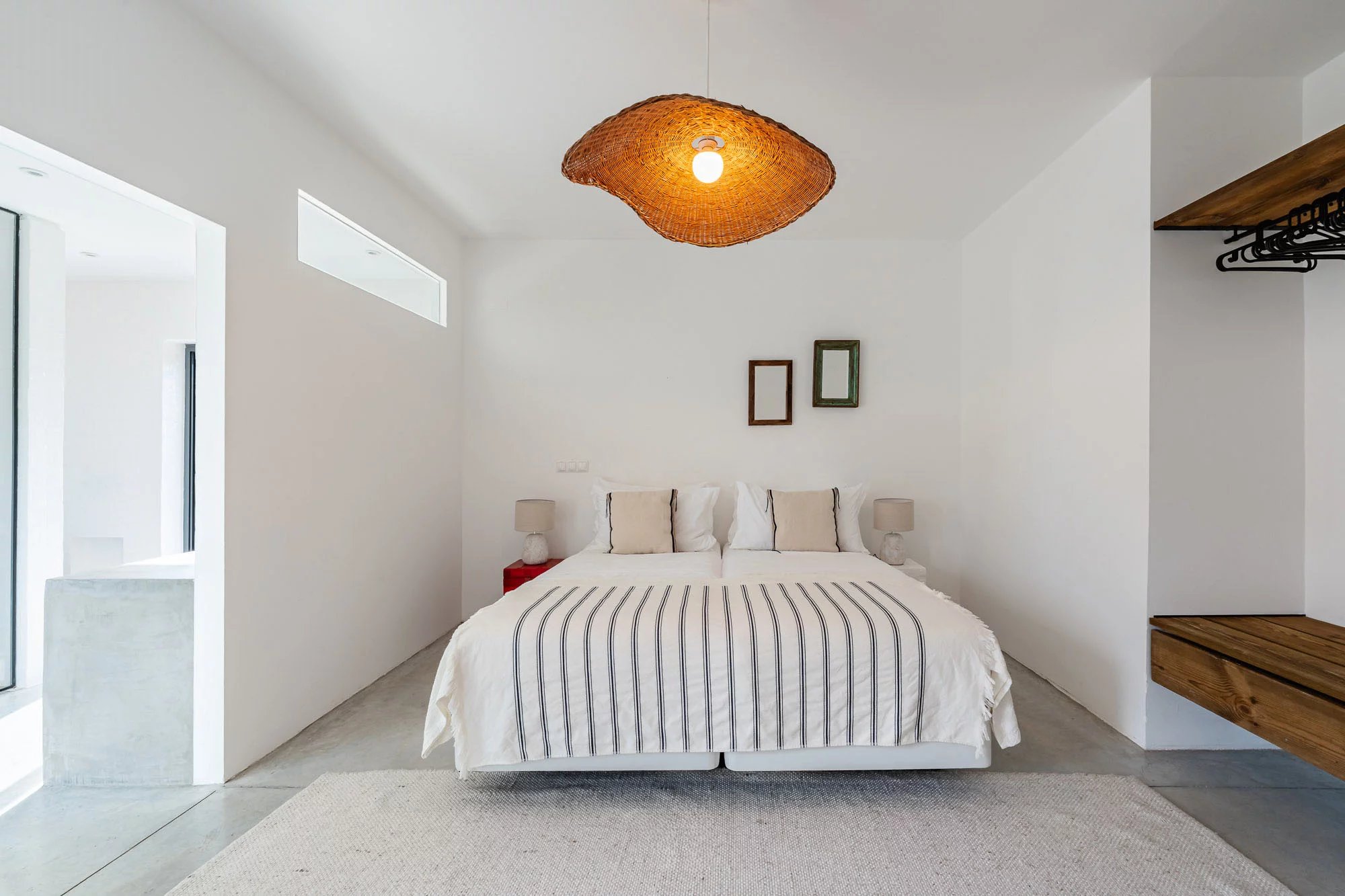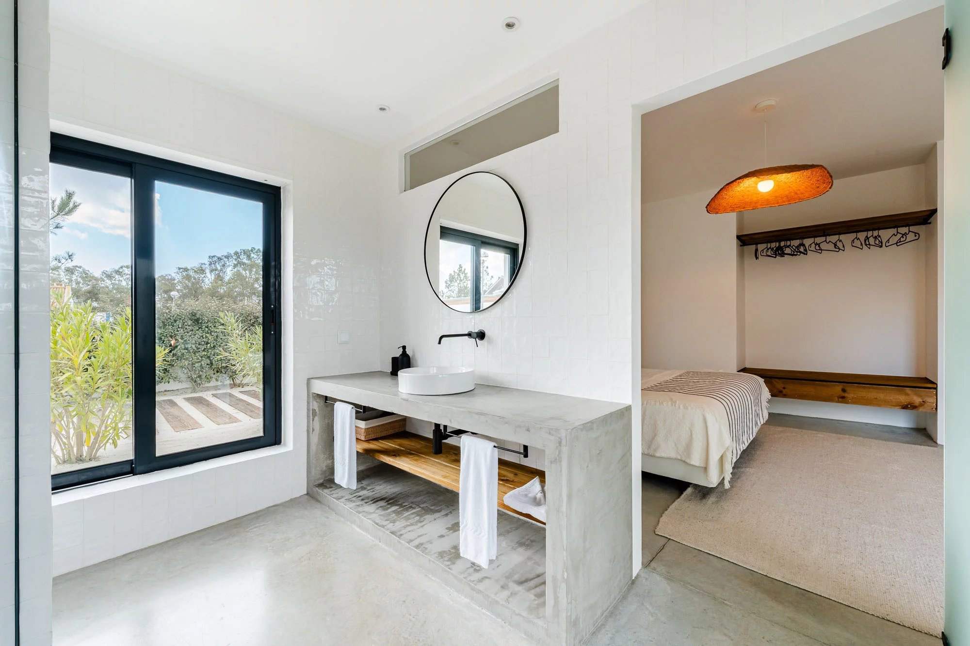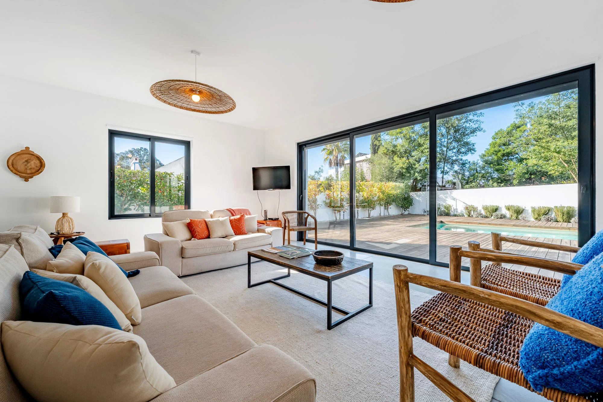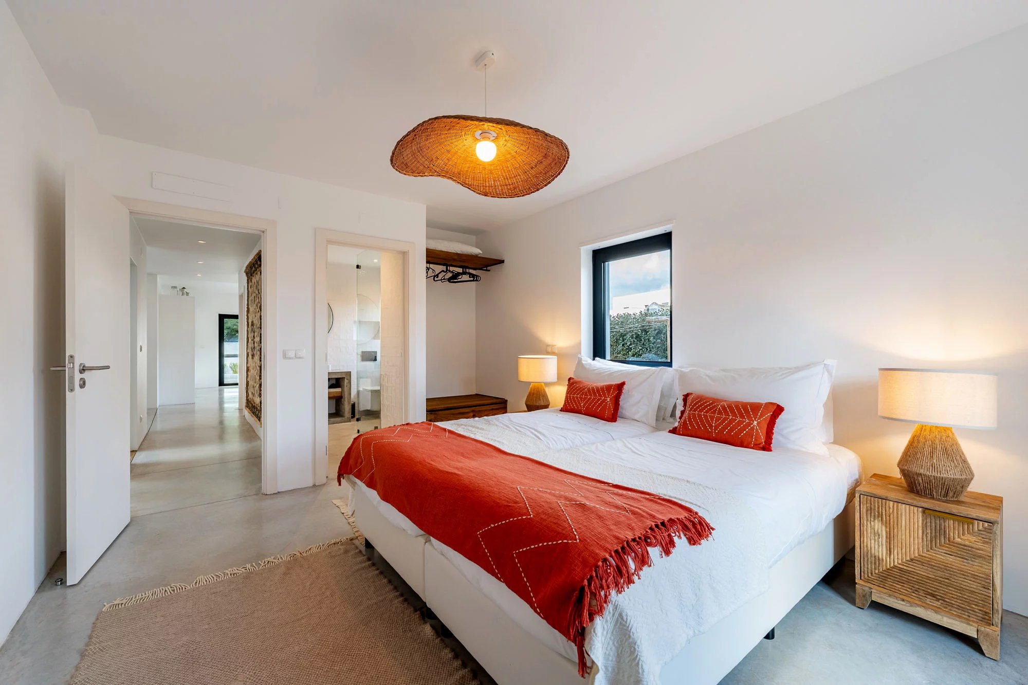 Les espaces extérieurs sont conçus pour une vie détendue, avec une piscine privée dotée d'une généreuse terrasse en bois, un jardin paysager et une salle à manger avec barbecue, idéale pour profiter du climat de Comporta. L'intérieur comprend un salon et une cuisine, ainsi que quatre chambres avec salle de bains, deux situées au rez-de-chaussée et deux au premier étage. Le niveau supérieur bénéficie également d'une terrasse spacieuse, idéale pour se détendre ou créer un coin salon supplémentaire.