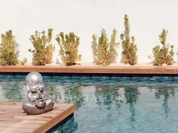 Villa sur 2 étages, composée d'un salon/salle à manger et d'une cuisine ouverte, 4 chambres en suite et une salle de bain pour invités. La villa a une excellente exposition au soleil face à l'ouest. A l'extérieur, elle dispose d'un coin repas avec banquette et barbecue, d'une piscine chauffée et d'une terrasse en bois. Place de parking pour 2 véhicules.