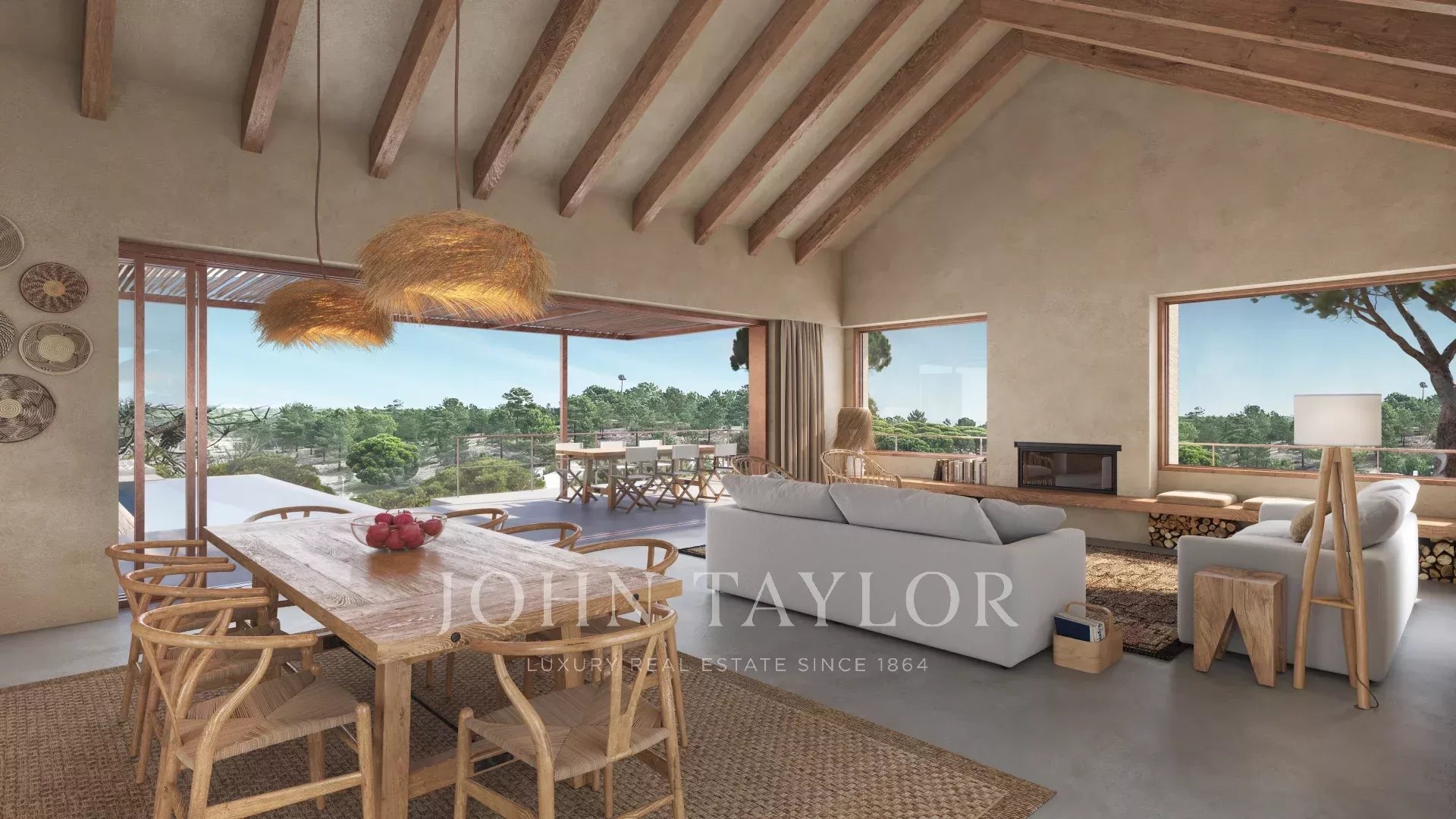 Les espaces extérieurs offriront 100 m² de terrasses en bois, une piscine chauffée de 50 m², un foyer extérieur pour les soirées plus fraîches, ainsi qu’une terrasse de 70 m² à l’étage — idéale pour profiter du paysage environnant.