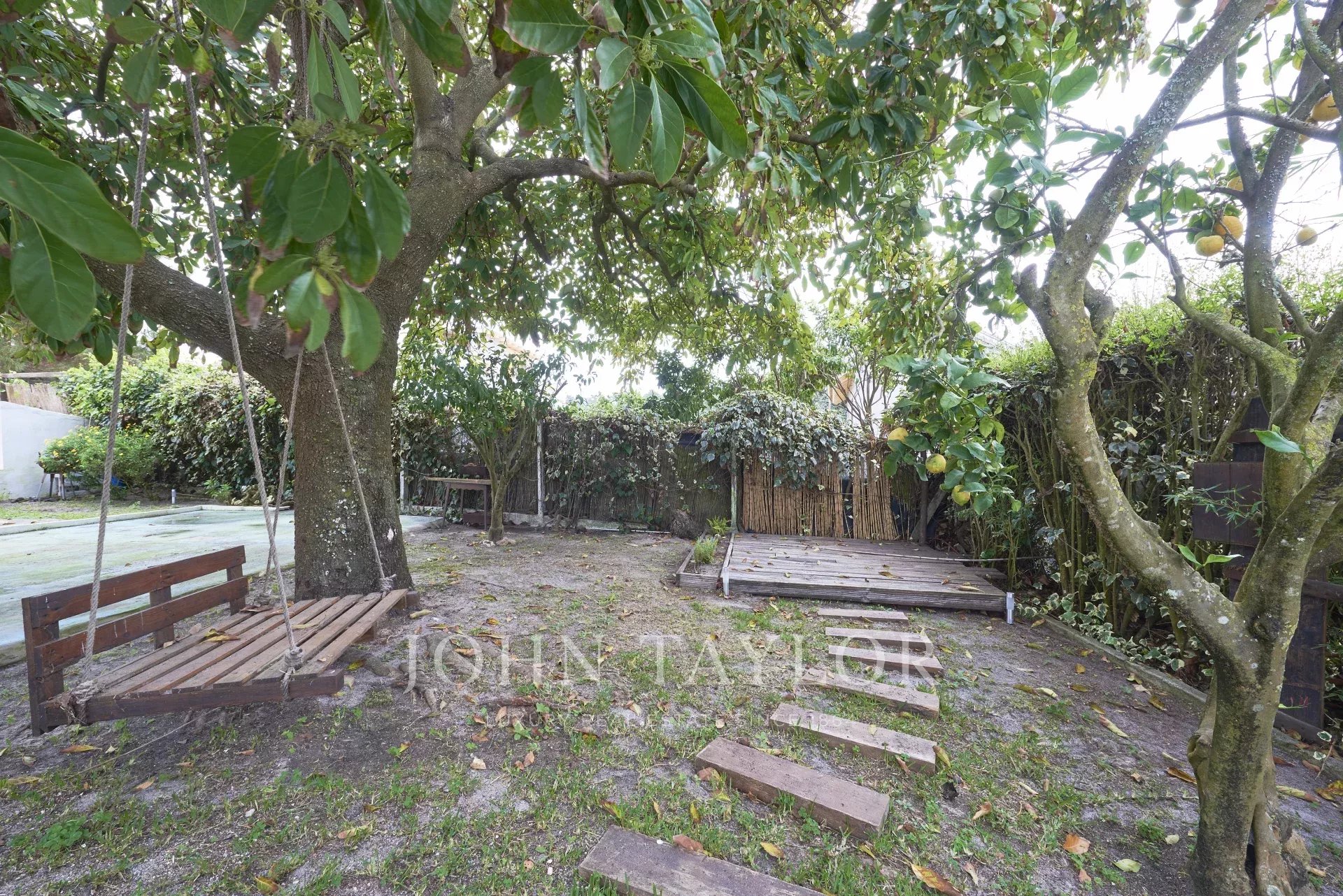 Terrain de 857m2, 3 maisons indépendantes d'une superficie totale de 200m2, avec un total de 4 chambres, 3 salles de bain, et 3 salons, un jardin, une piscine et plusieurs espaces extérieurs.
