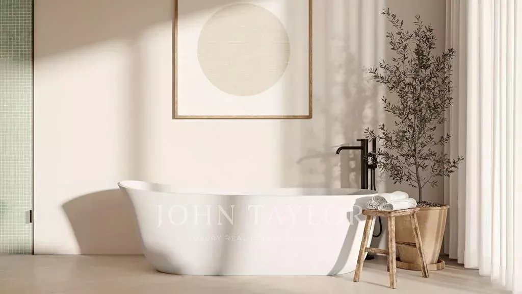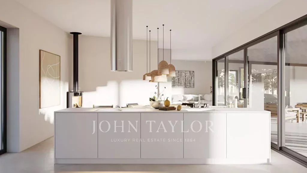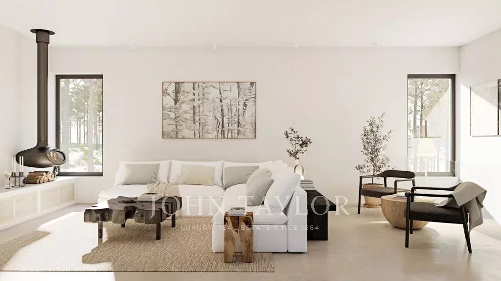 La villa comprend 4 chambres, un salon de 40 m², une cuisine ouverte de 40 m² avec salle à manger, ainsi qu’une buanderie et une salle de bains commune. À l’extérieur, vous trouverez une zone de repas, une terrasse adjacente à une piscine de 43 m² et une salle de bains de soutien. La villa bénéficie d’une excellente exposition au sud et de vues dégagées sur la pinède environnante.