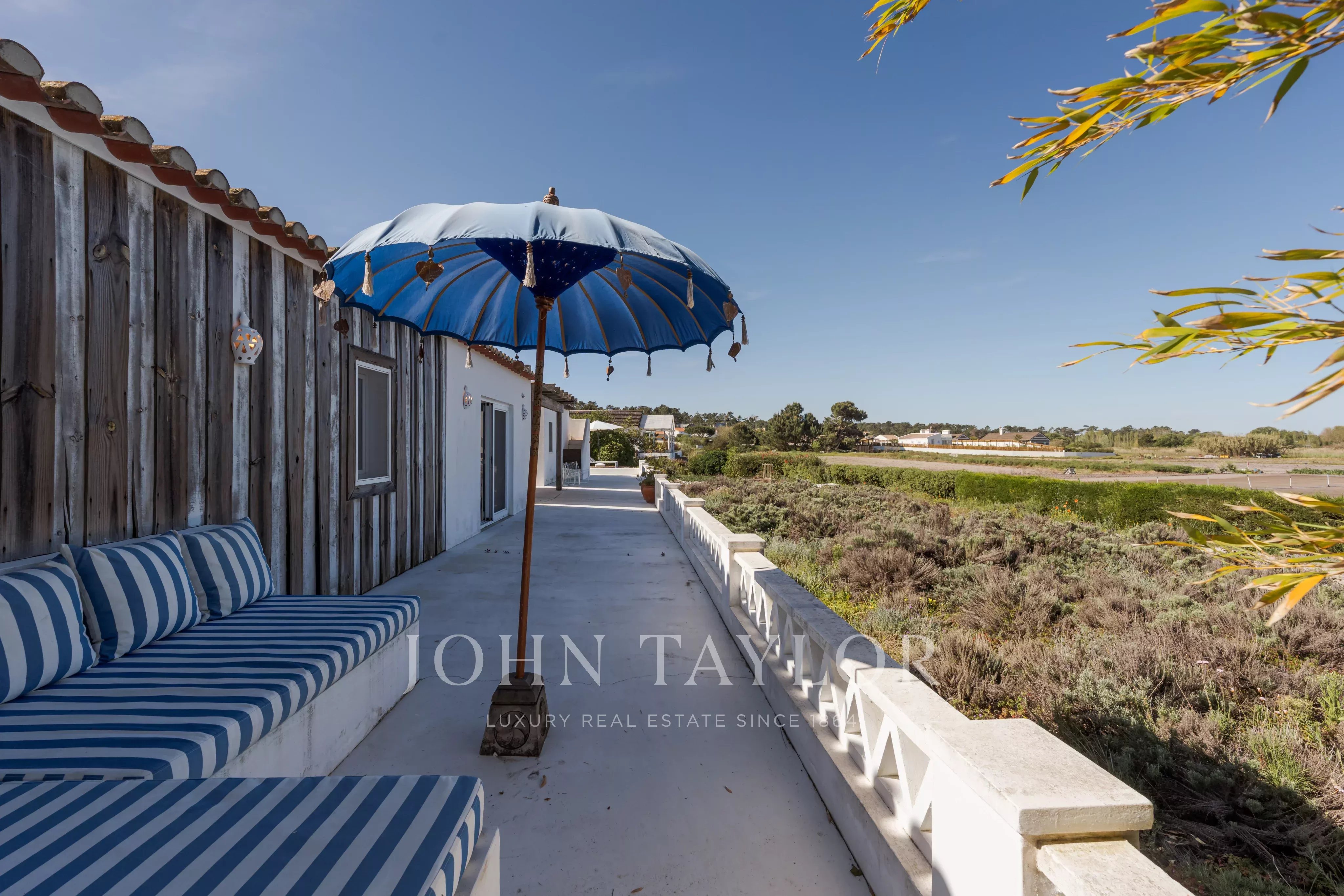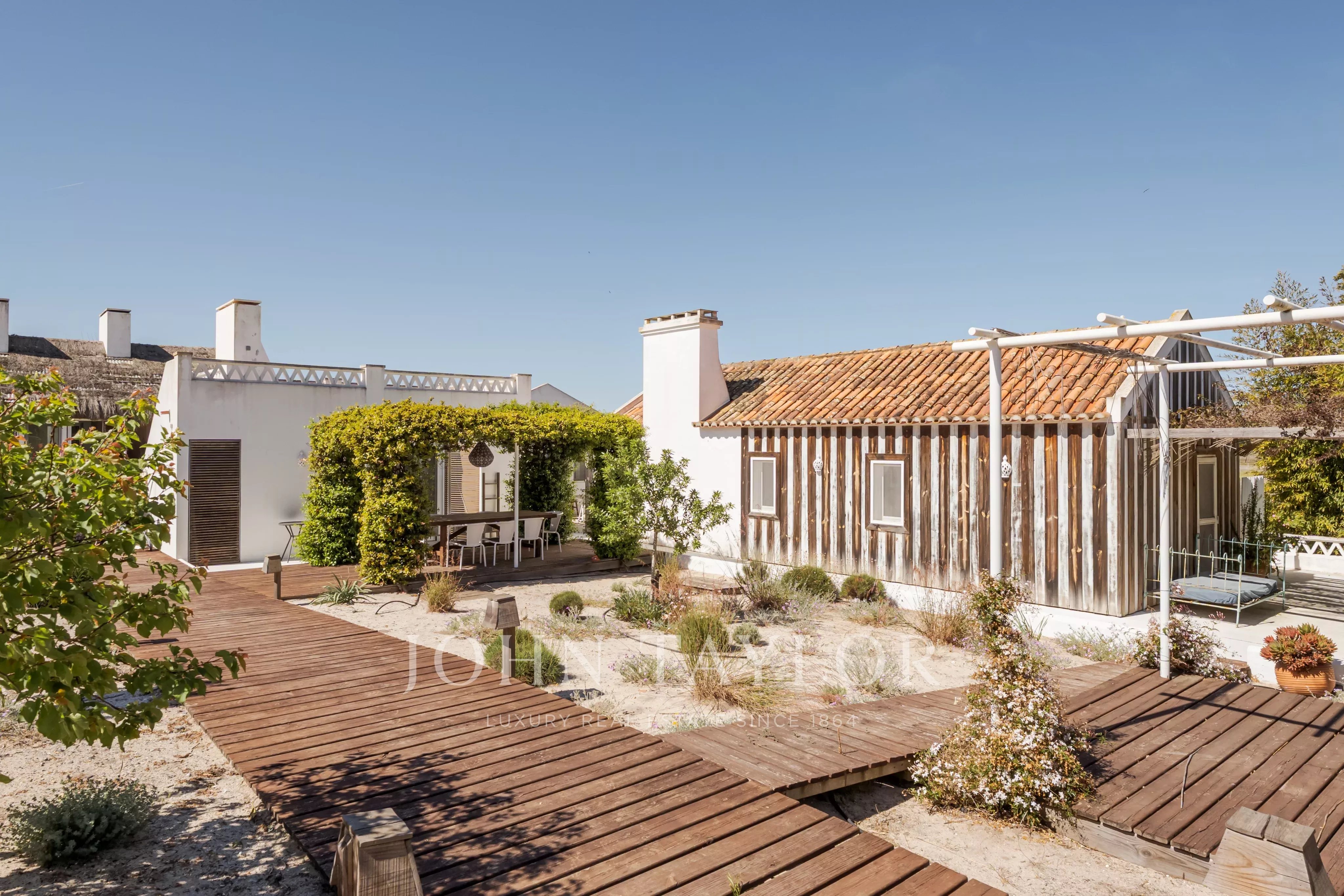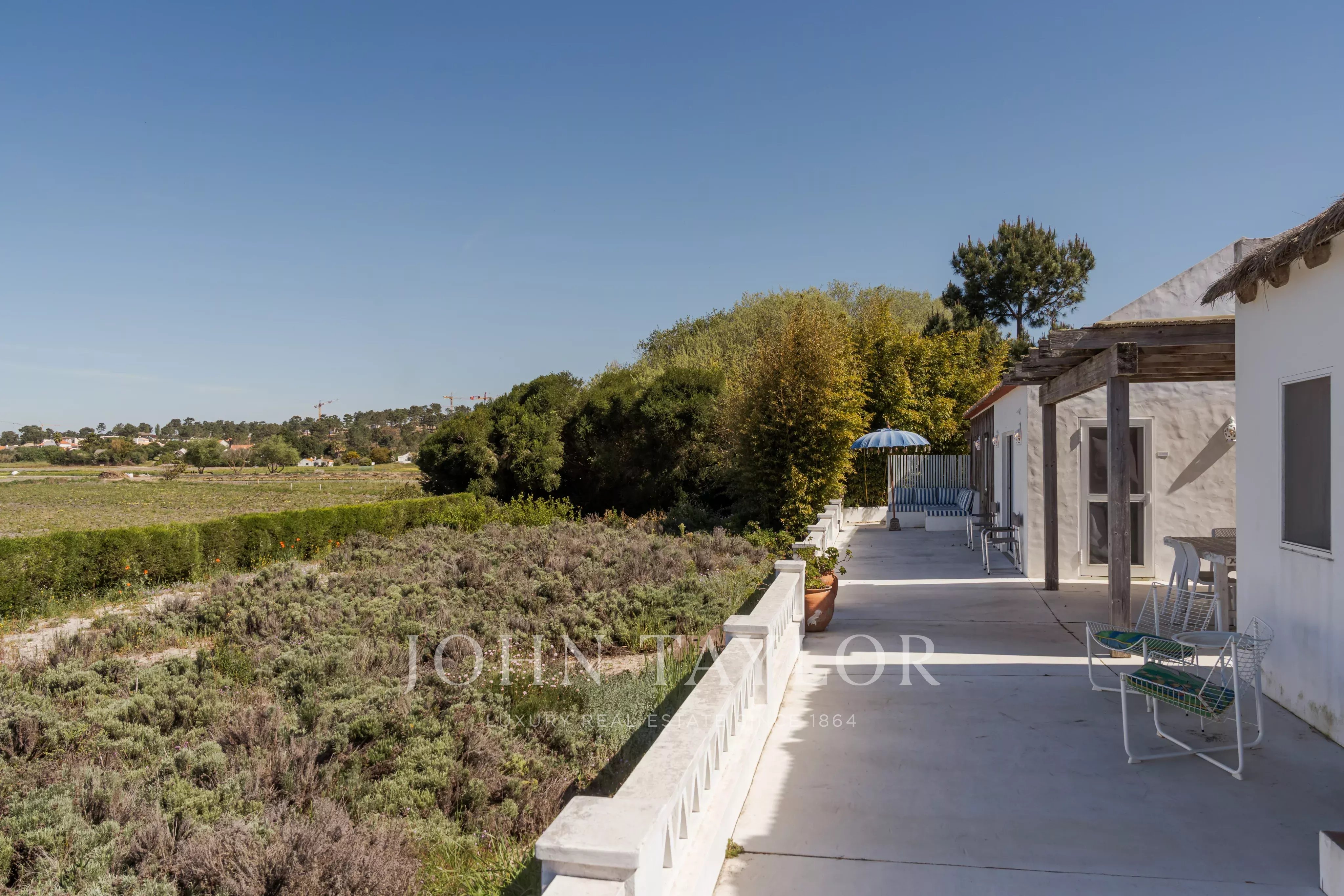 Située dans l'un des endroits les plus recherchés de Comporta, à distance de marche de la plage de Pego, cette propriété exceptionnelle offre un rare équilibre entre intimité, nature et vie contemporaine raffinée, avec une vue dégagée sur le coucher de soleil sur les champs agricoles environnants.