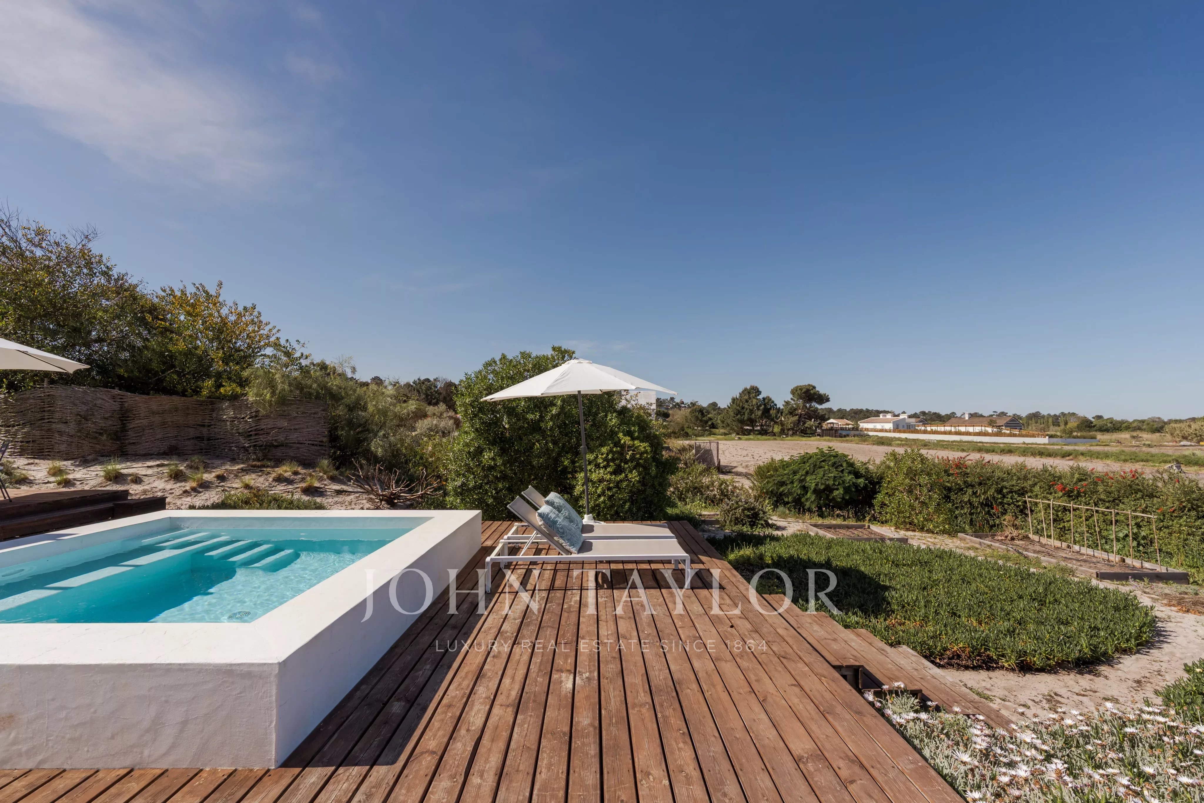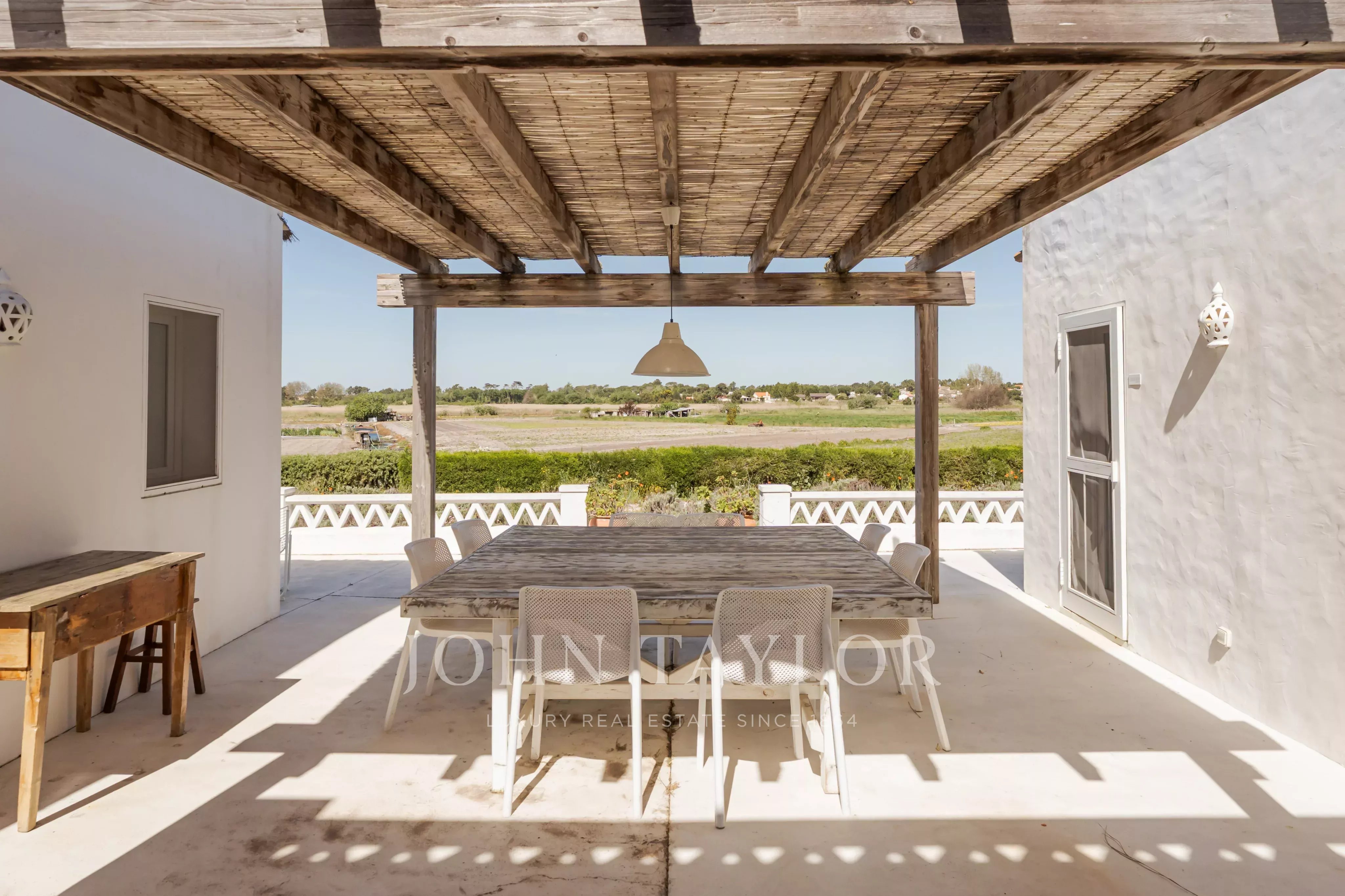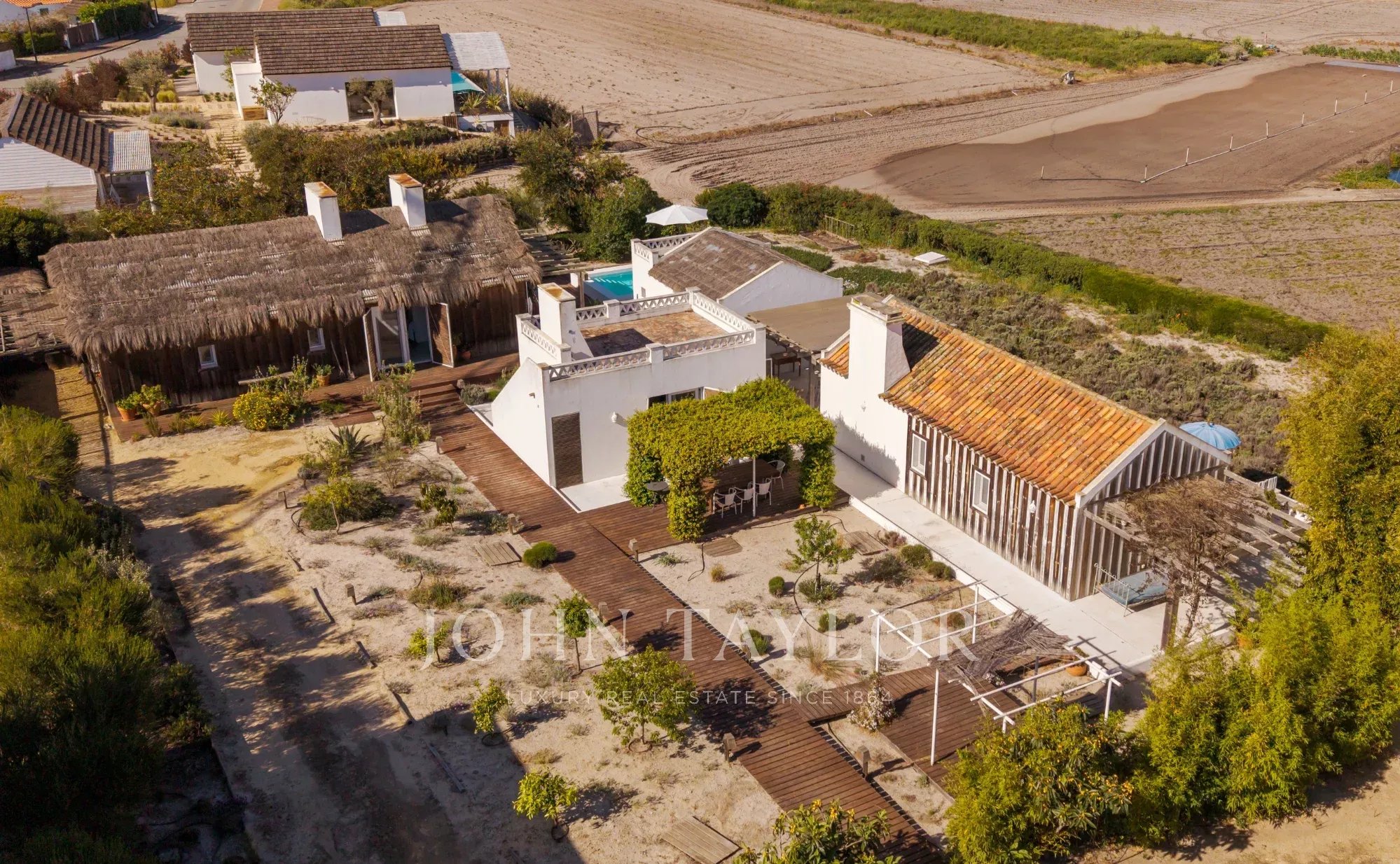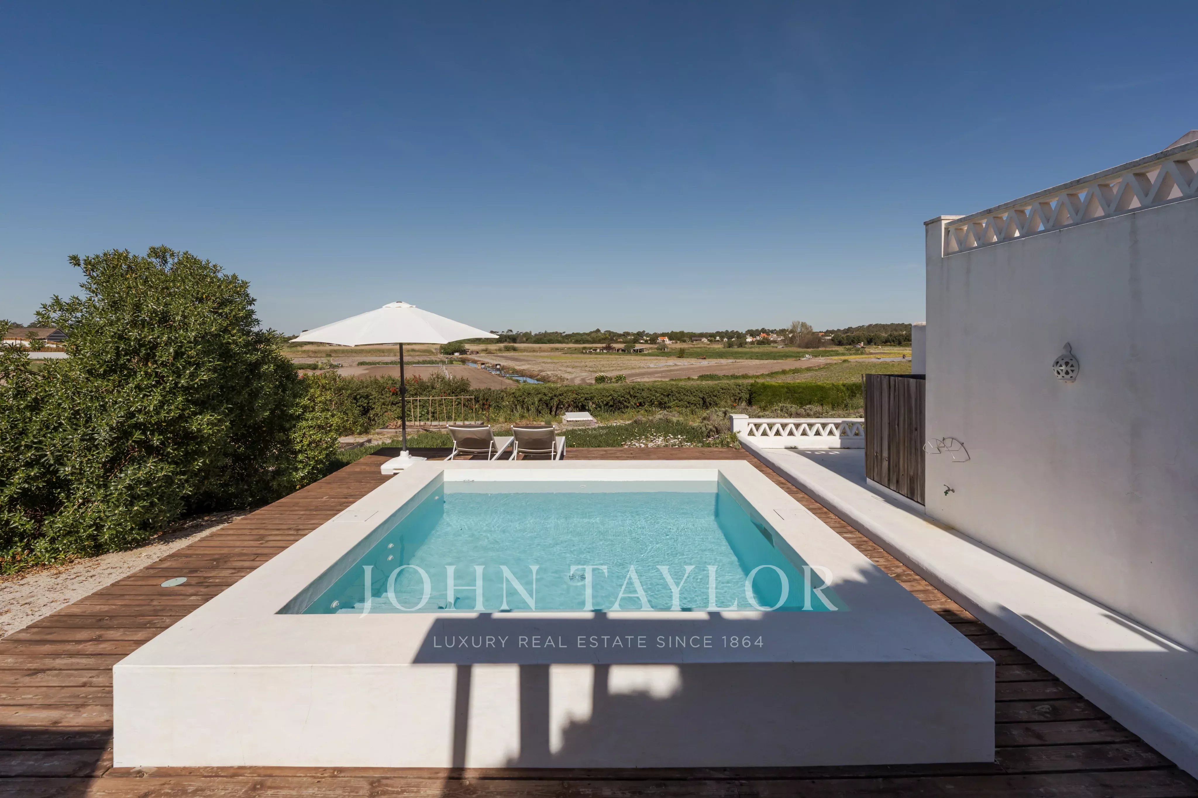 Située dans l'un des endroits les plus recherchés de Comporta, à distance de marche de la plage de Pego, cette propriété exceptionnelle offre un rare équilibre entre intimité, nature et vie contemporaine raffinée, avec une vue dégagée sur le coucher de soleil sur les champs agricoles environnants.